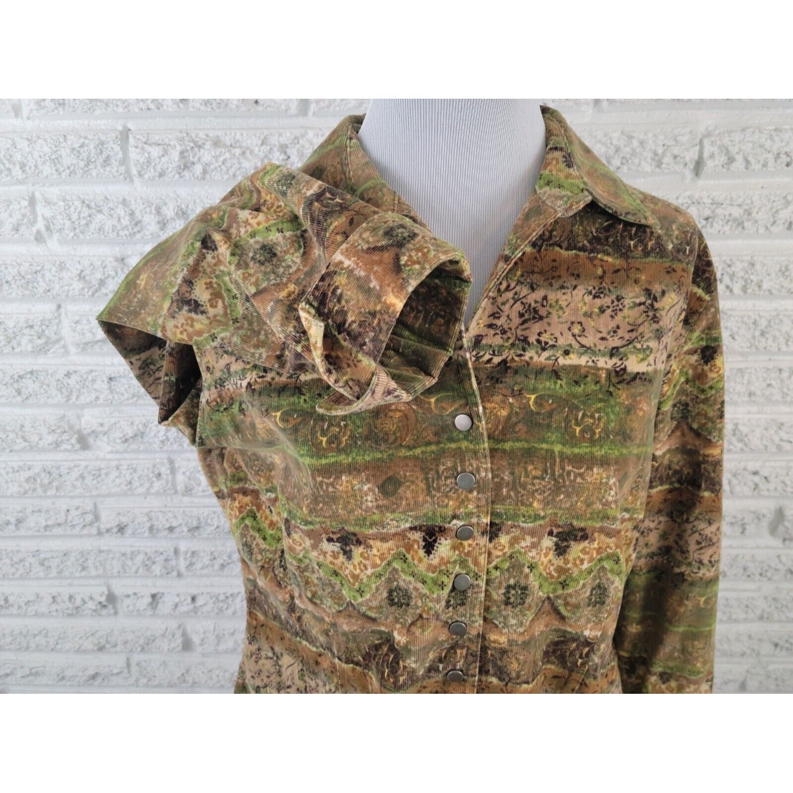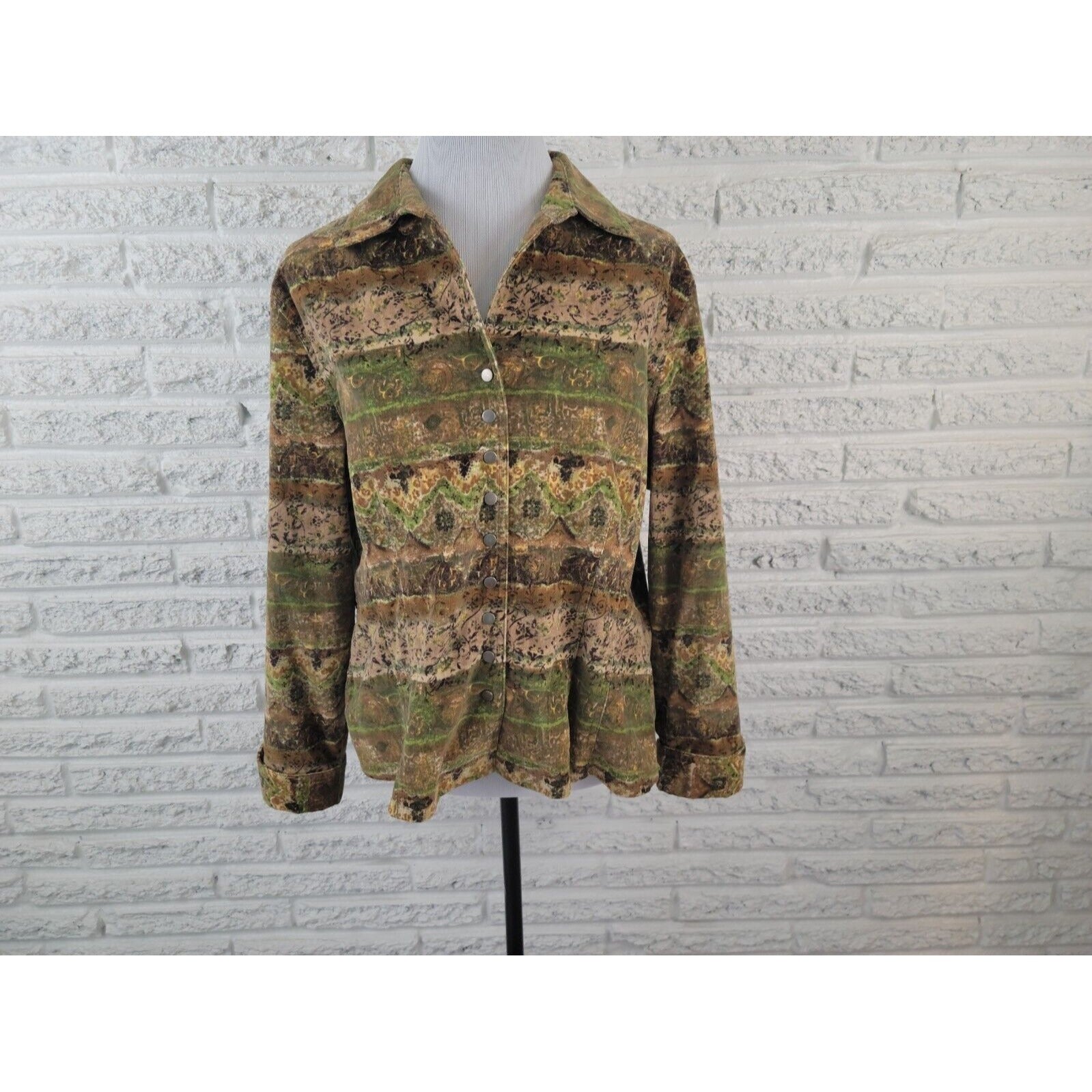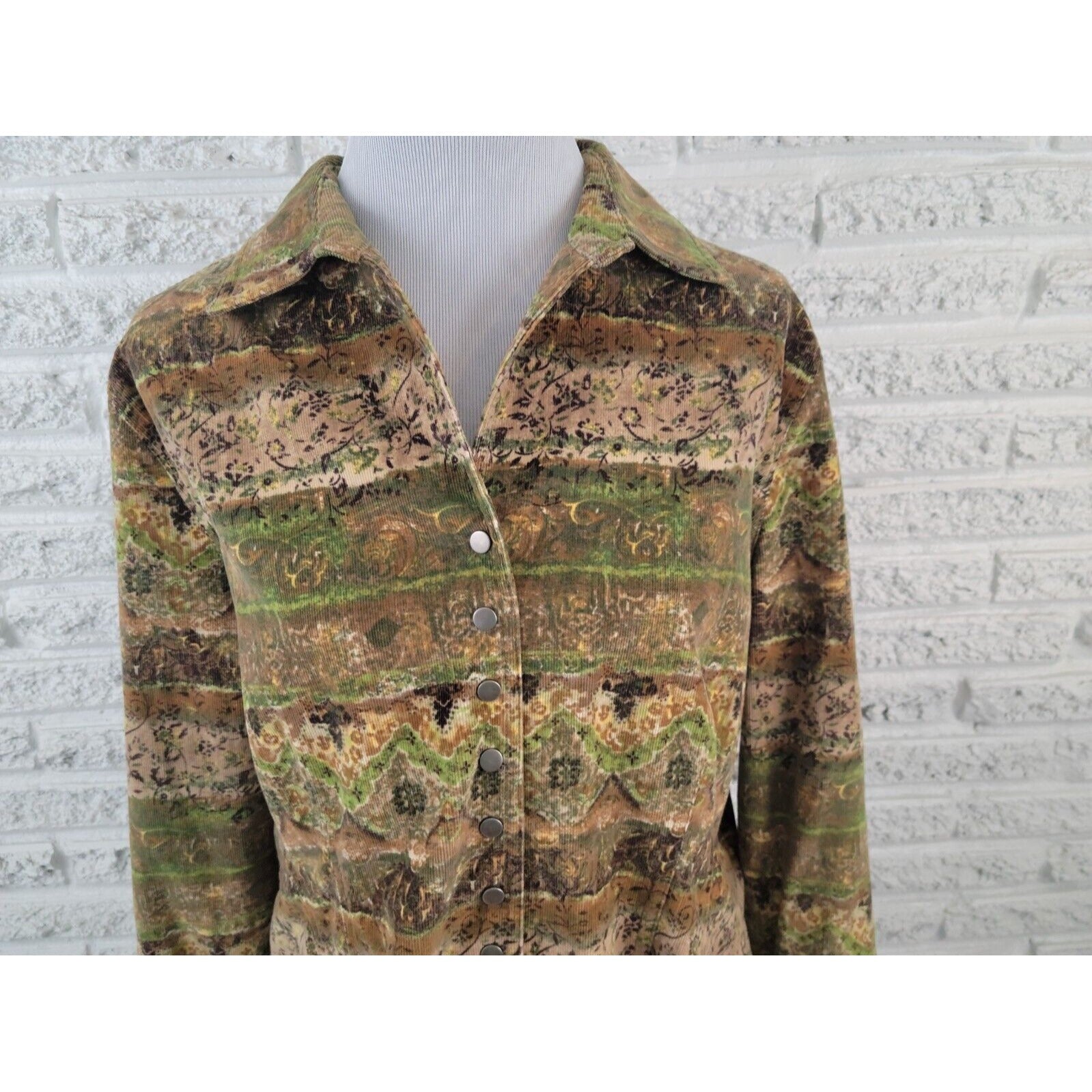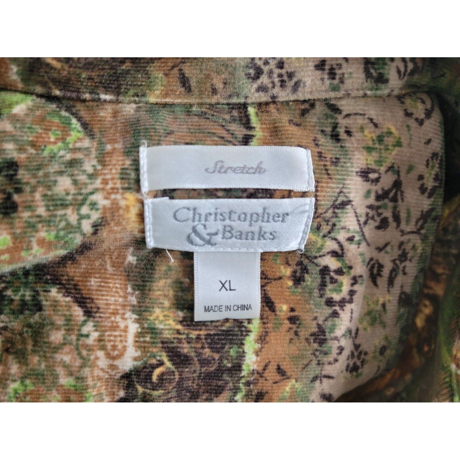 Christopher Banks Womens Jacket Extra Large Blazer Brown Geometric Corduroy Snap