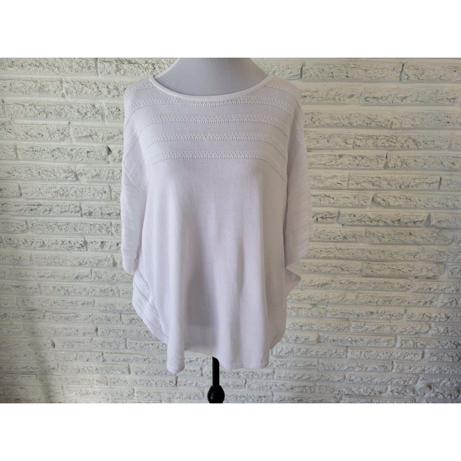 This Christopher & Banks Women's Top is a versatile piece suitable for both casual and business occasions. The solid pattern, round neckline, and pullover closure add to its simple yet elegant style. The kimono sleeves make it unique and comfortable to wear. This blouse is machine washable and made with a blend of rayon and cotton materials for stretch and all-season wearability. The XL size fits regular size types, and it comes in white, a neutral color suitable for any season.