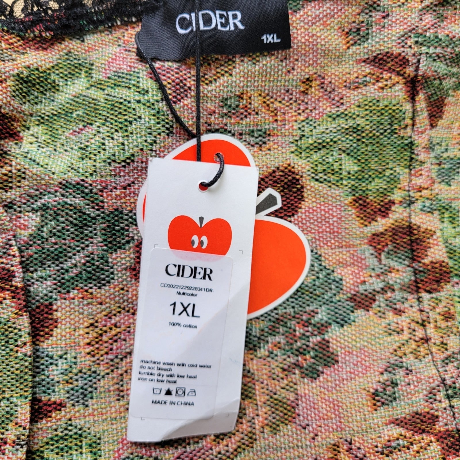 The Cider Women Top is a stylish and comfortable camisole in size 1X with a floral tapestry design, perfect for casual occasions and travel. Made of 100% cotton with a lace fabric TRIM, this sleeveless top features a square neckline and spaghetti straps for a trendy look. The black color and regular fit make it a versatile piece for all seasons, while the pullover closure adds convenience to its design. This top from CIDER is a fashionable choice for any woman looking for a chic and practical wardrobe addition.