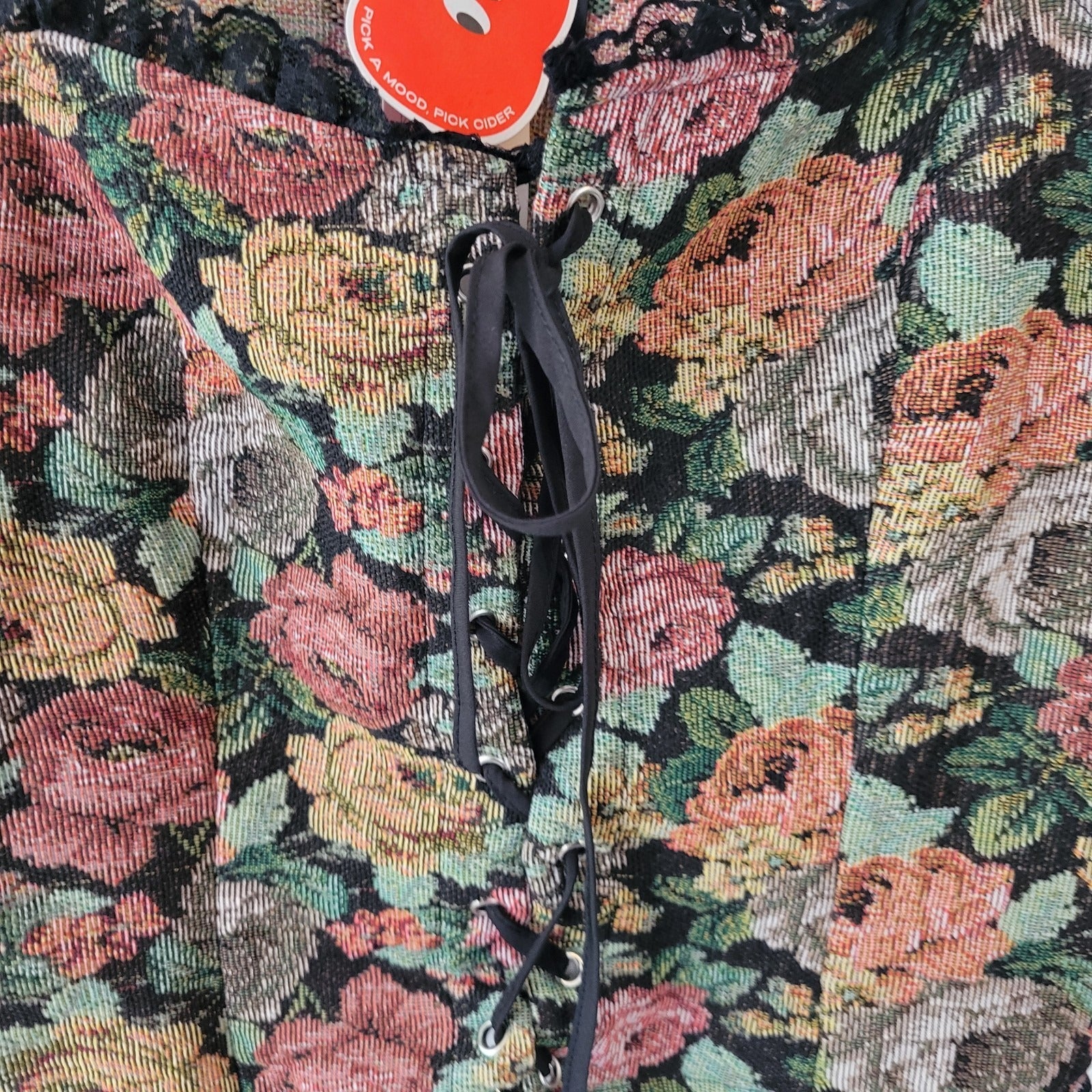 Cider Women Top 1XL Plus Corset Camisole Lace Up Spaghetti Strap Floral Tapestry