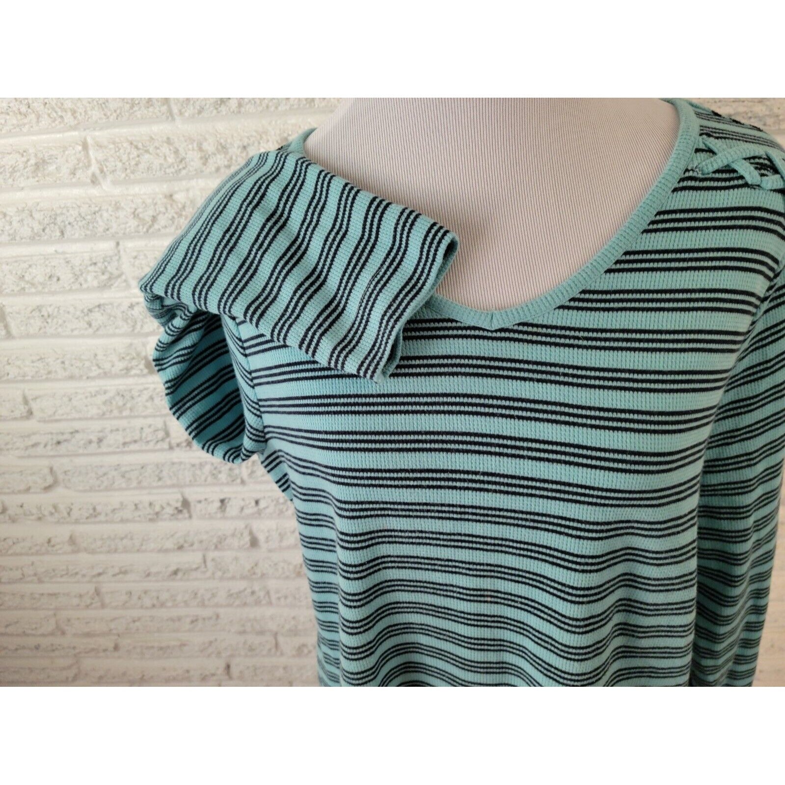 CJ Banks Women Top Extra Large XL Waffle Knit Blue Stripe VNeck Casual Comfy