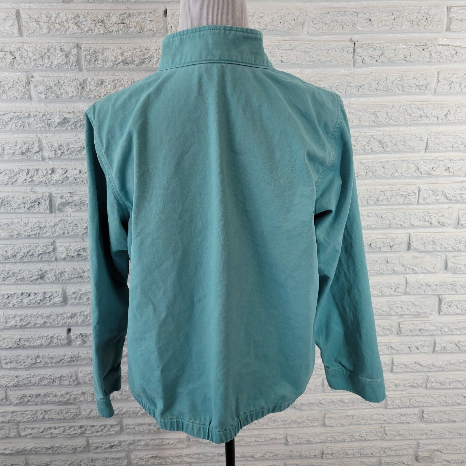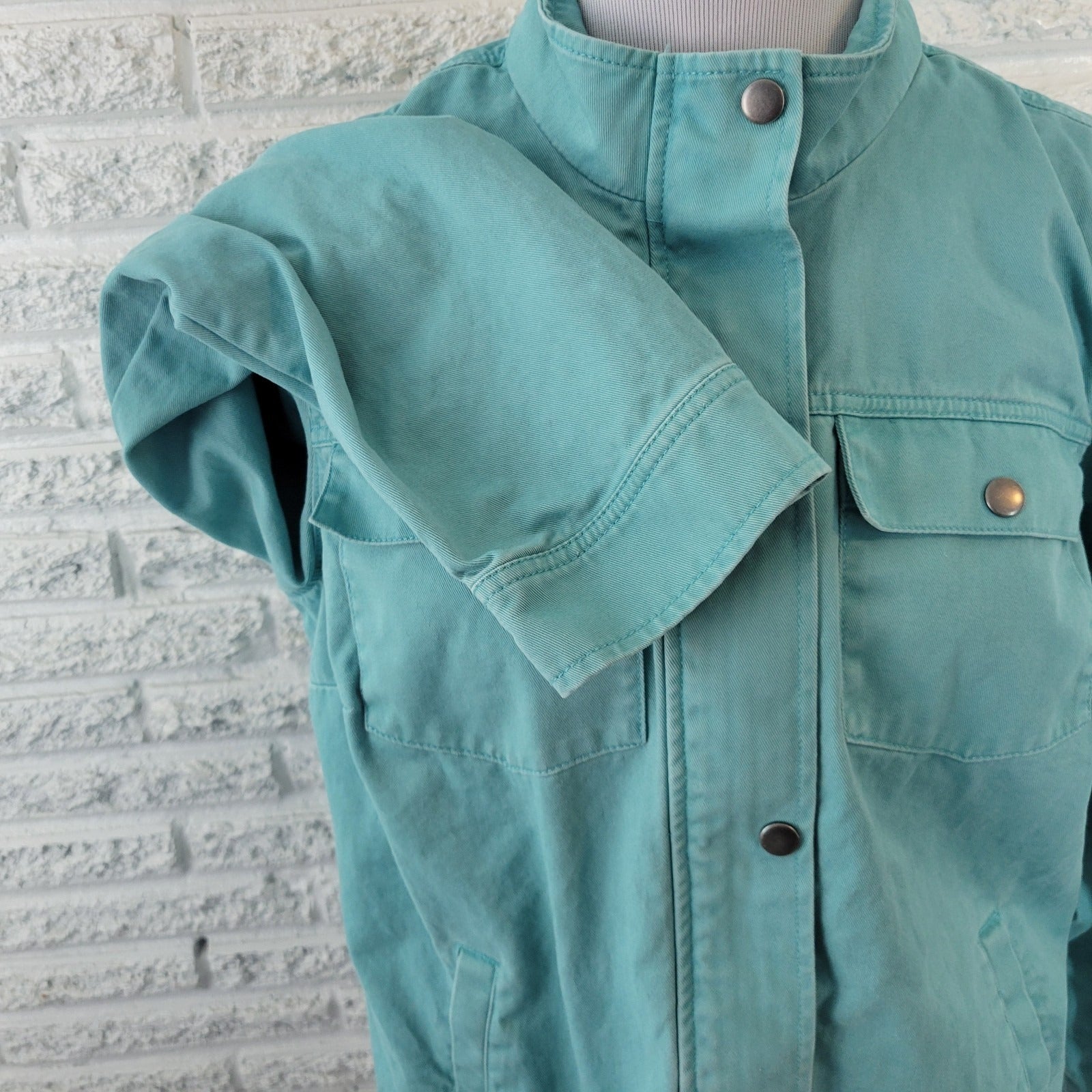 This CJ Banks Women's Jacket in extra large size is a stylish addition to any wardrobe. Made from cotton denim in a solid baby blue color, this short jacket features long sleeves and a zip and snap closure for a casual look. With pockets for added convenience, this jacket is perfect for travel and everyday wear. Machine washable and suitable for all seasons, this basic jacket from the Christopher & Banks brand offers both comfort and style for the modern woman.