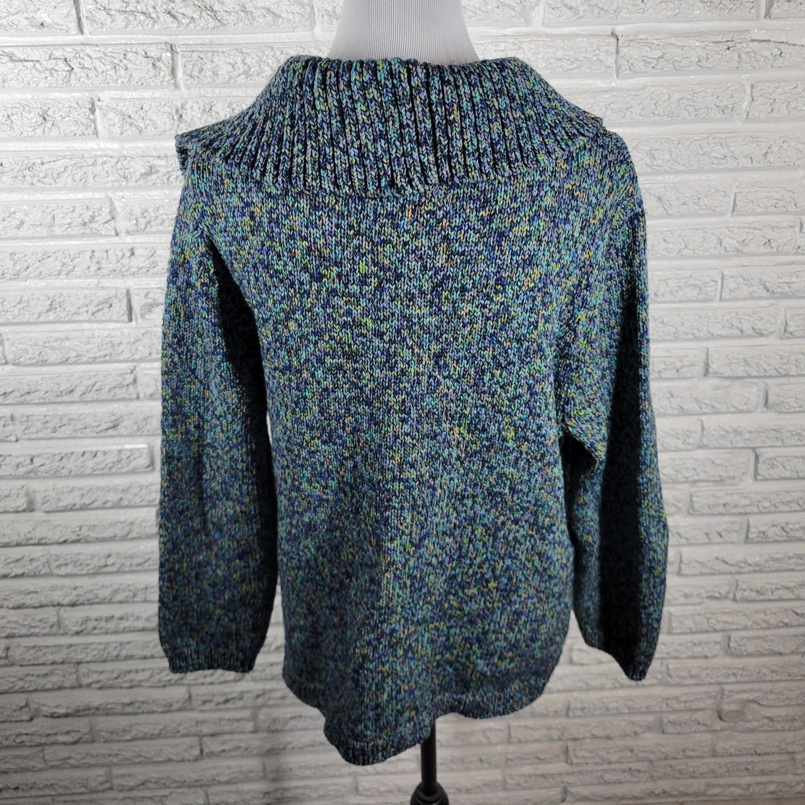 CJ Banks Womens Sweater 1X Plus 3/4 Sleeve Blue Green Marled Soft Collar Office