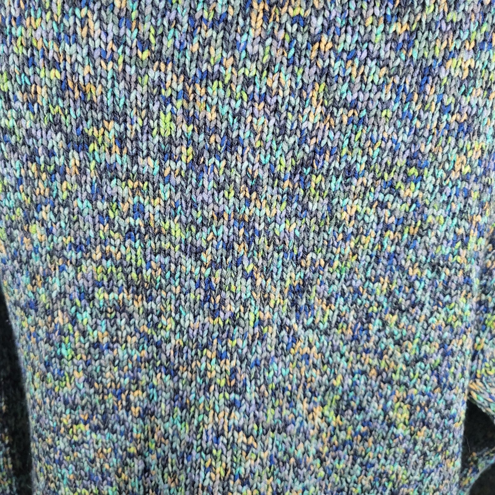 The CJ Banks Women's Sweater in 1X Plus size features a tight-knit design in a blue and green marled color, making it suitable for various occasions such as travel, casual, and business. This sweater is made from a blend of polyester and acrylic, with a soft collar and 3/4 sleeves for added comfort. Easy to care for with machine washable instructions, this pullover style sweater is perfect for all seasons and has a regular fit for a comfortable and stylish look.