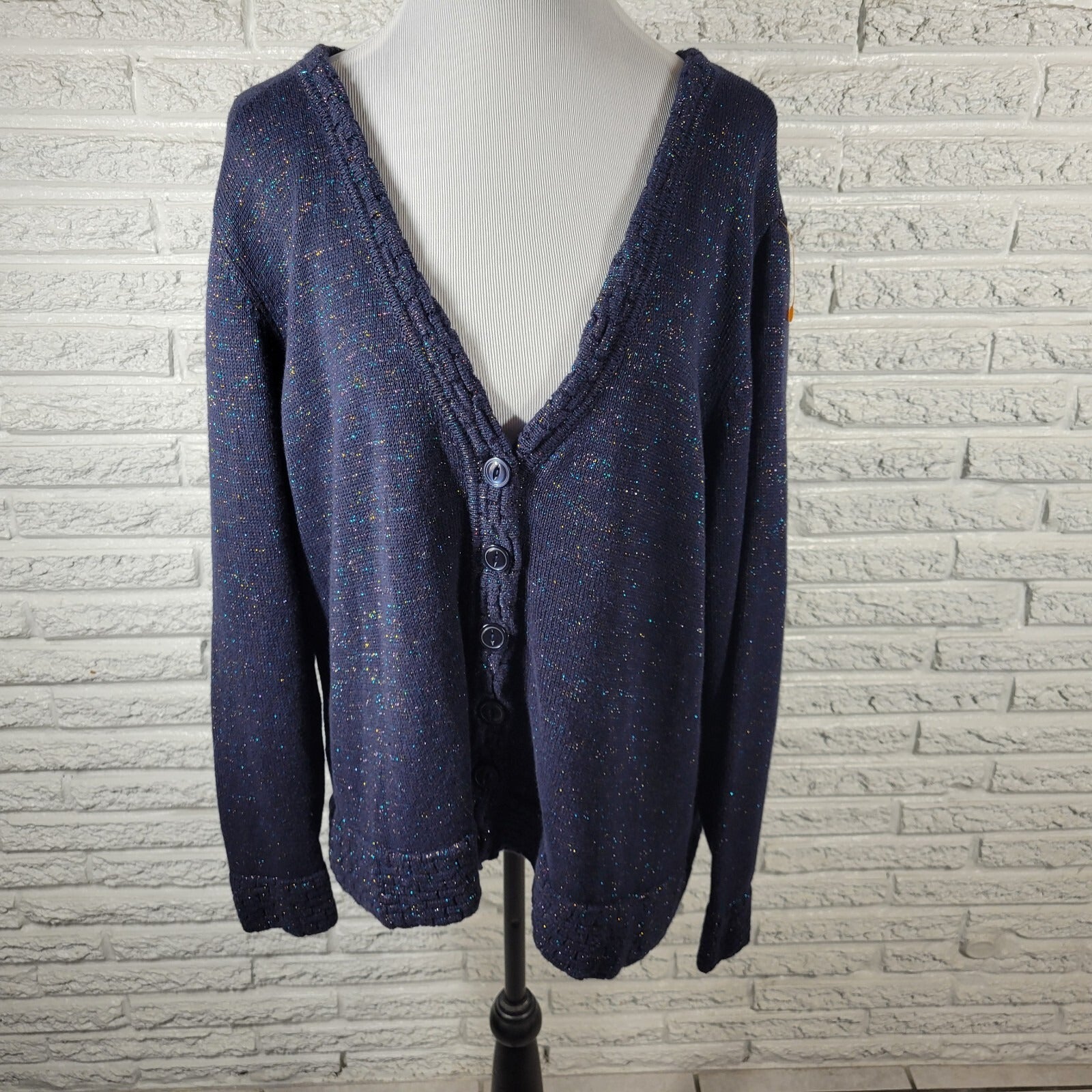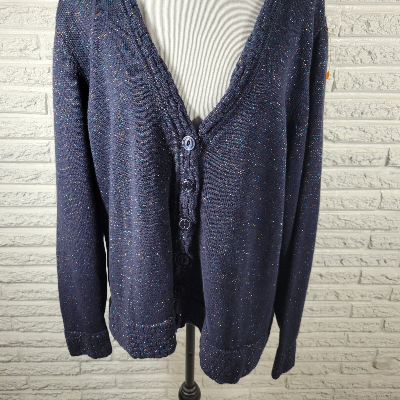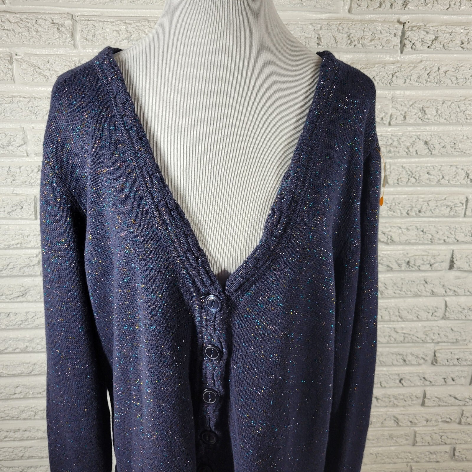 CJ Banks Womens Sweater 2X Plus Cardigan Blue Office Casual Cotton Blend