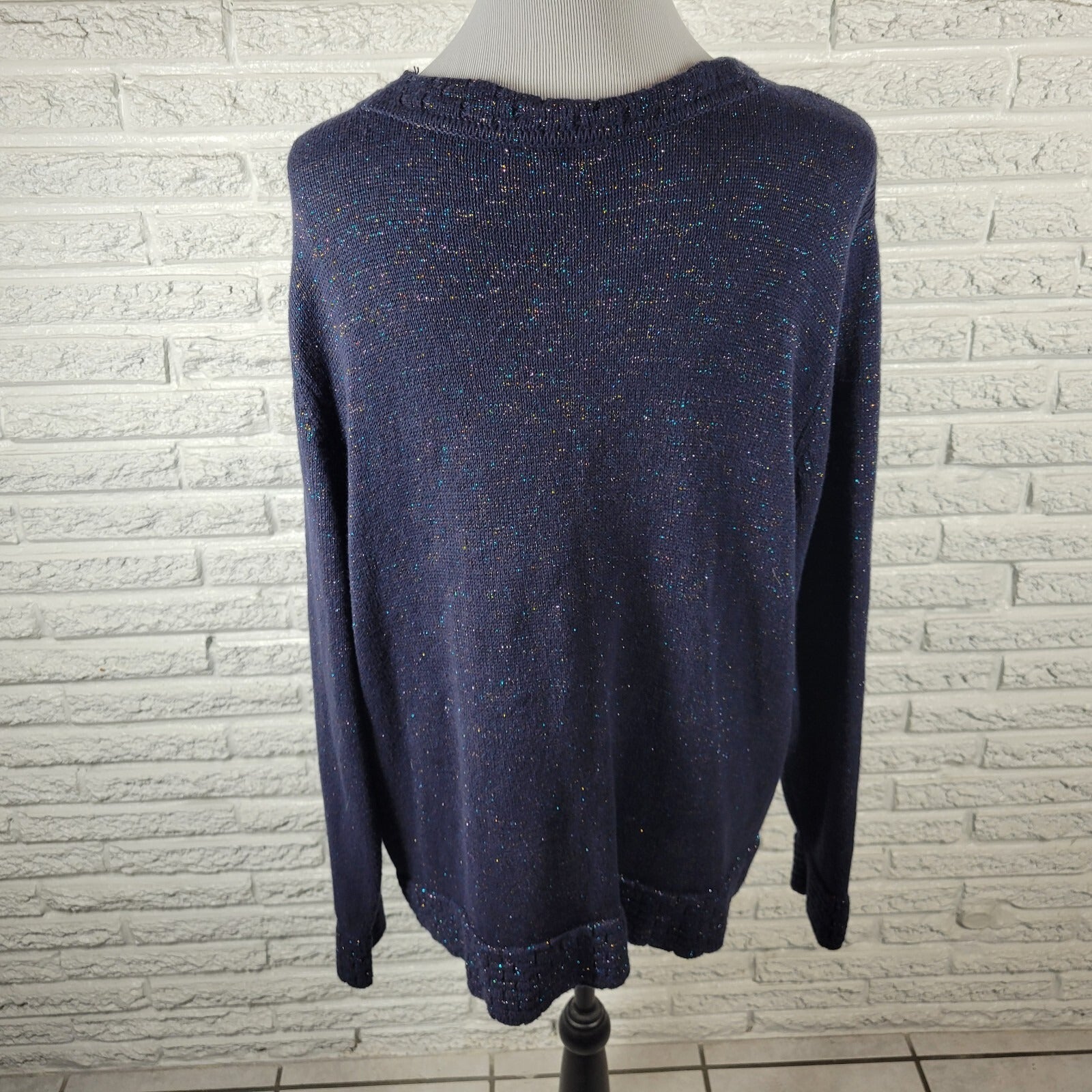 The CJ Banks Women's Sweater in size 2X is a stylish and versatile blue cardigan made from a comfortable cotton blend material. With a solid pattern and a V-neckline, this sweater is perfect for both office and casual occasions. The tight-knit fabric and long sleeves make it ideal for all seasons, while the hand wash only care instruction ensures easy maintenance. Wear it in winter, summer, fall, or spring to add a touch of style to your wardrobe.