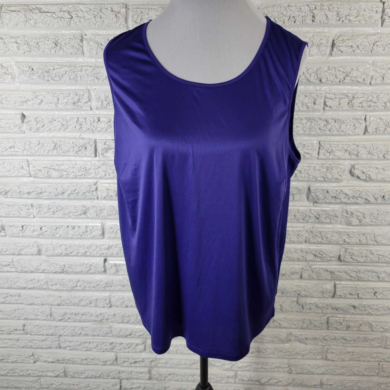 CJ Banks Womens Top 1X Plus Cap Sleeve Blue Purple Watercolor Lined Lightweight