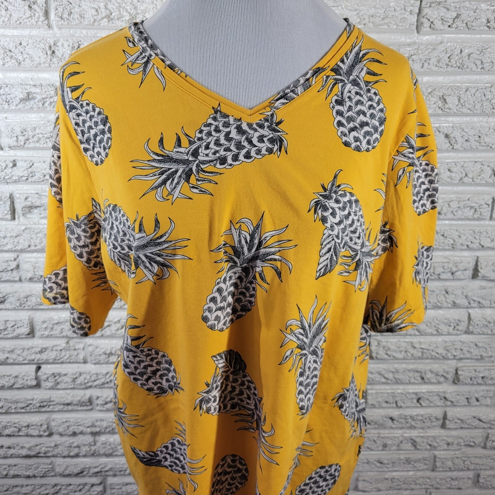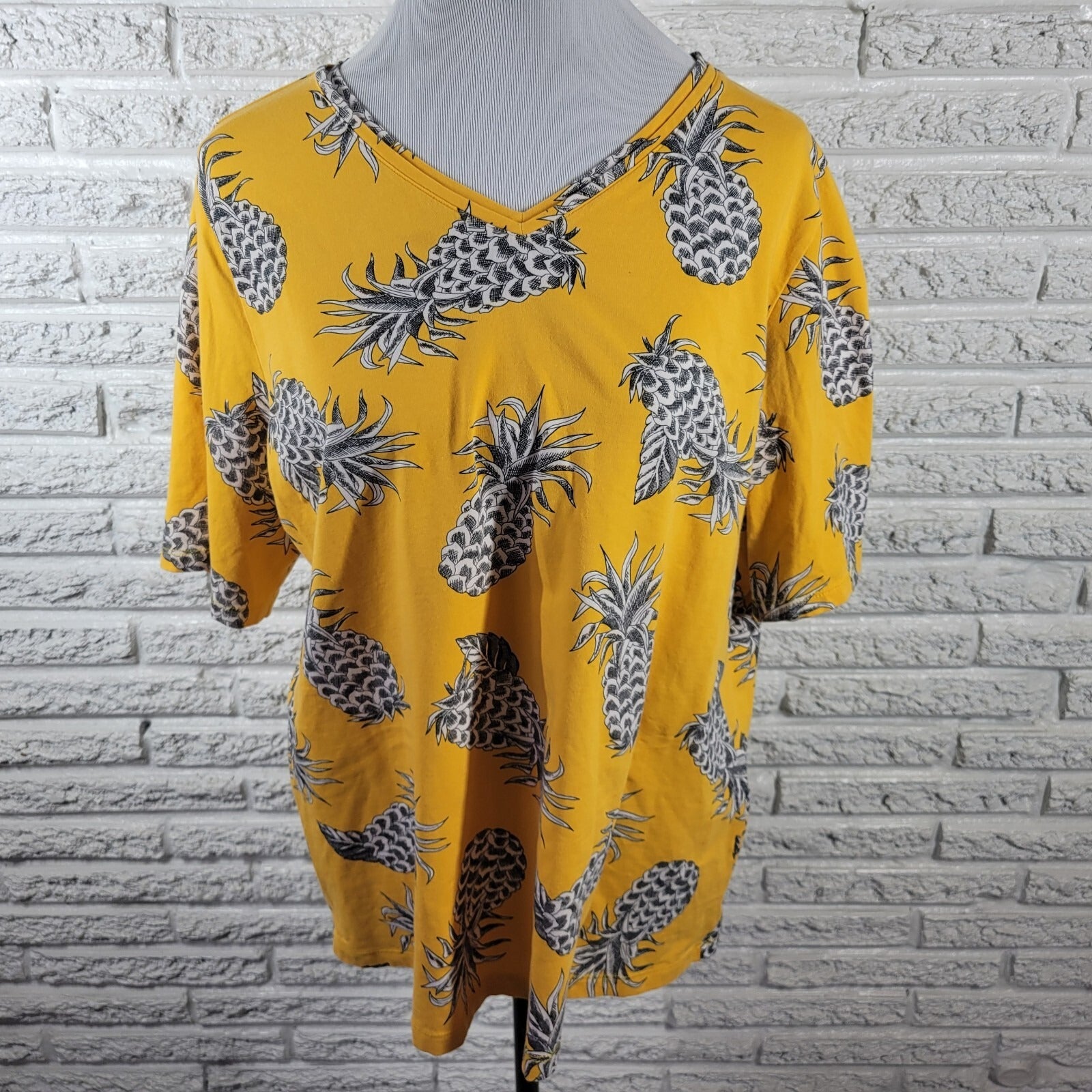 CJ Banks Womens Top 1X Plus Tee Short Sleeve Comfy Yellow Pineapples All Over