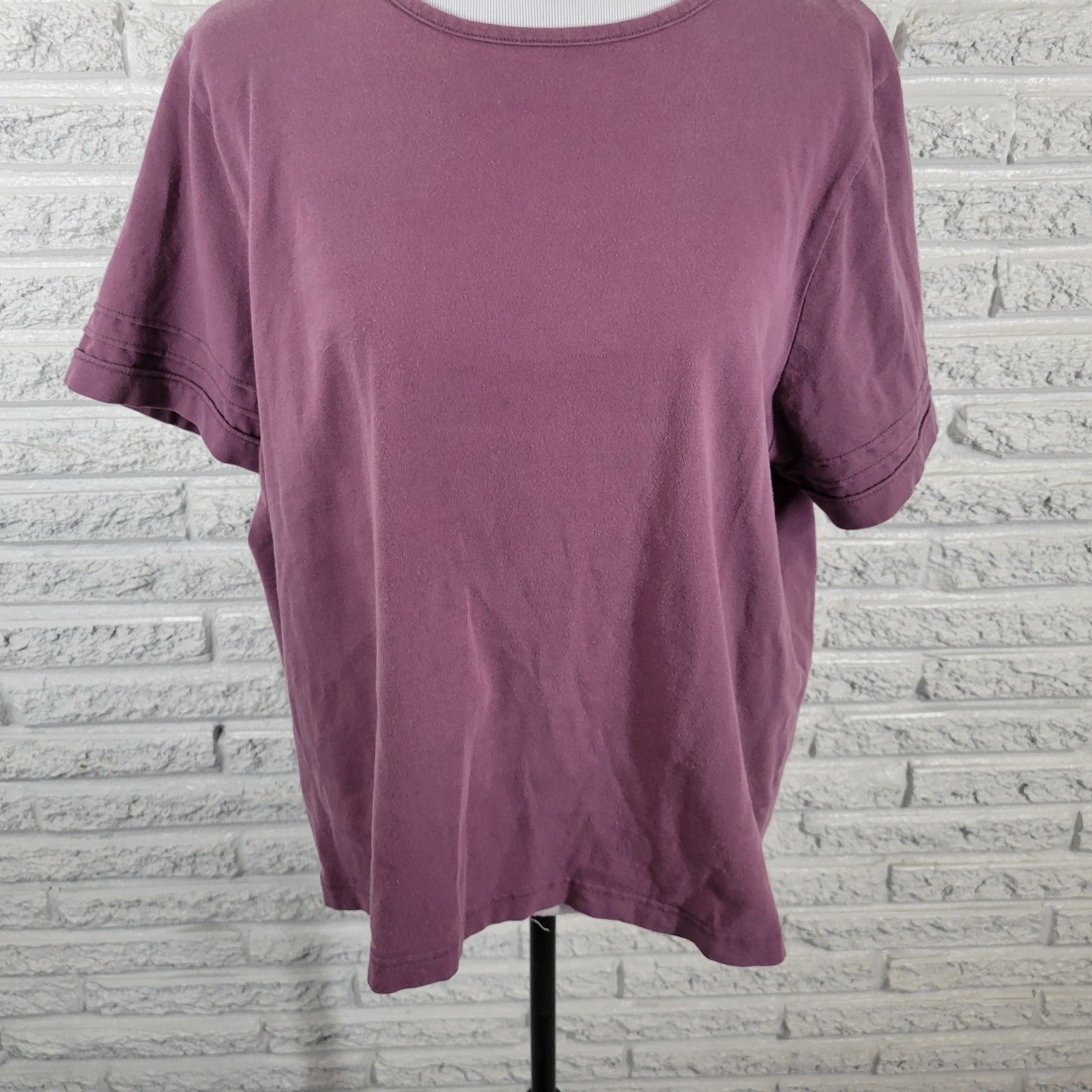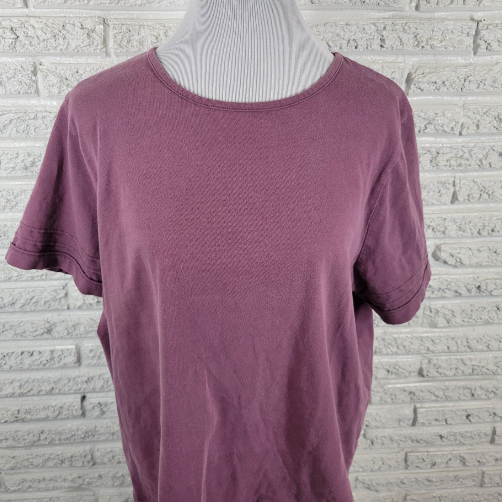 CJ Banks Womens Top 2X Plus Tee Short Pintucked Sleeve Purple Cotton Knit Casual