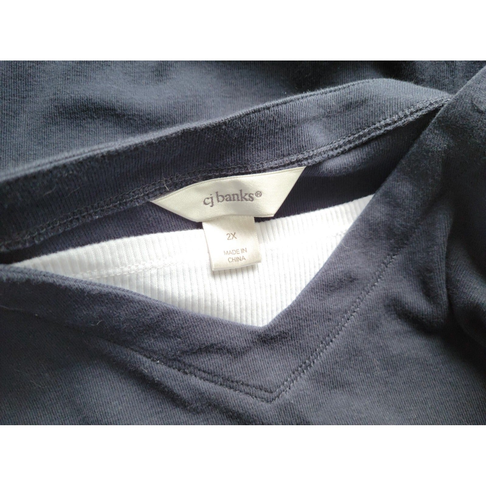 CJ Banks Womens Top 2X Plus Tee Short Sleeve Blue Cotton Basic Casual Stretch