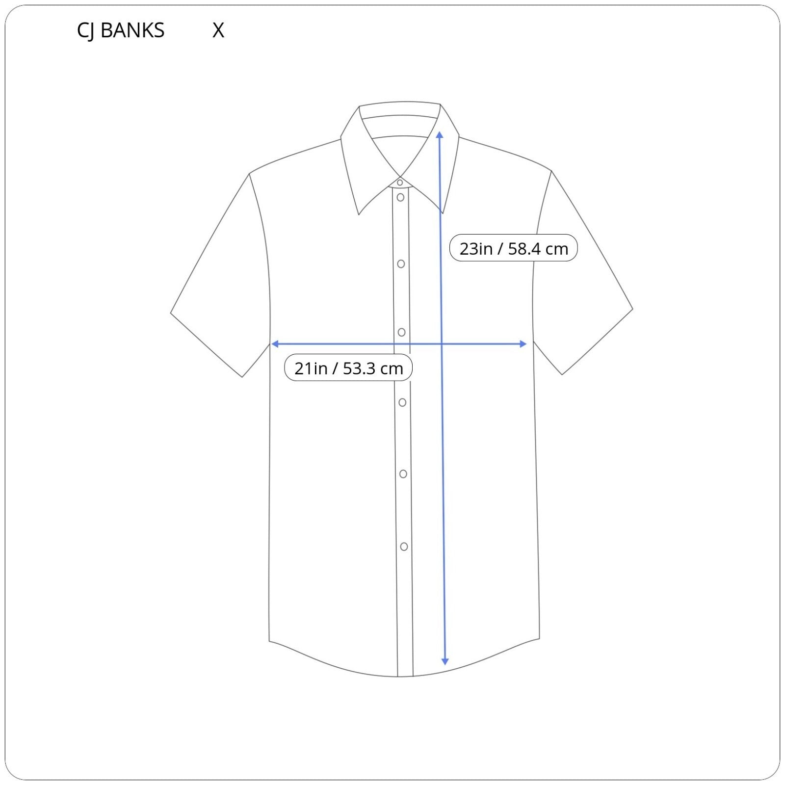 This CJ Banks women's top is a perfect addition to your wardrobe. The pink tropical collar and short sleeves give it a casual vibe, making it suitable for any occasion. The button-up closure and regular fit ensure comfort, while the floral pattern adds a touch of style. Made of rayon, this top is machine washable and easy to maintain. The XL size is perfect for a regular fit, and the collar and sleeves are perfect for any season. This basic button-up top is a must-have for any woman's closet.