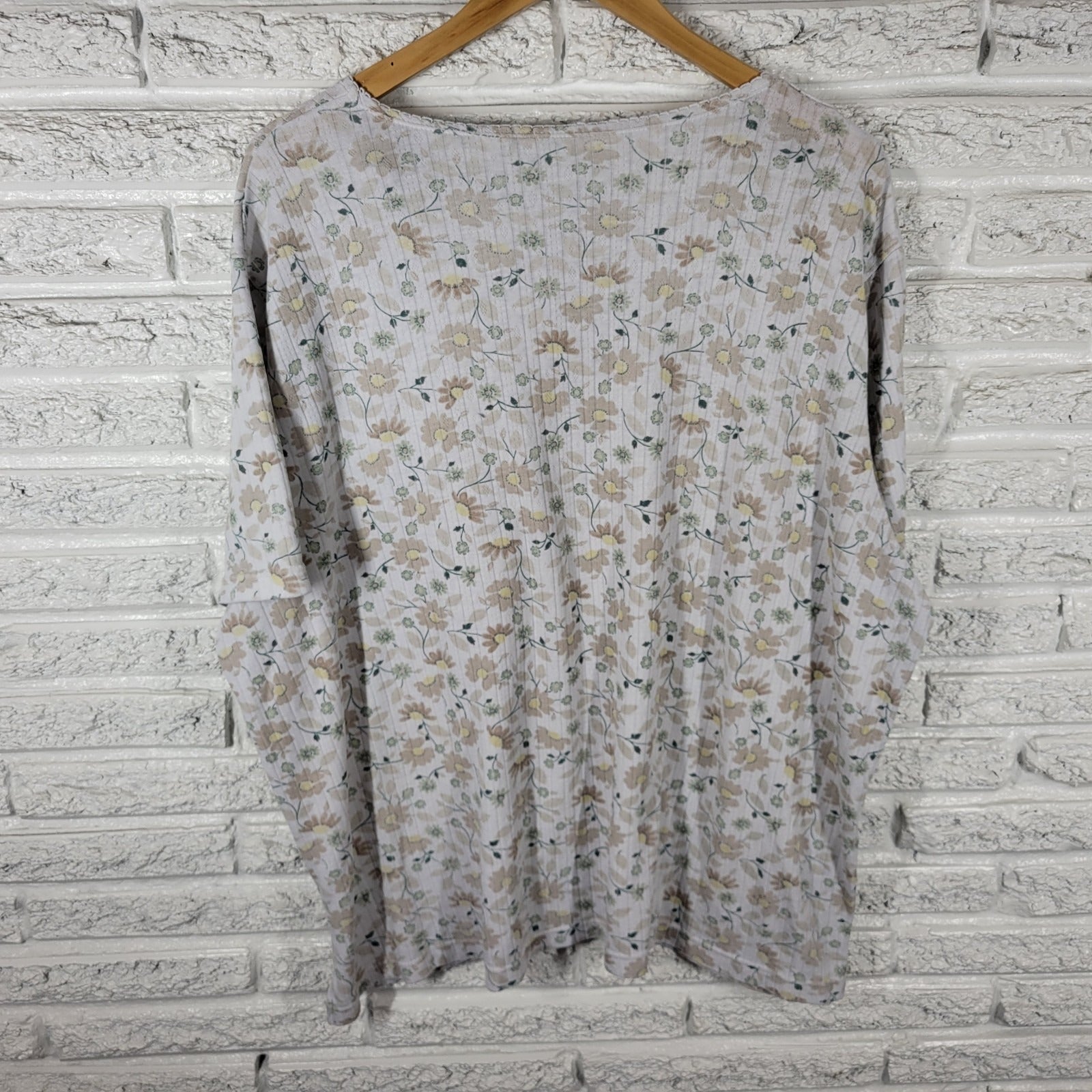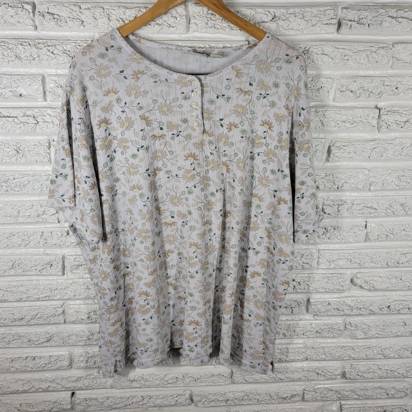 Classic Elements Womens Top 3X Plus Short Sleeve Beige Floral 1/4 Button Comfy