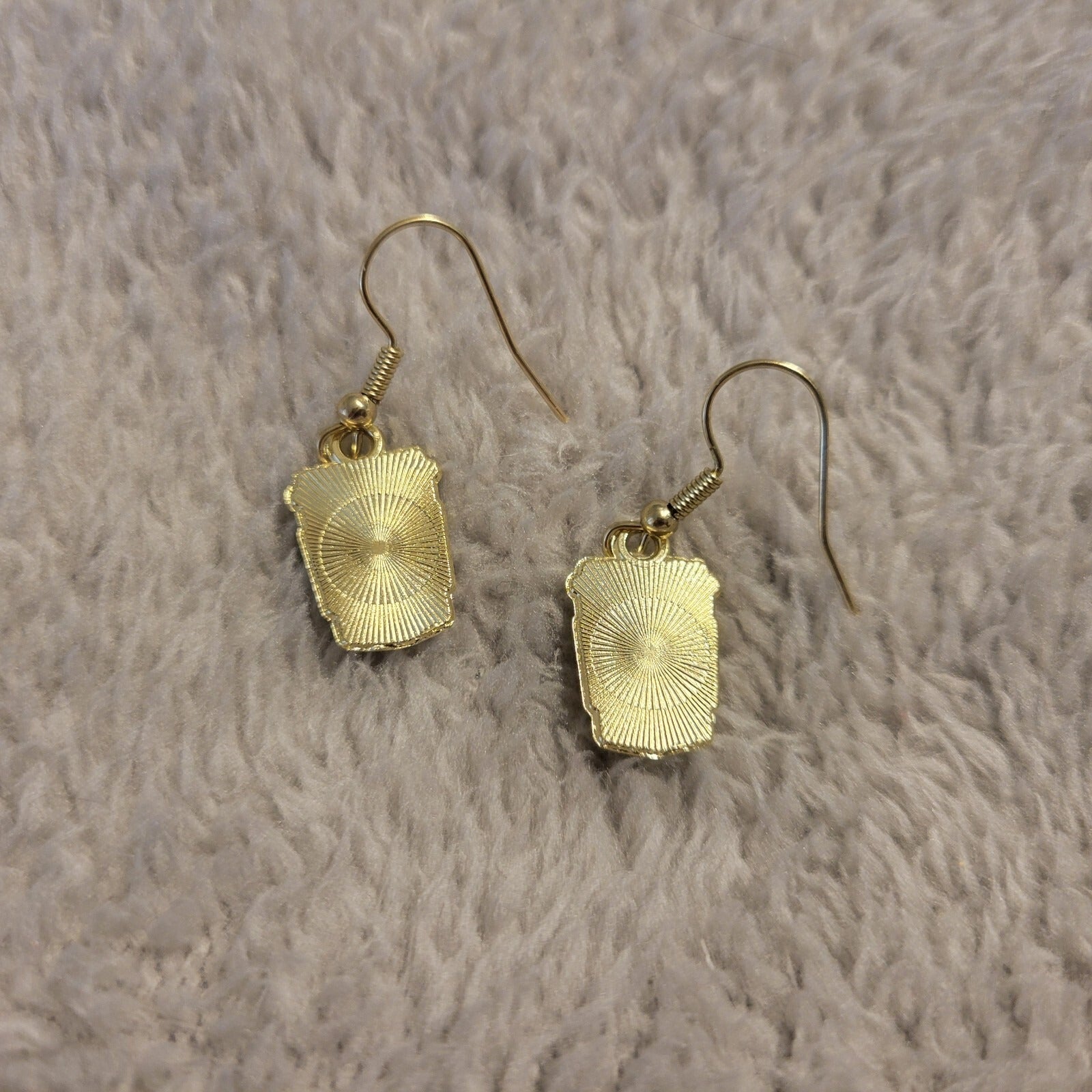 Coffee Cup Earrings One Pair Gold Tone Fish Hook Dangle Caffeine Morning Joe