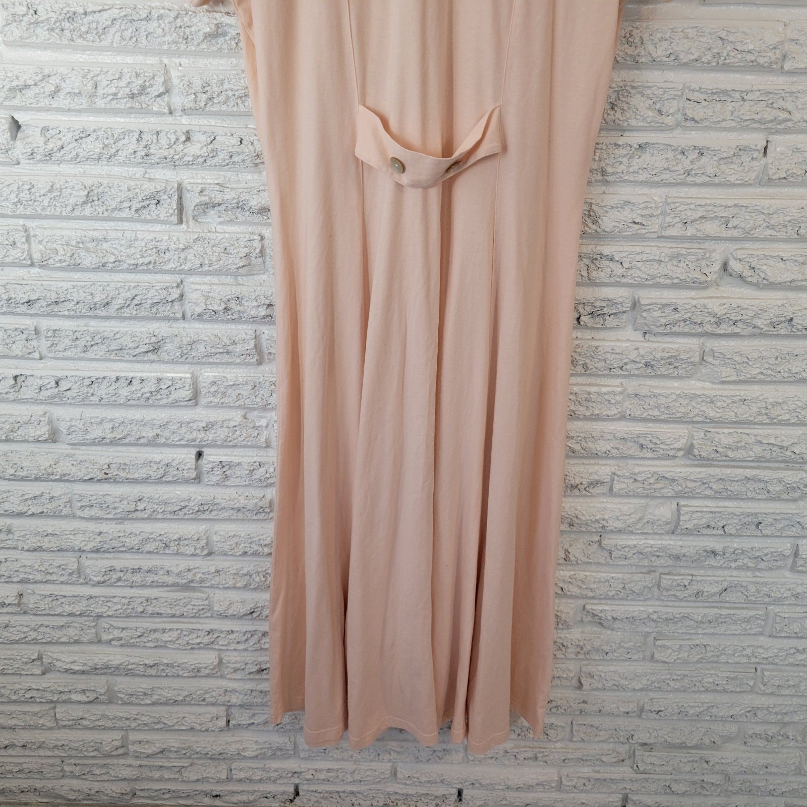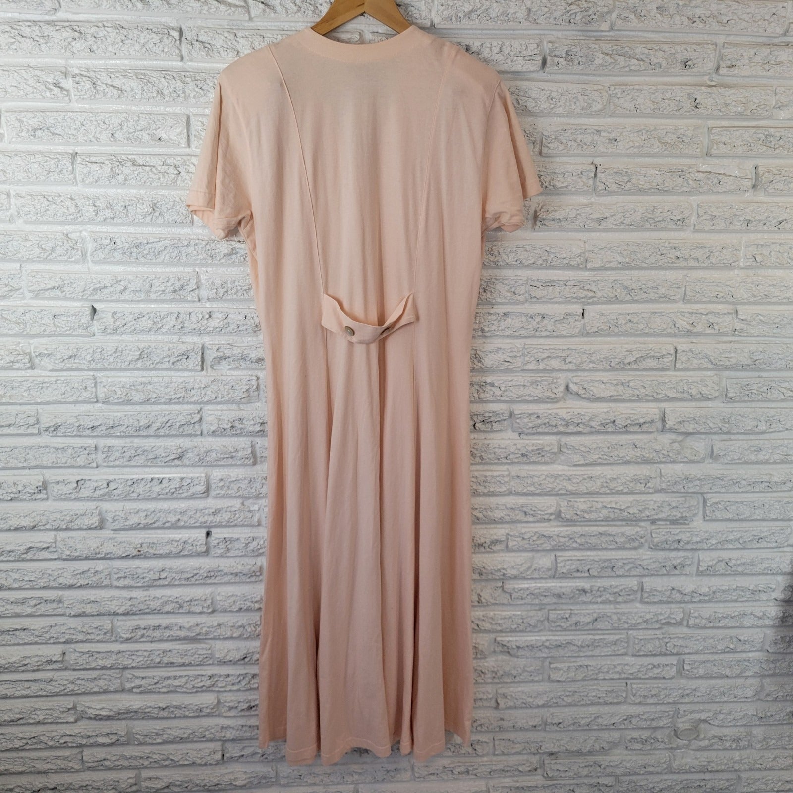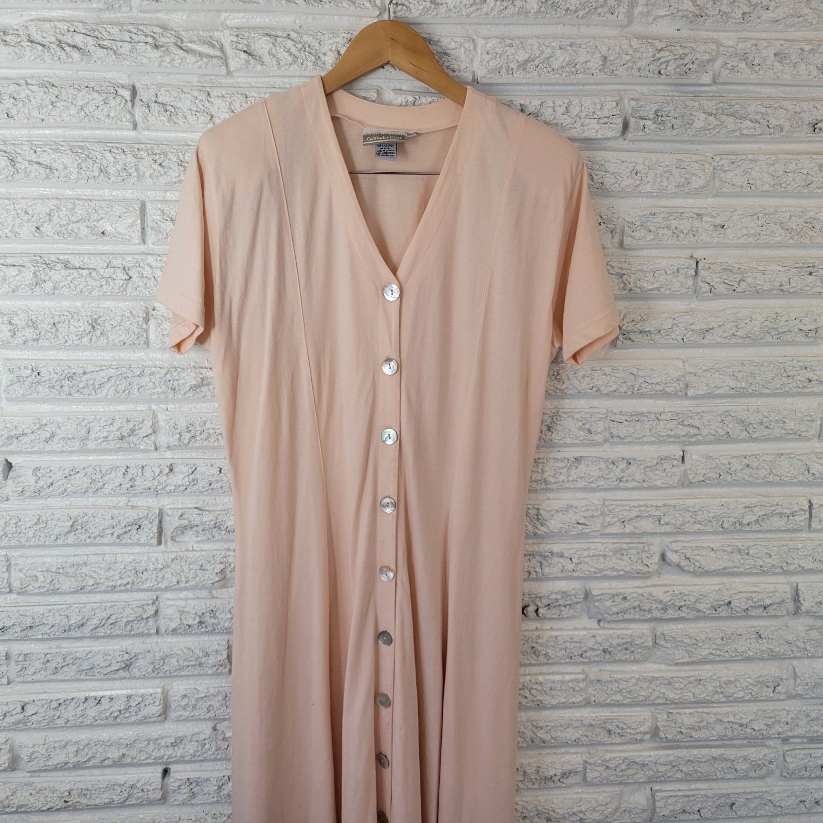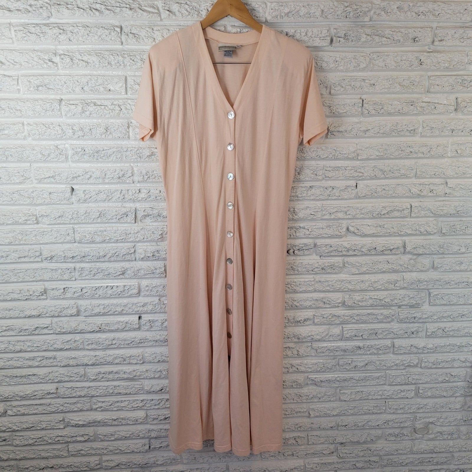 Coldwater Creek Womens Dress XL Midi Short Sleeve Pale Pink Cotton Button Up