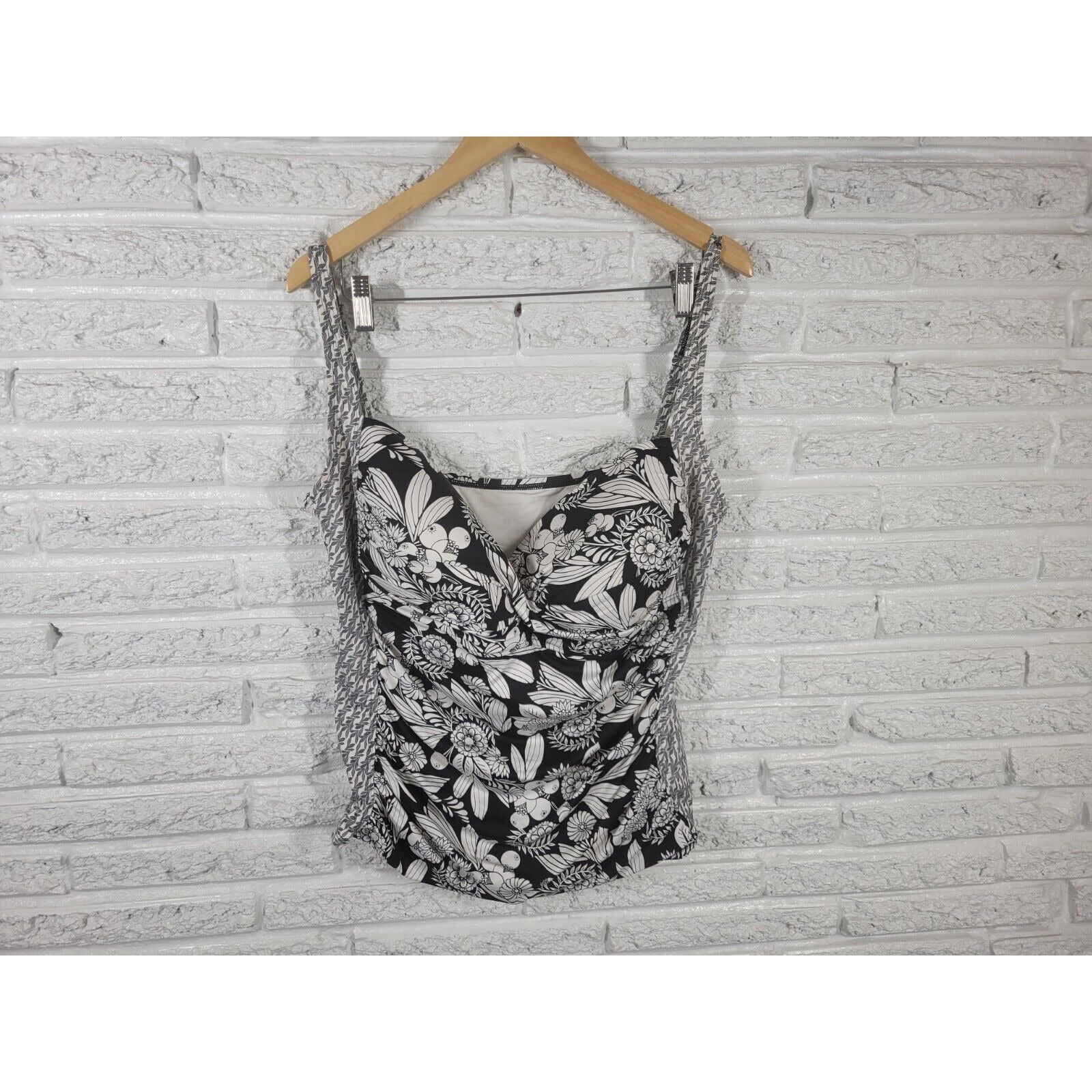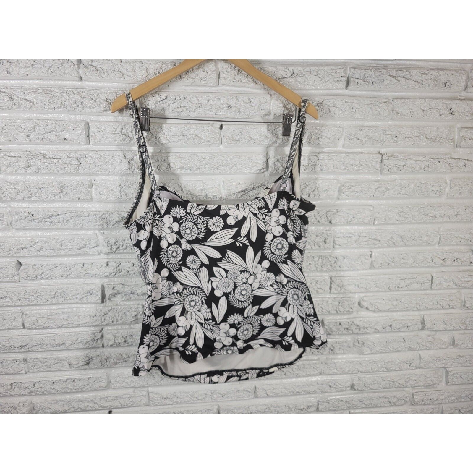 Coldwater Creek Womens Swim Top 20W Plus Black Floral Adjustable Spaghetti Bra