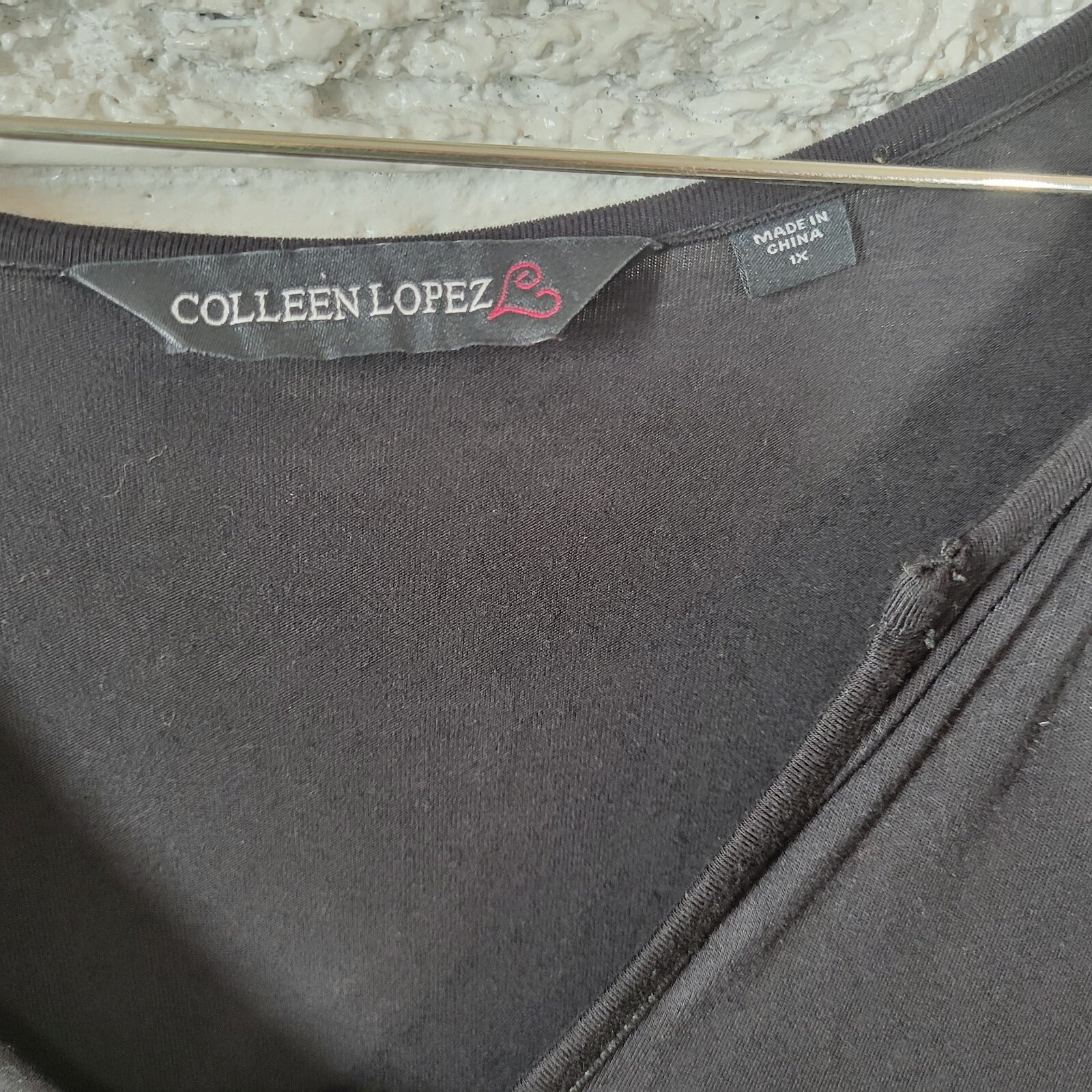 Colleen Lopez Women Dress 1X Plus Short Sleeve Black Tiered Rayon Blend Casual