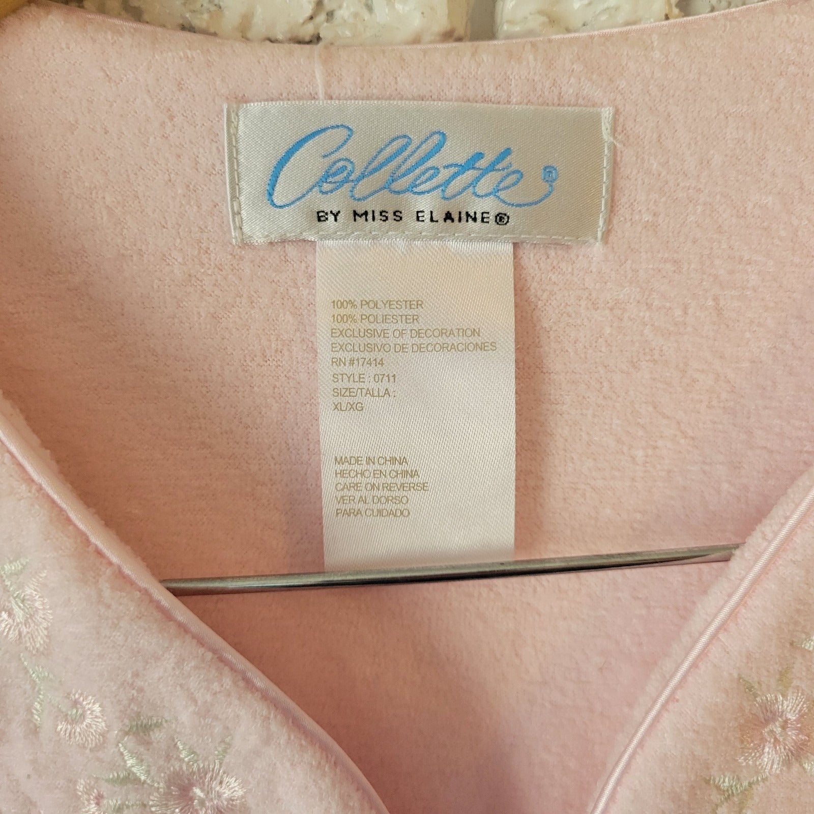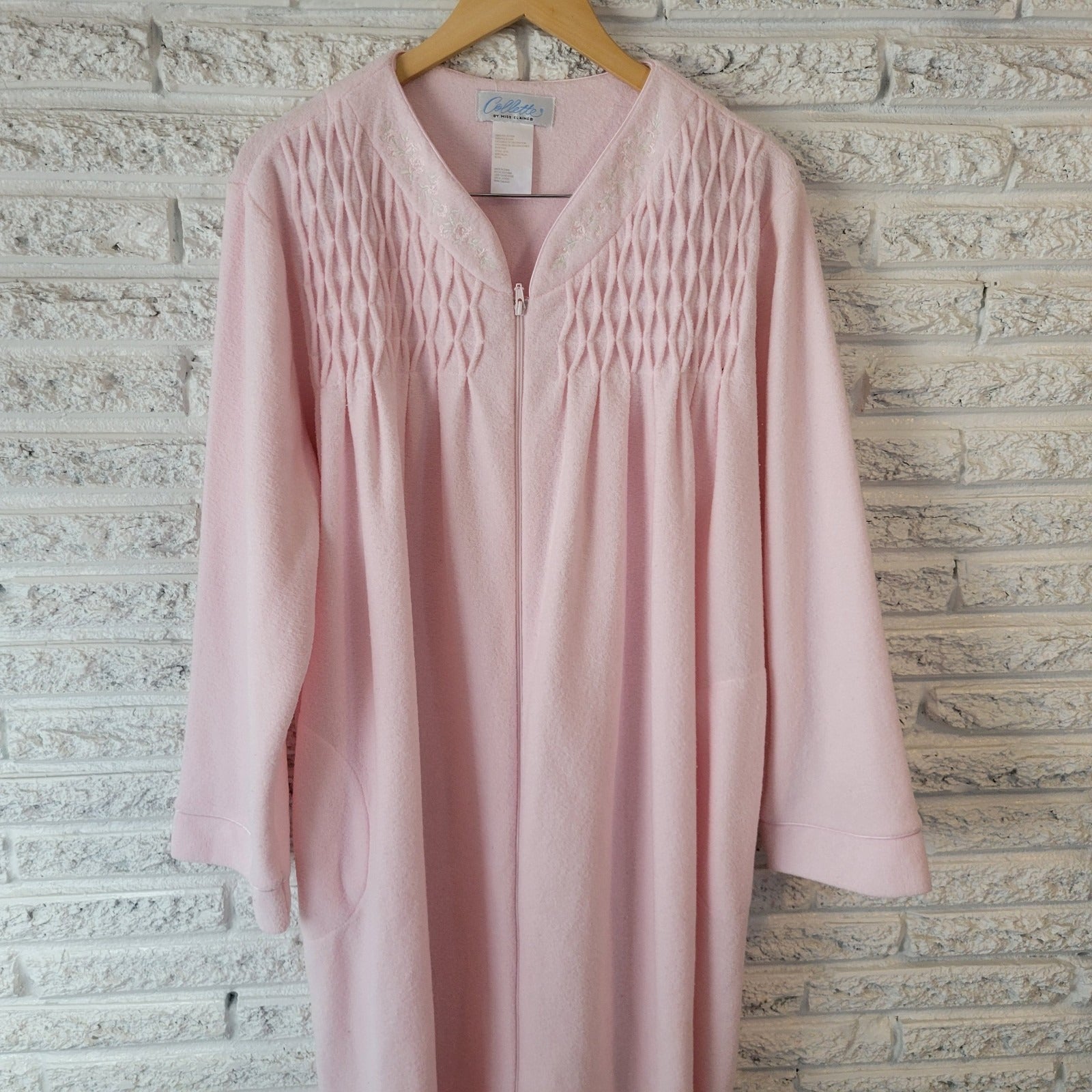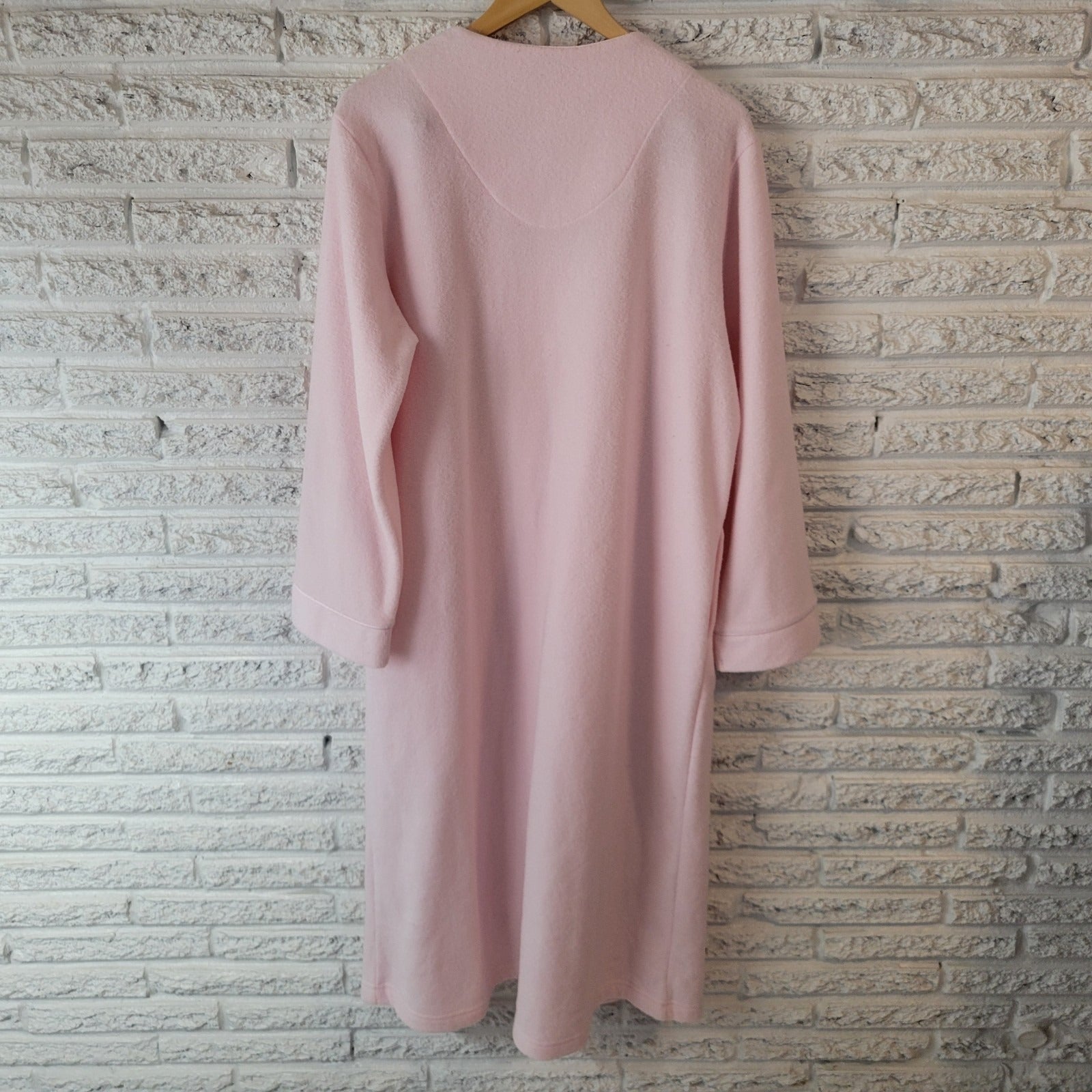 Collette Miss Elaine Womens Robe XL Full Zip Pink Fleece Embroidered Cinched