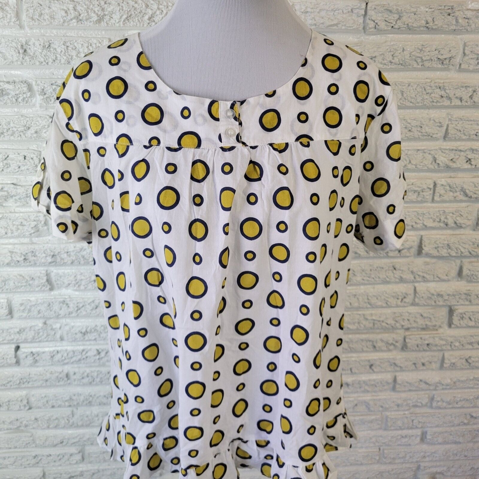 Contact Plus New York Womens Top 2X Two Button Yellow Circles Cotton Lightweight