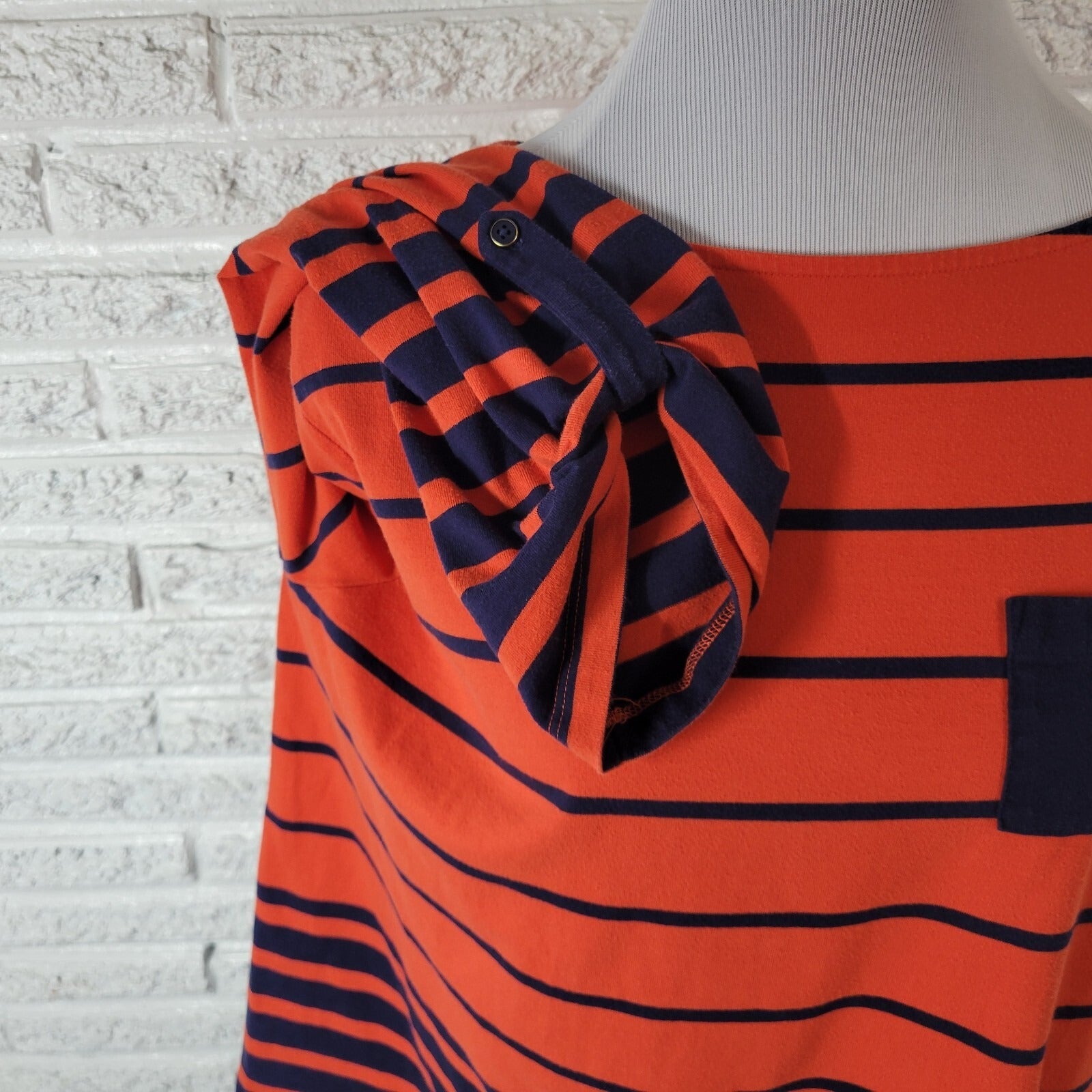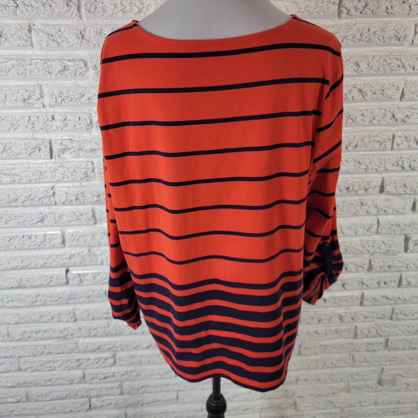 Coral Bay Womens Top 1X Plus Tee Long Roll Tab Sleeve Cotton Orange Blue Stripe