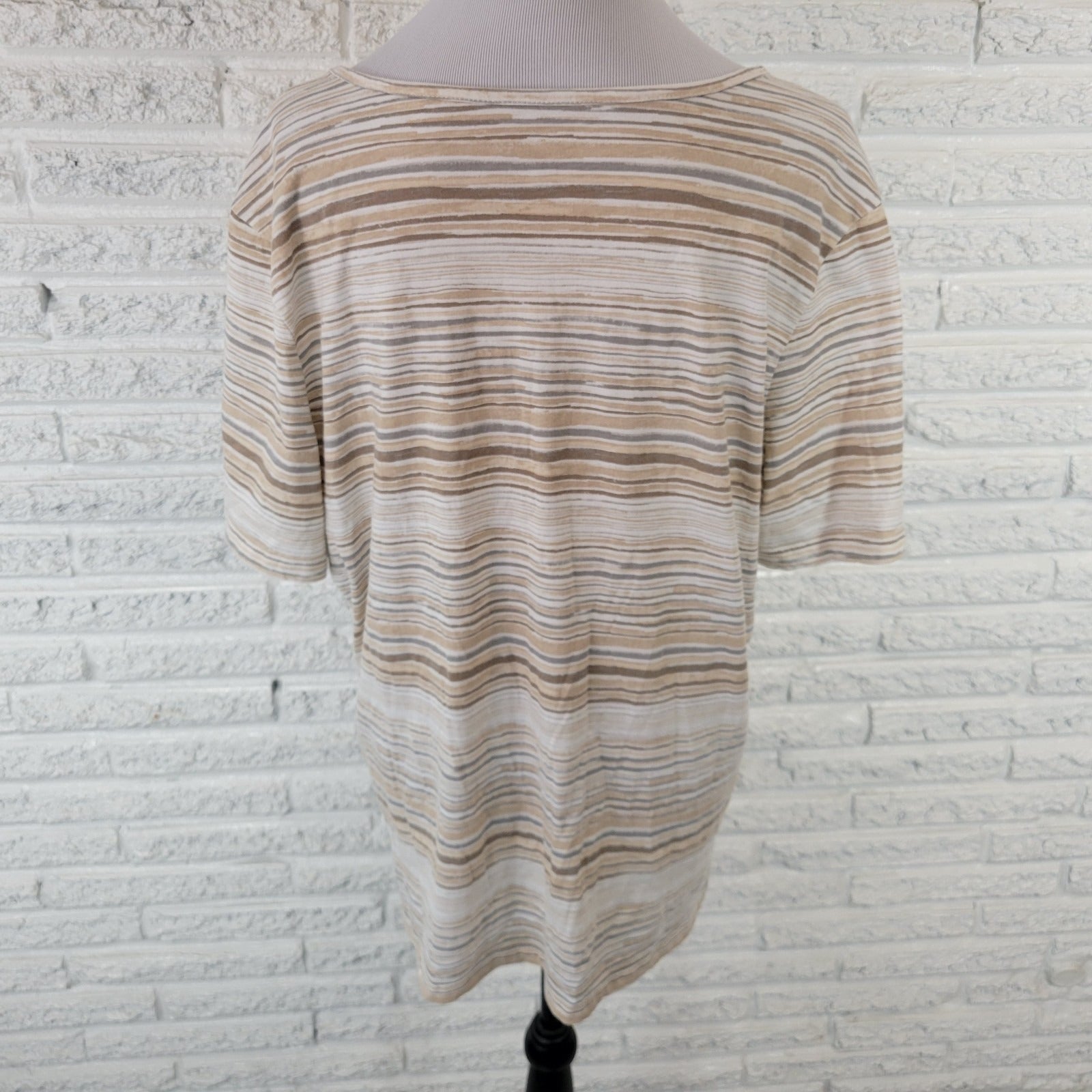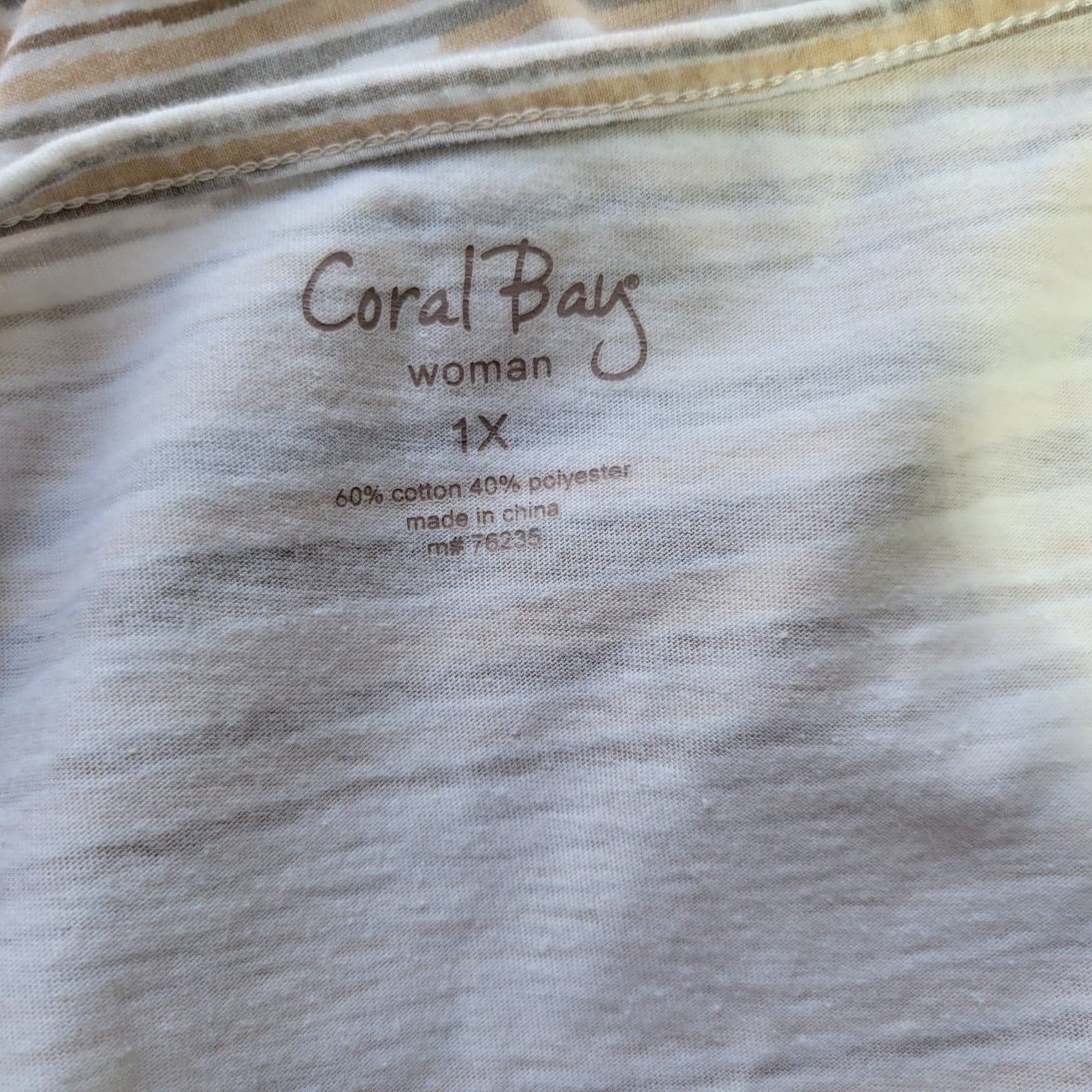 Coral Bay Womens Top 1X Plus Tee Short Sleeve Cotton Blend Beige Tan Stripe
