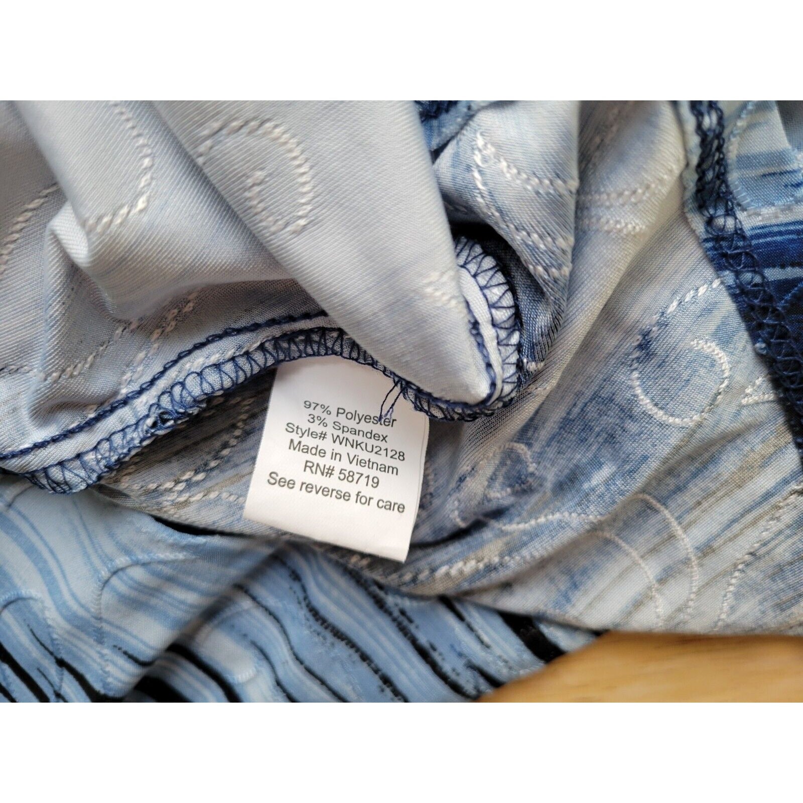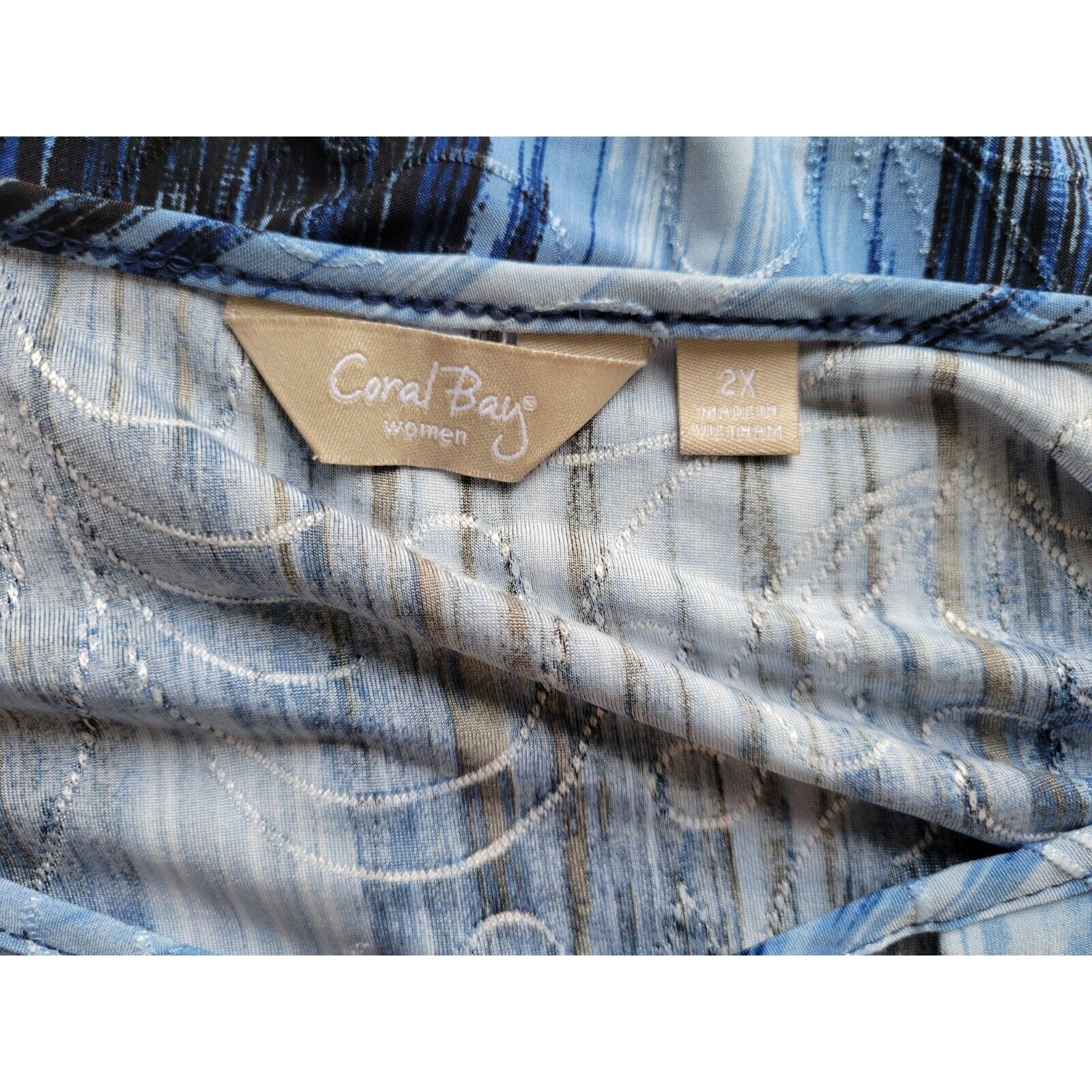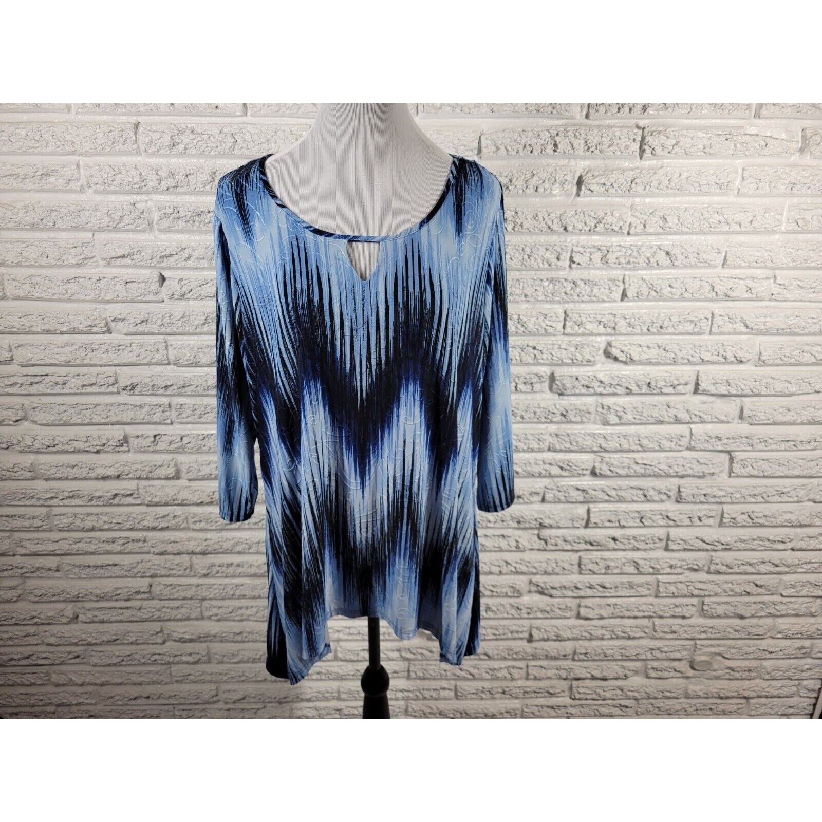 Coral Bay Womens Top 2X Plus 3/4 Sleeve Blue Geometric Embroider Keyhole Office