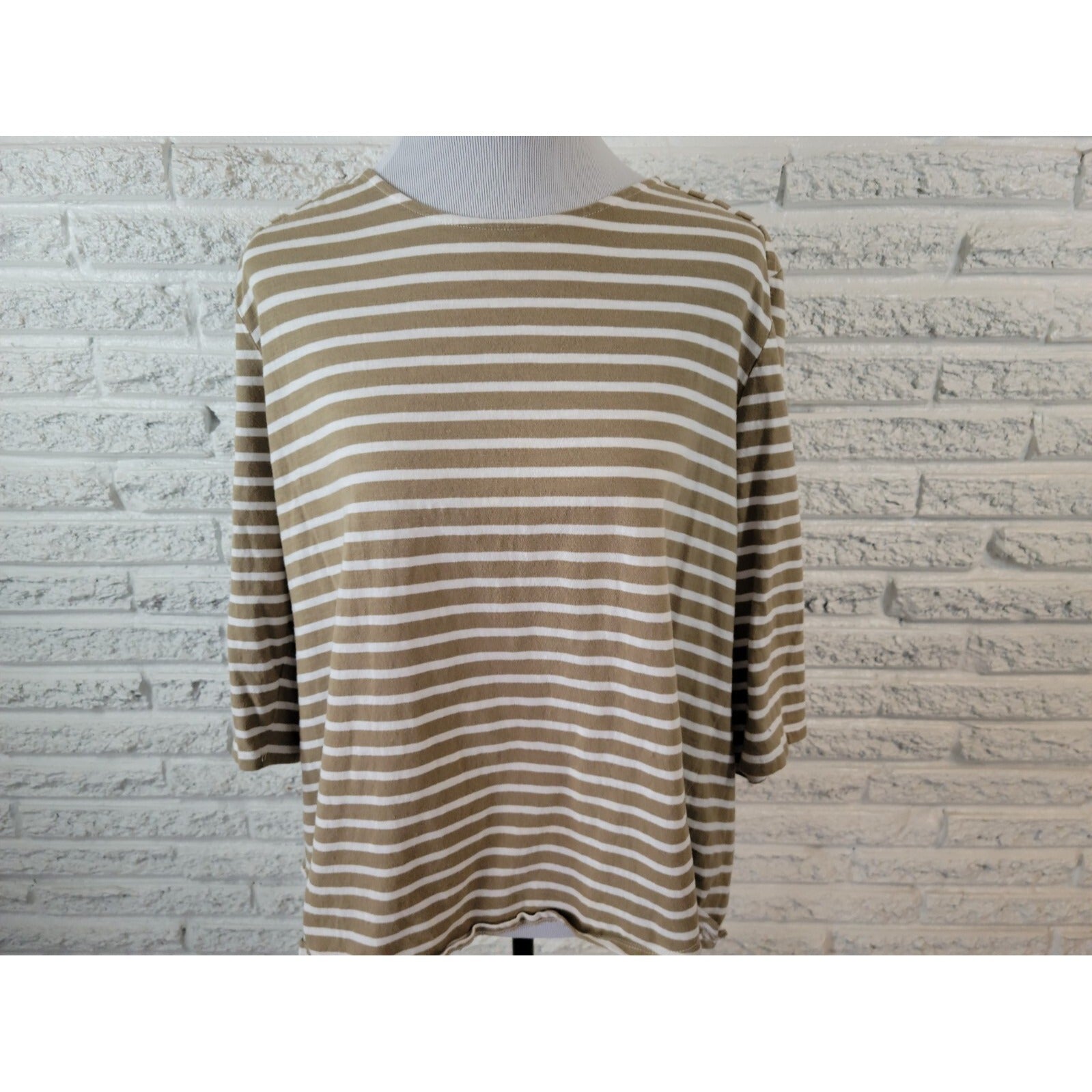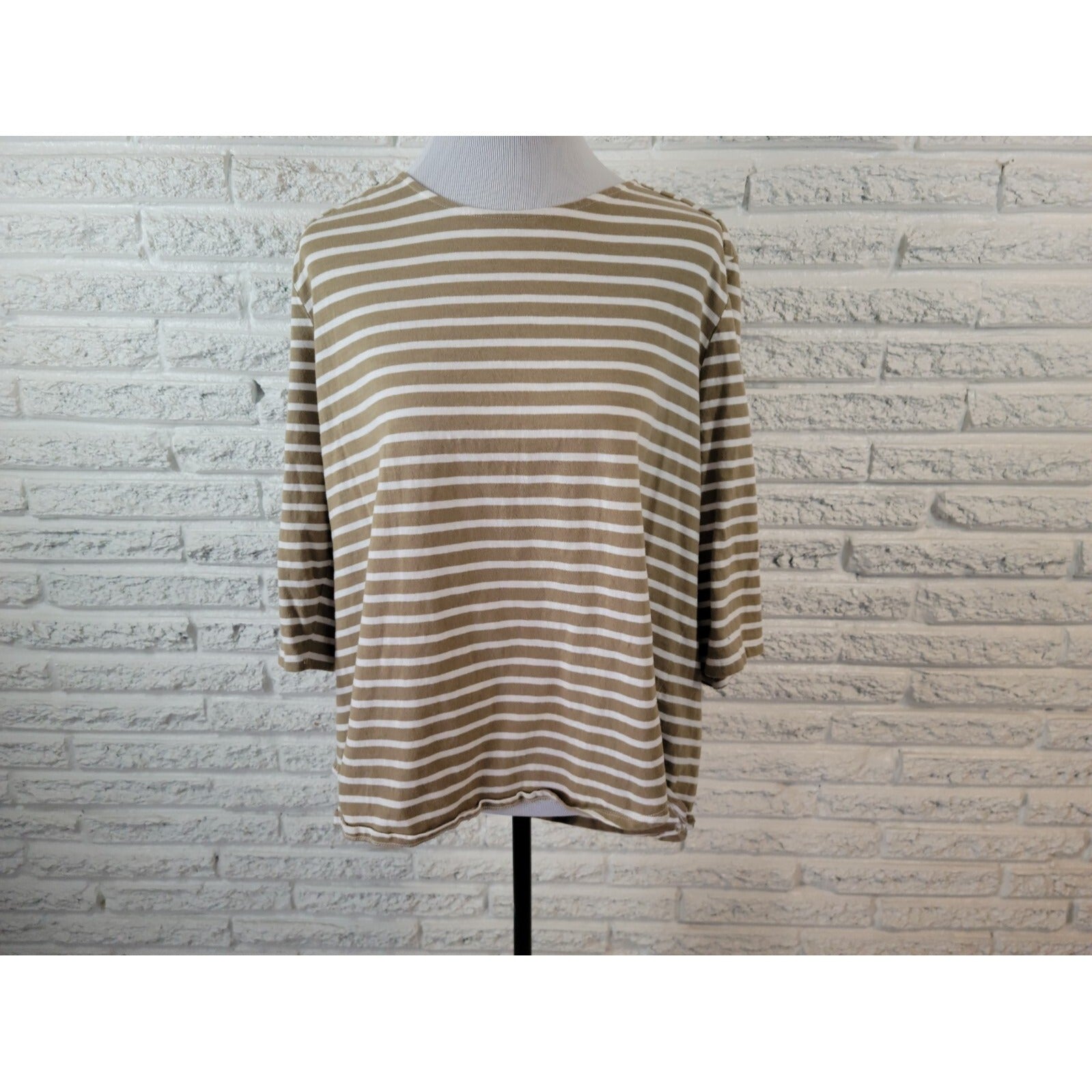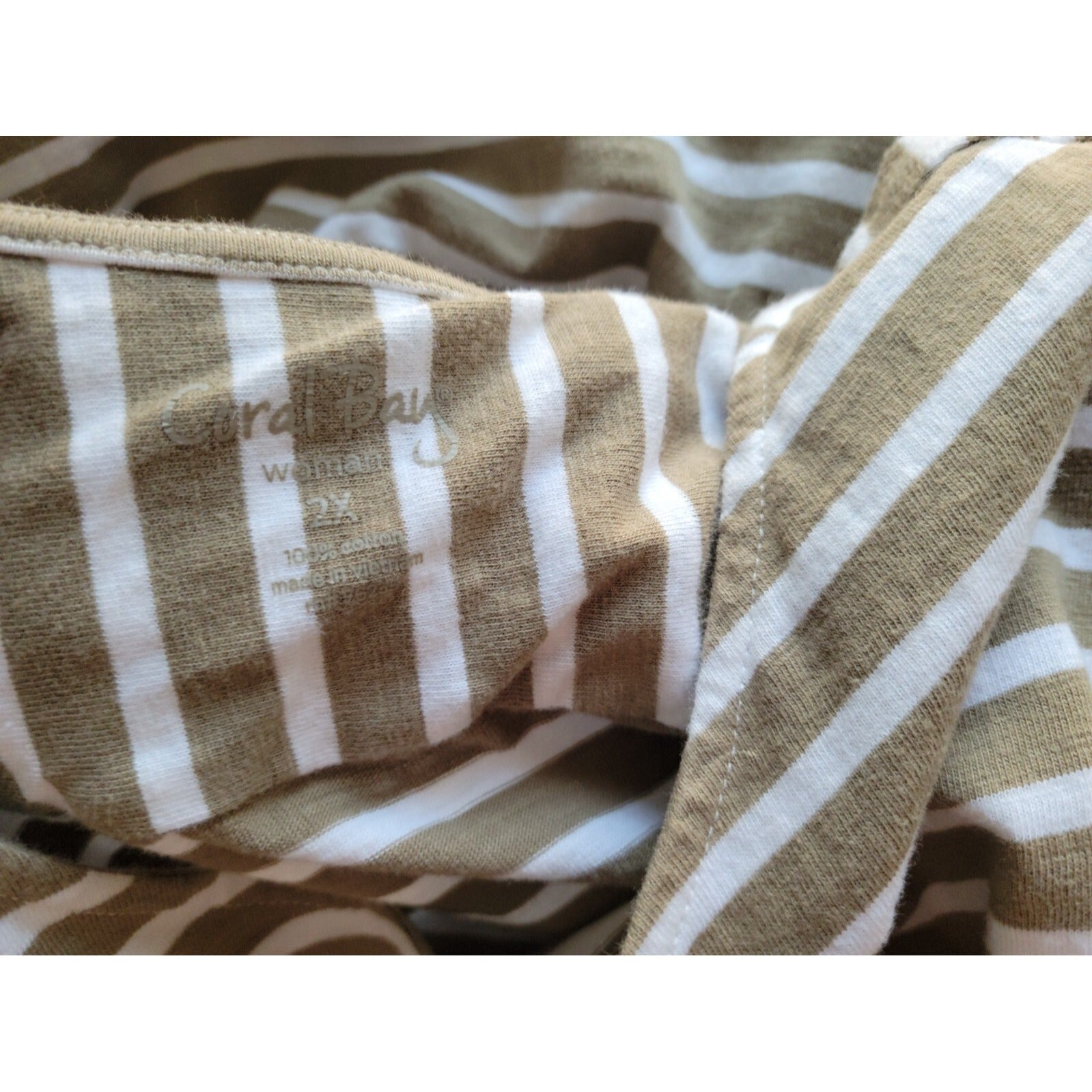 Coral Bay Womens Top 2X Plus Tee Pullover Cotton Lightweight Casual Tan Stripe