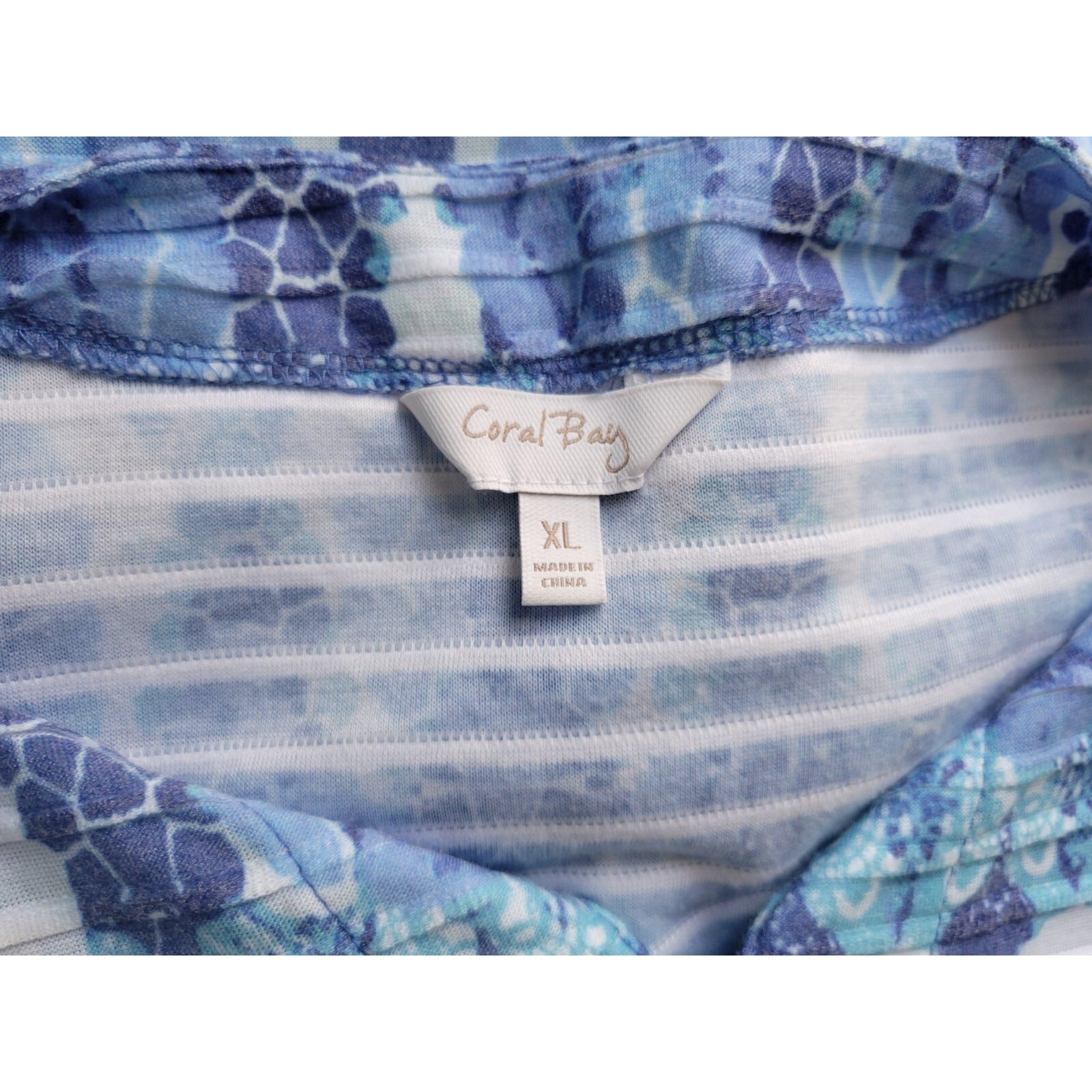 Coral Bay Womens Top Extra Large XL Tunic 3/4 Sleeve Blue Lightweight Pintuck
