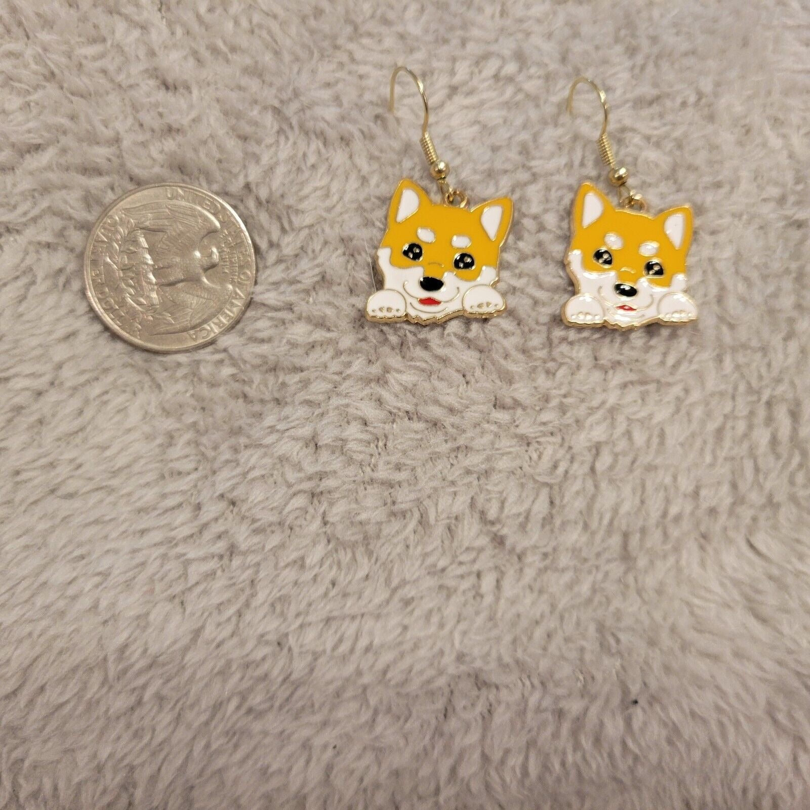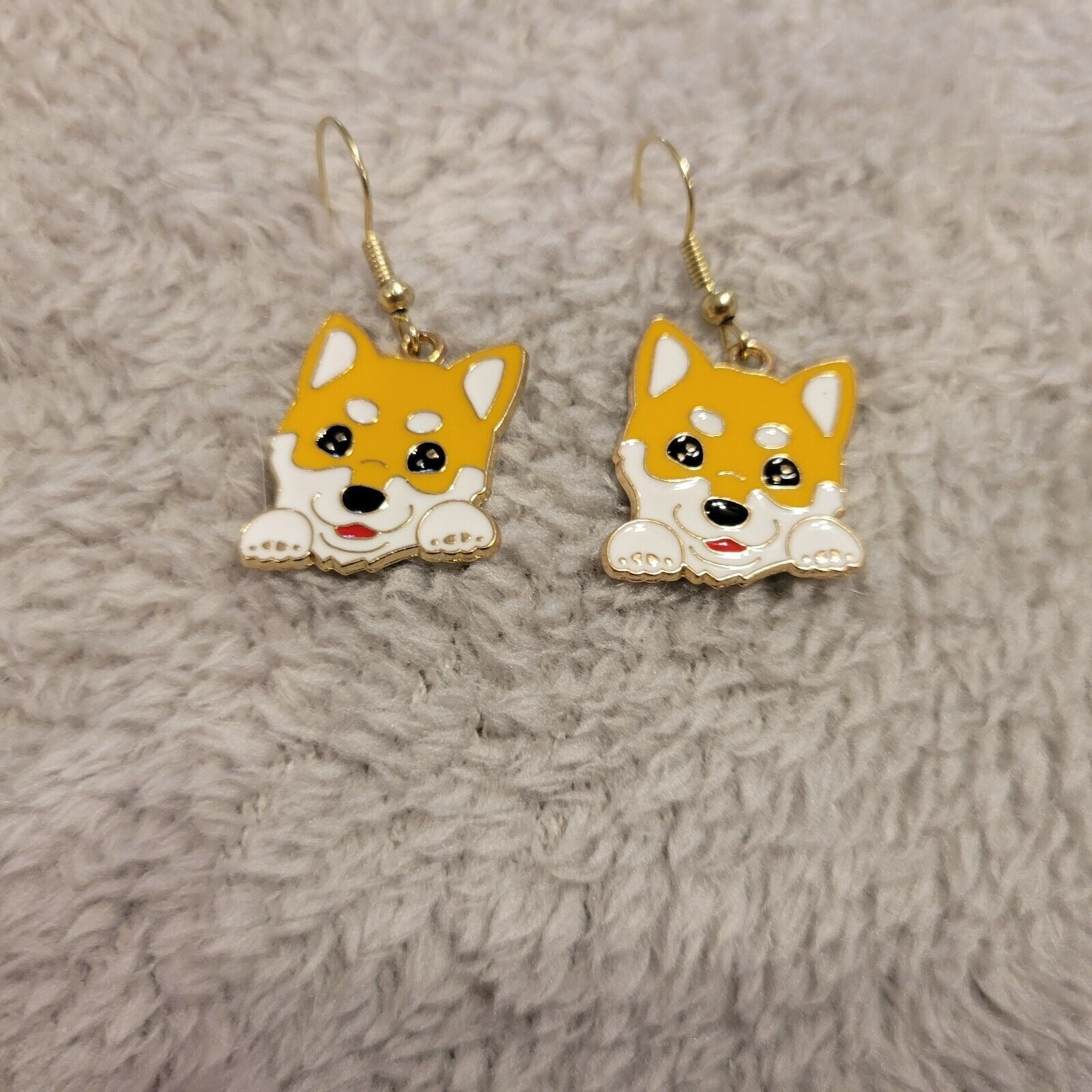 Corgi LG Dog Puppy Earrings One Pair Gold Tone Hanging Dangle Fish Hook Novelty