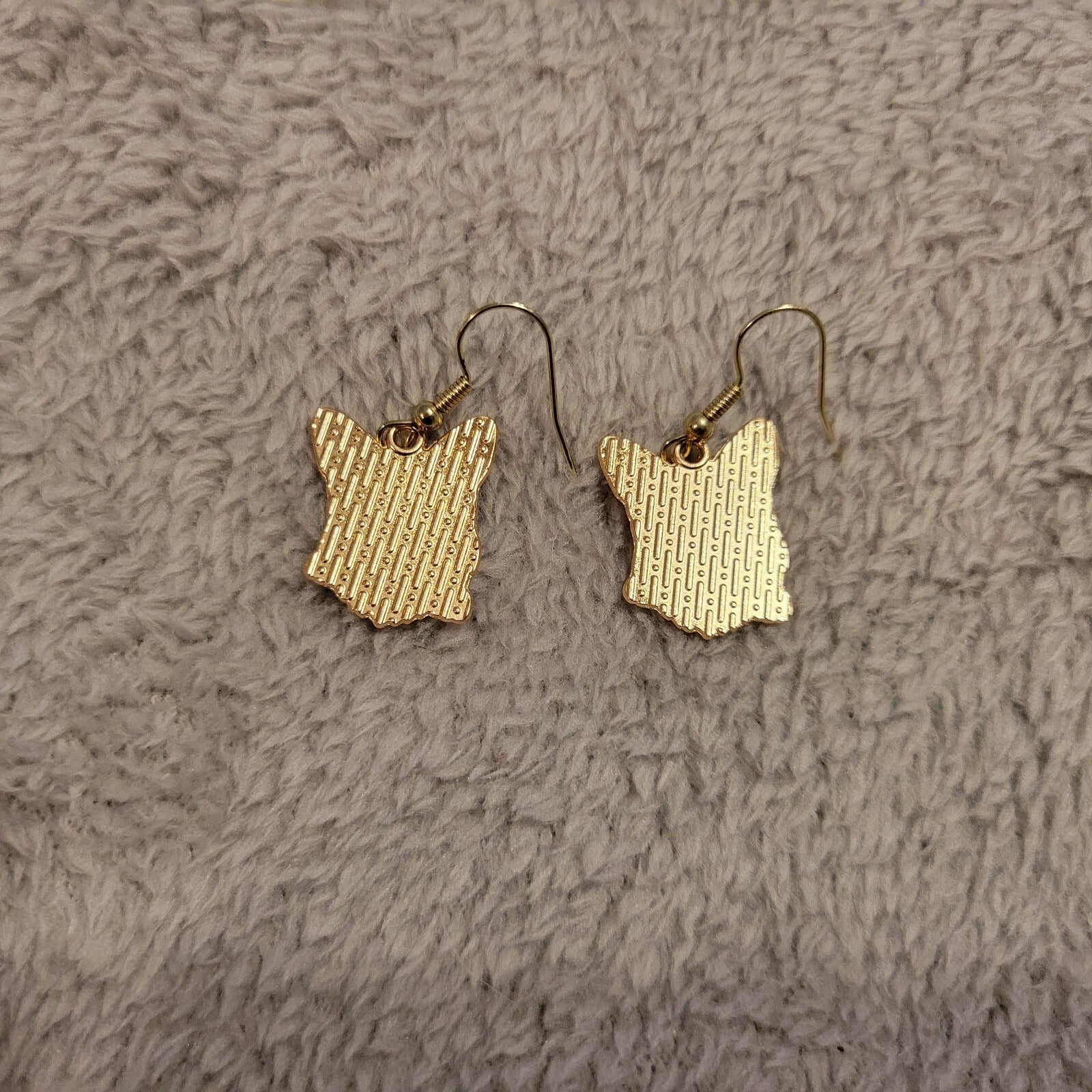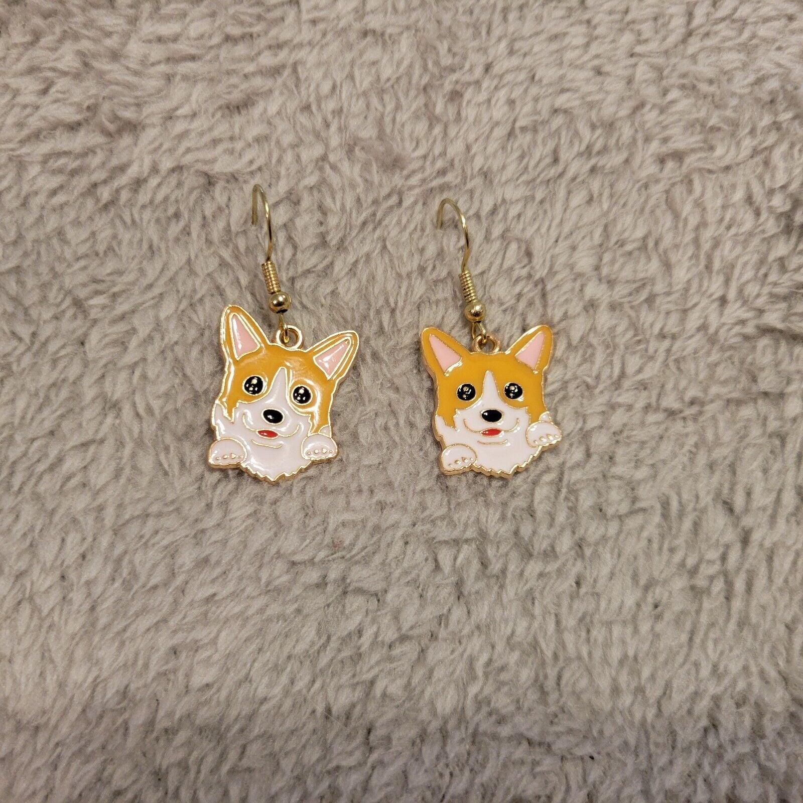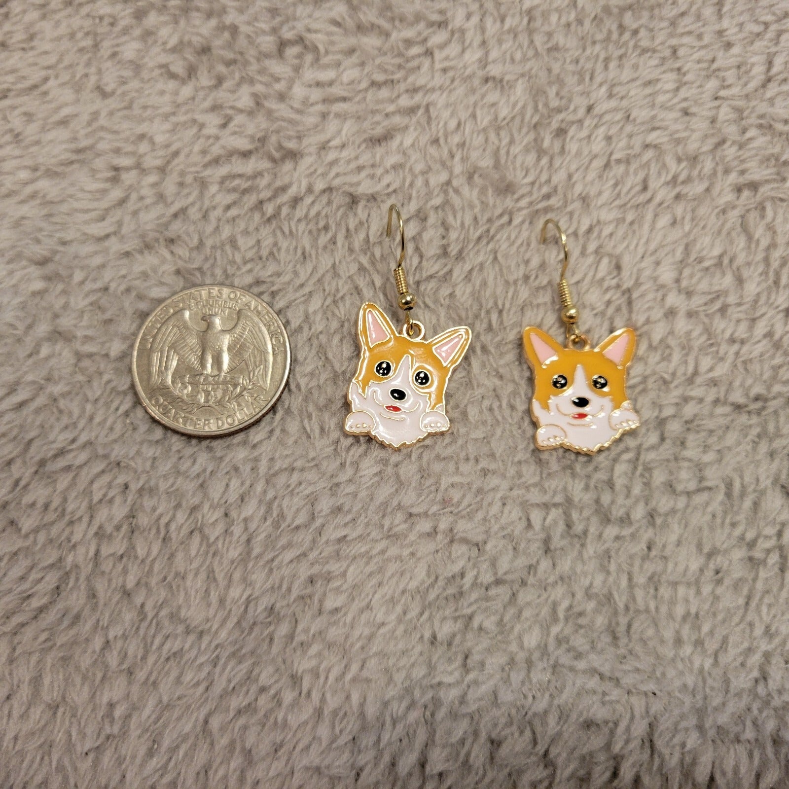 Corgi SM Dog Puppy Earrings One Pair Gold Tone Hanging Dangle Fish Hook Novelty