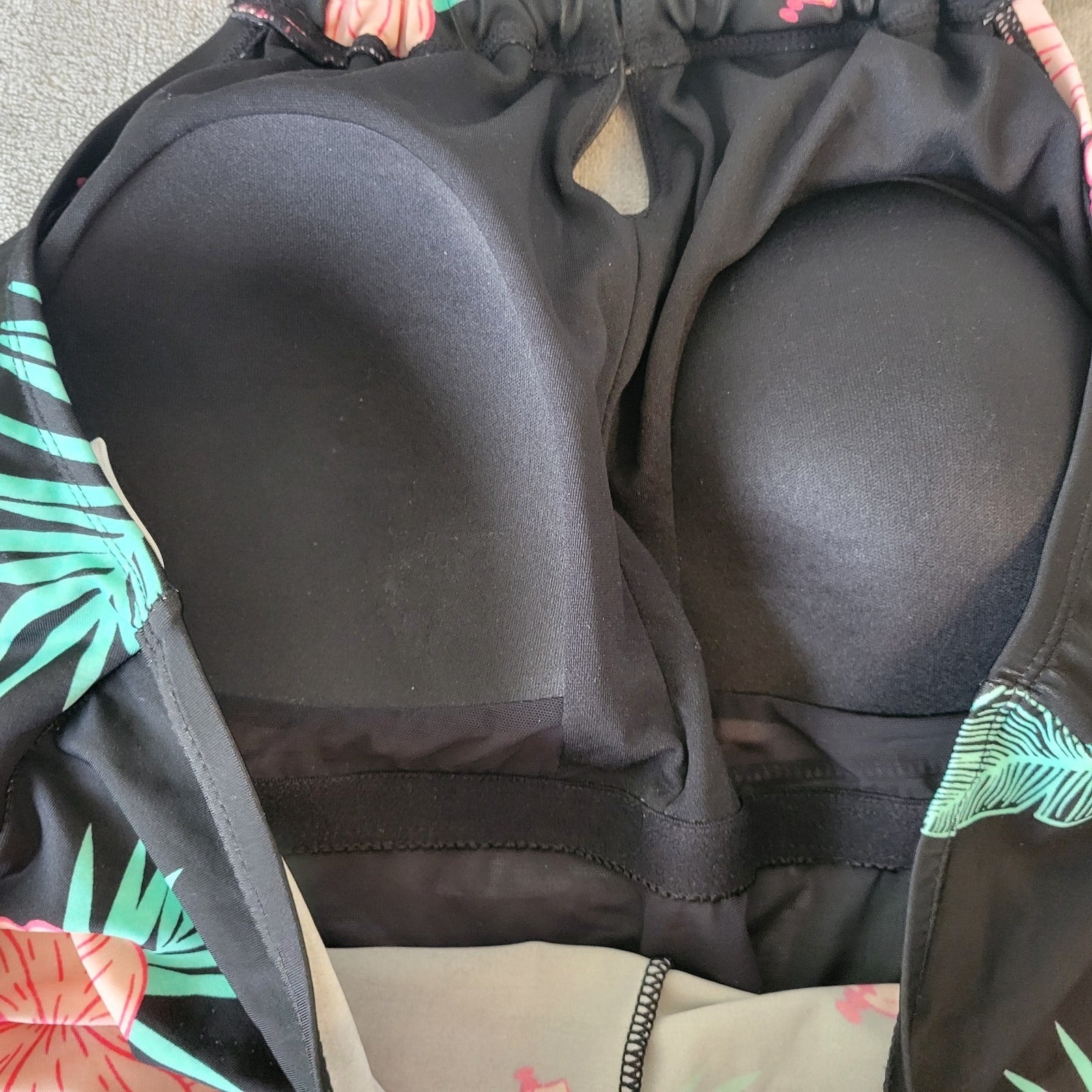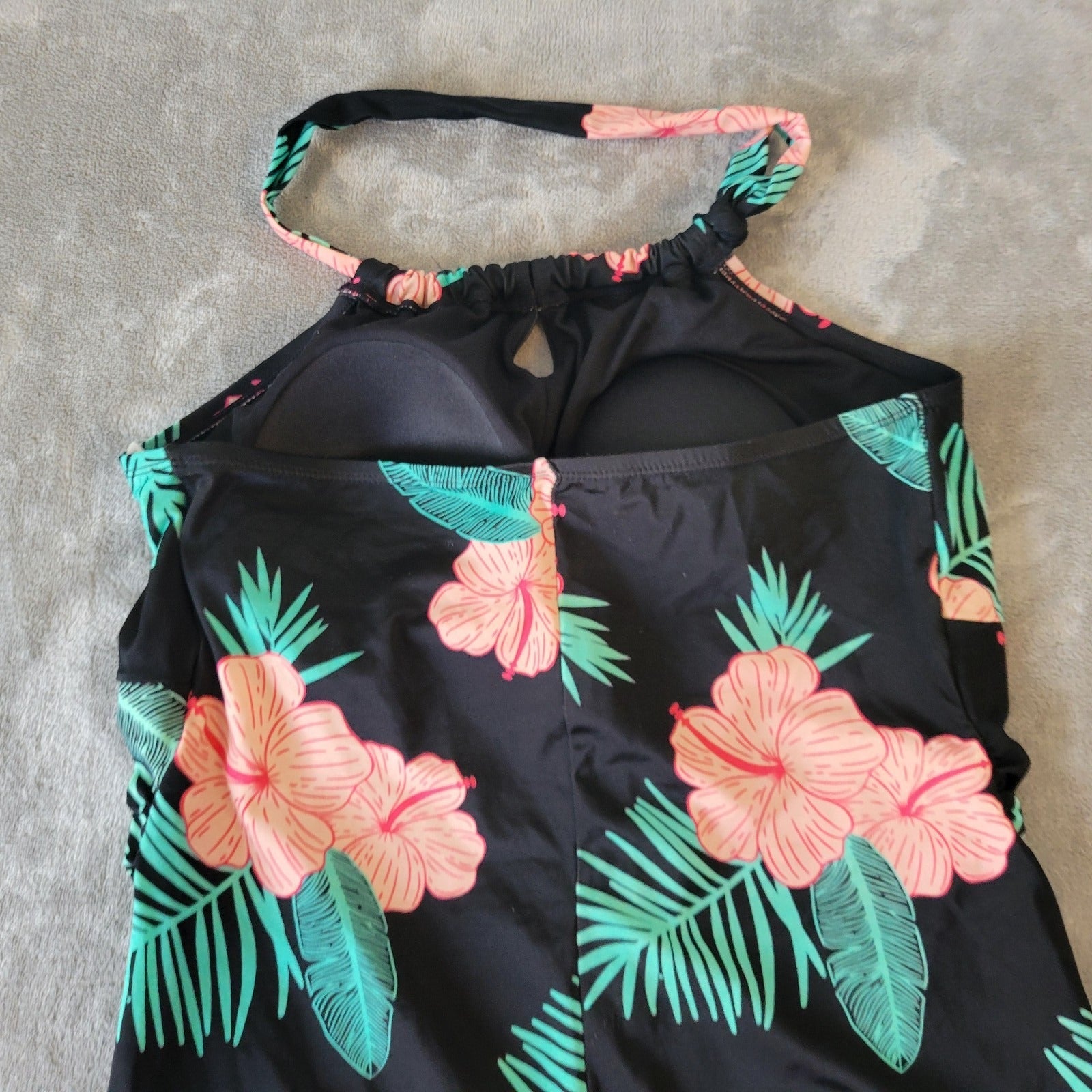 Crane Womens Swimsuit XXL Plus One Piece Halter Keyhole Pink Black Floral Bra