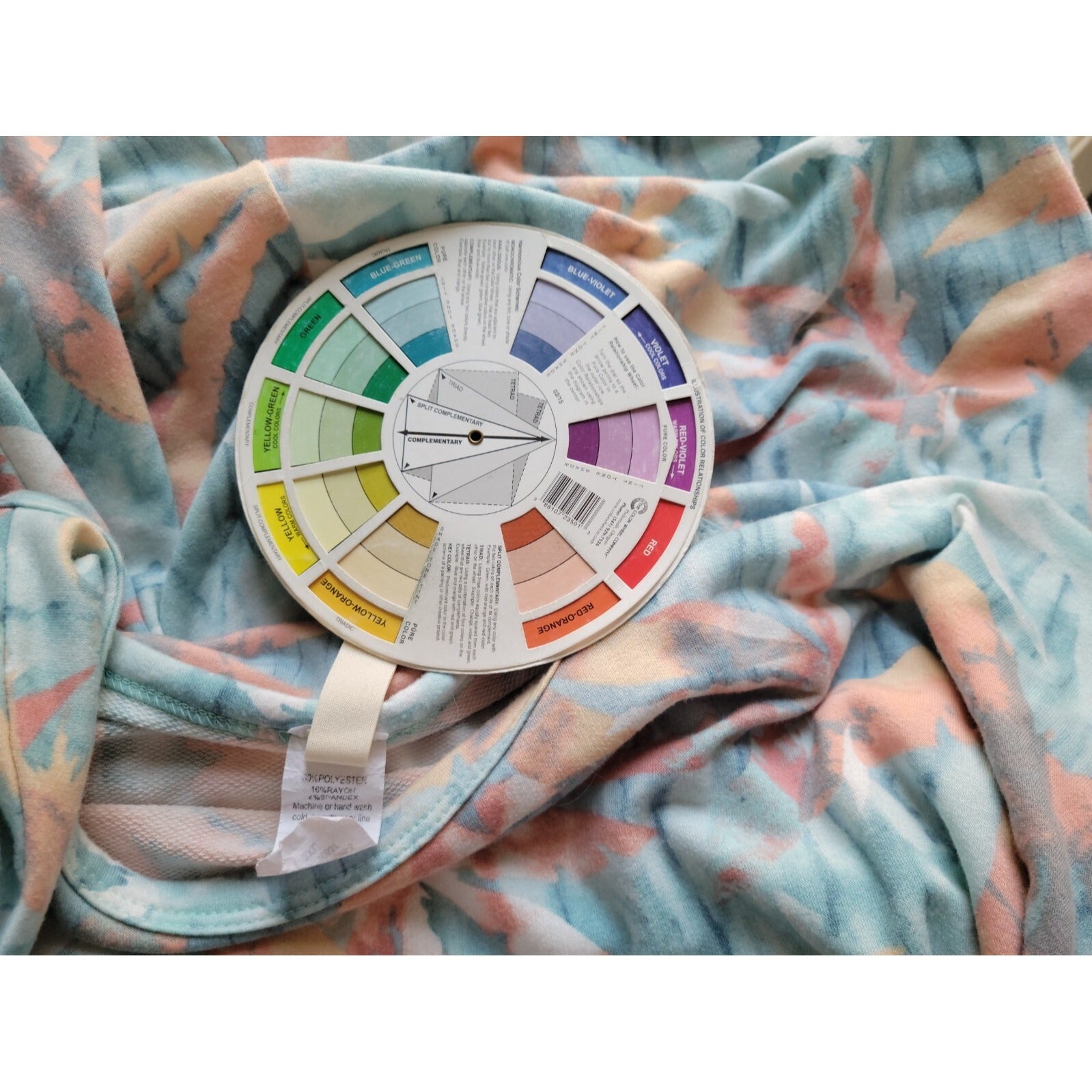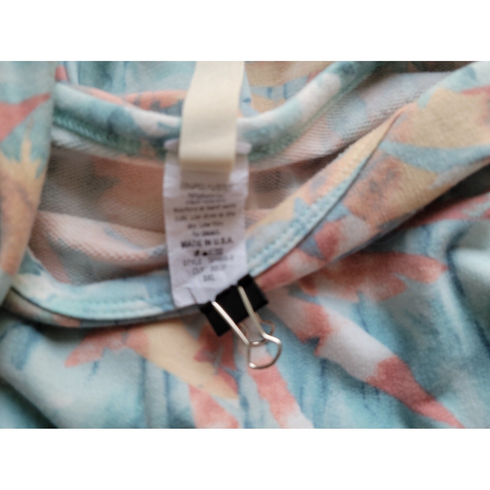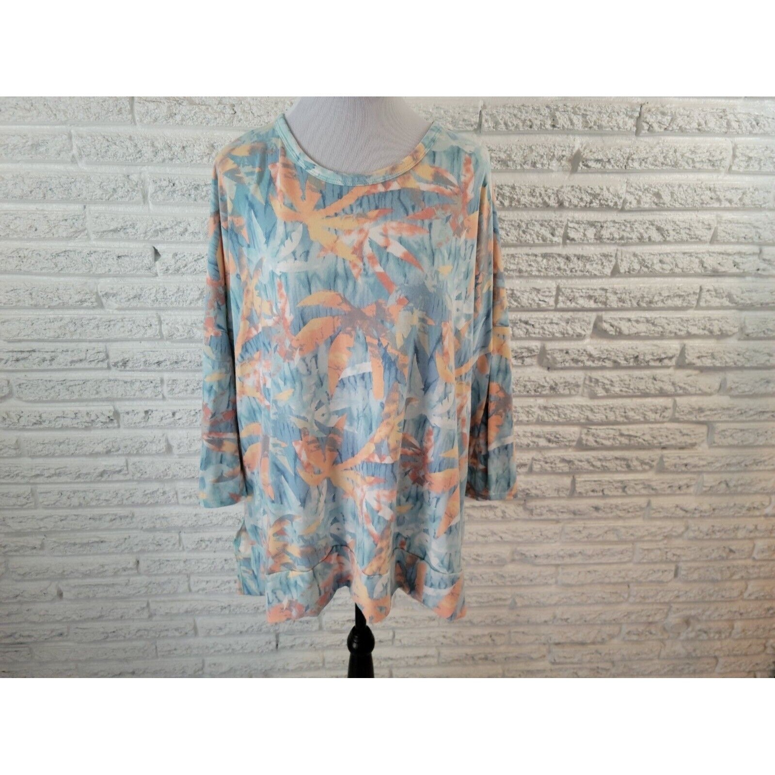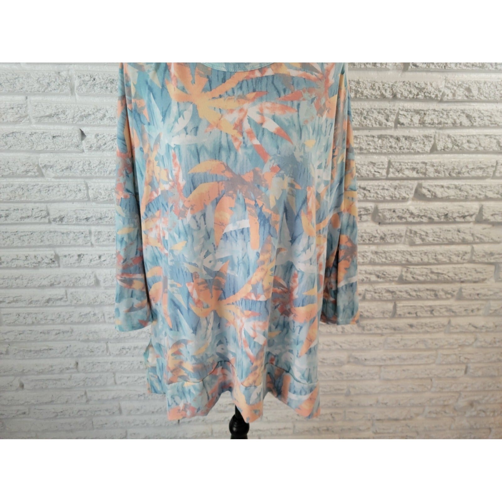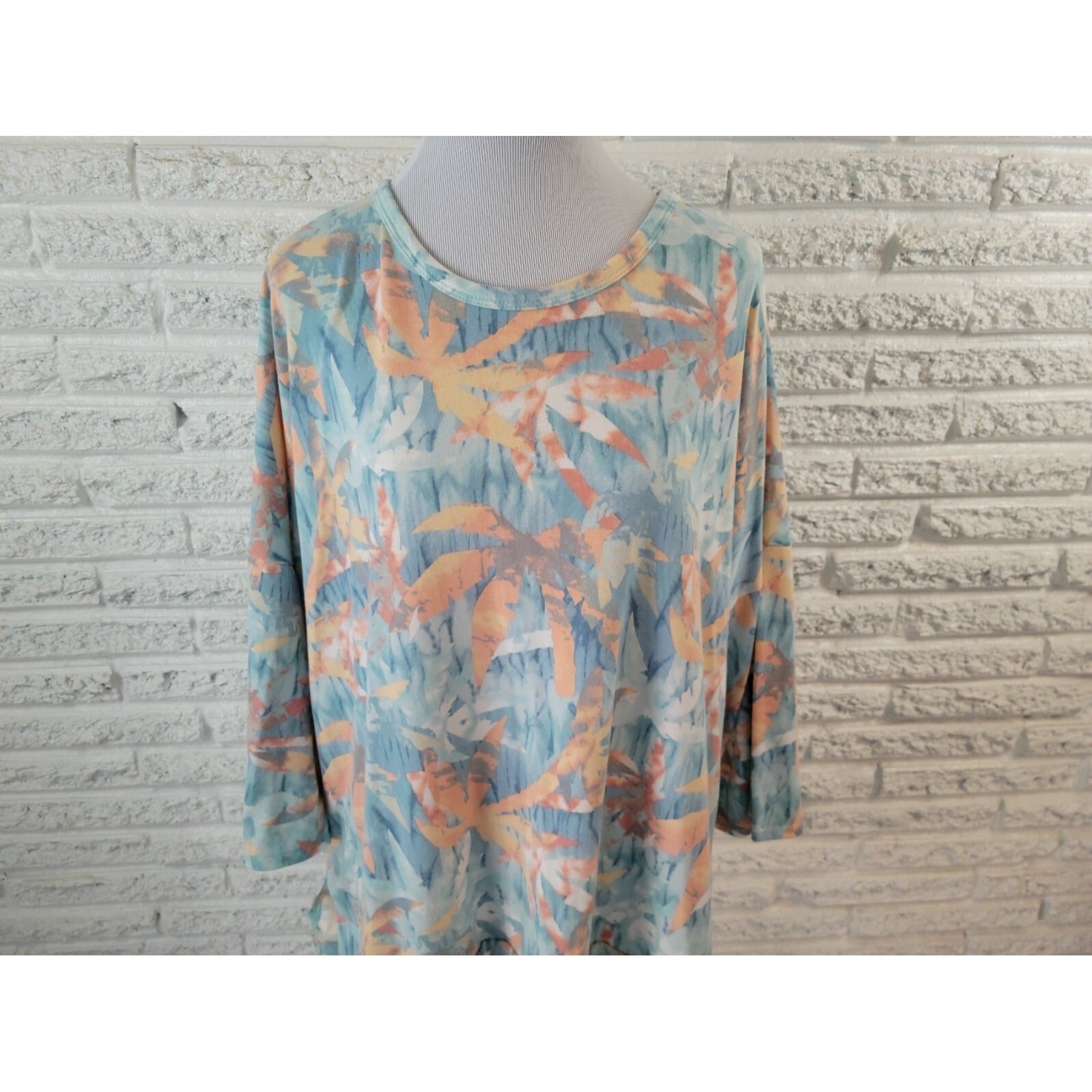 Crepas Women Top 3XL Tunic Long Sleeve Asymmetric Blue Tropical Palm Tree Knit