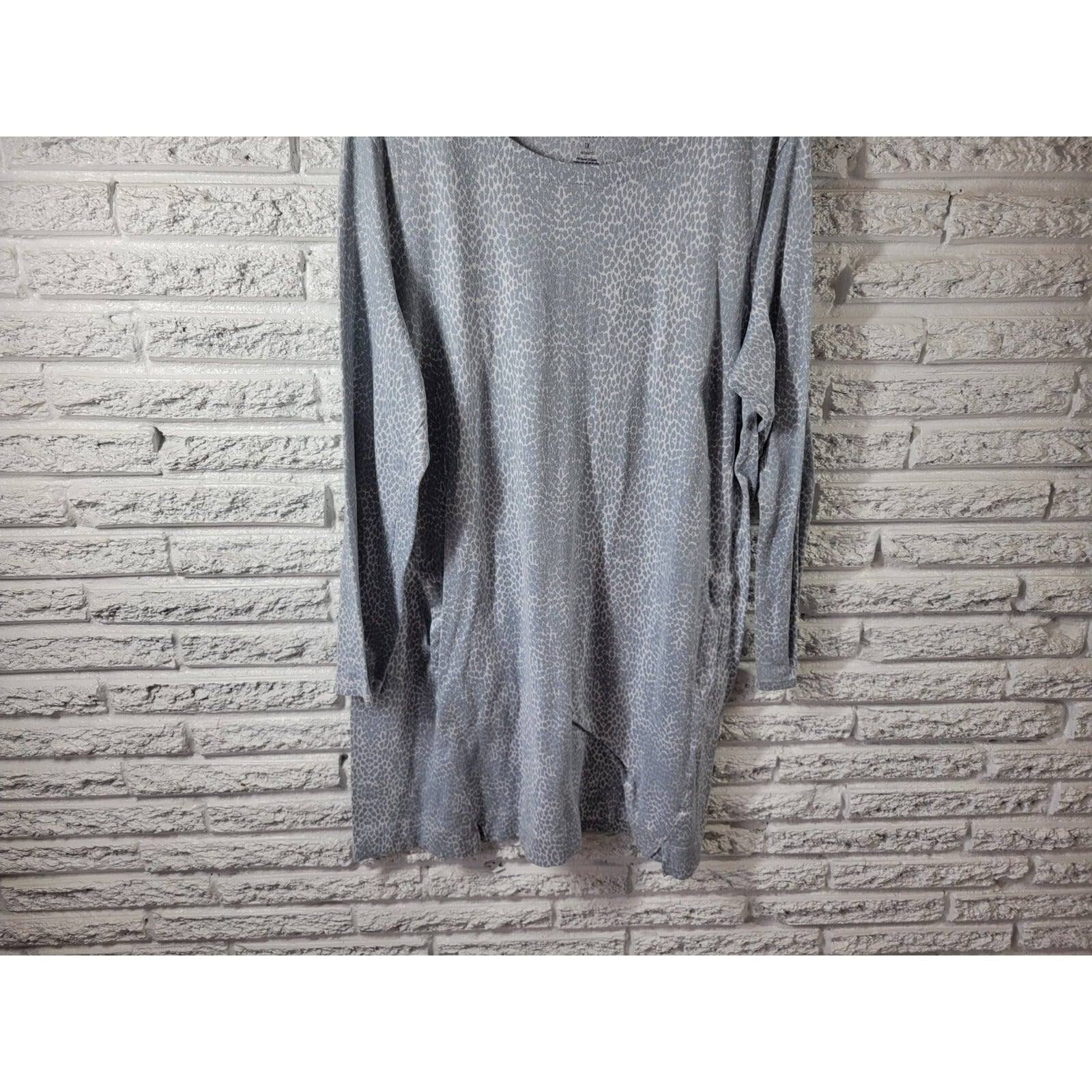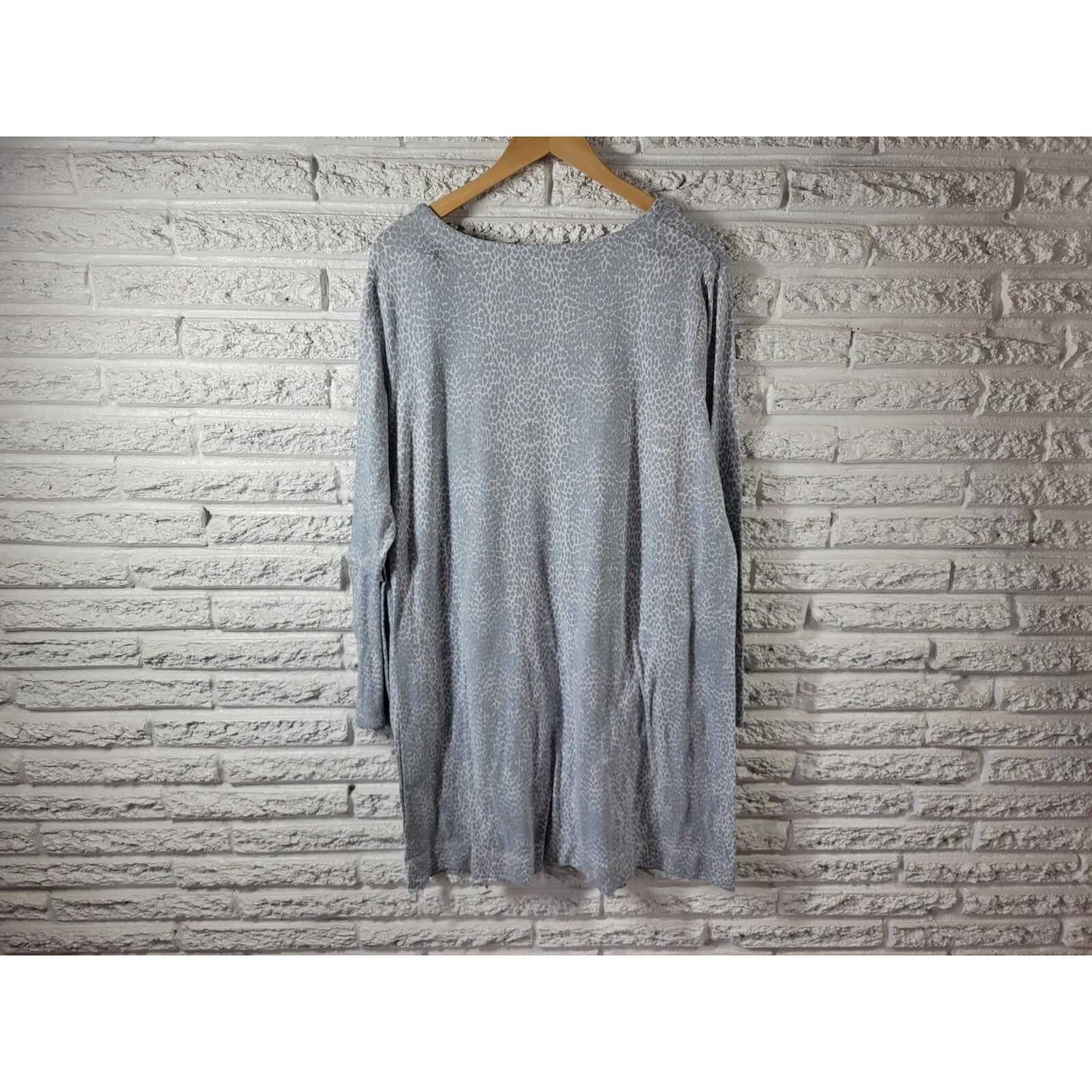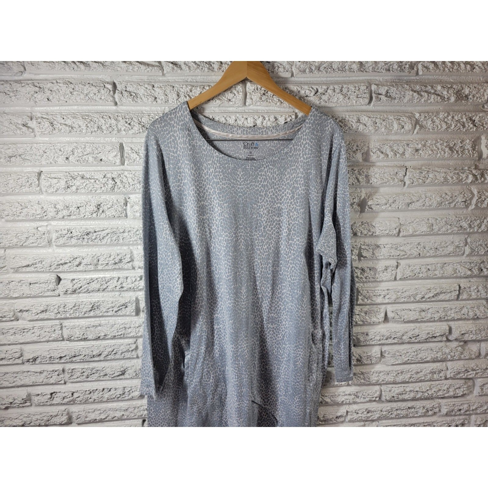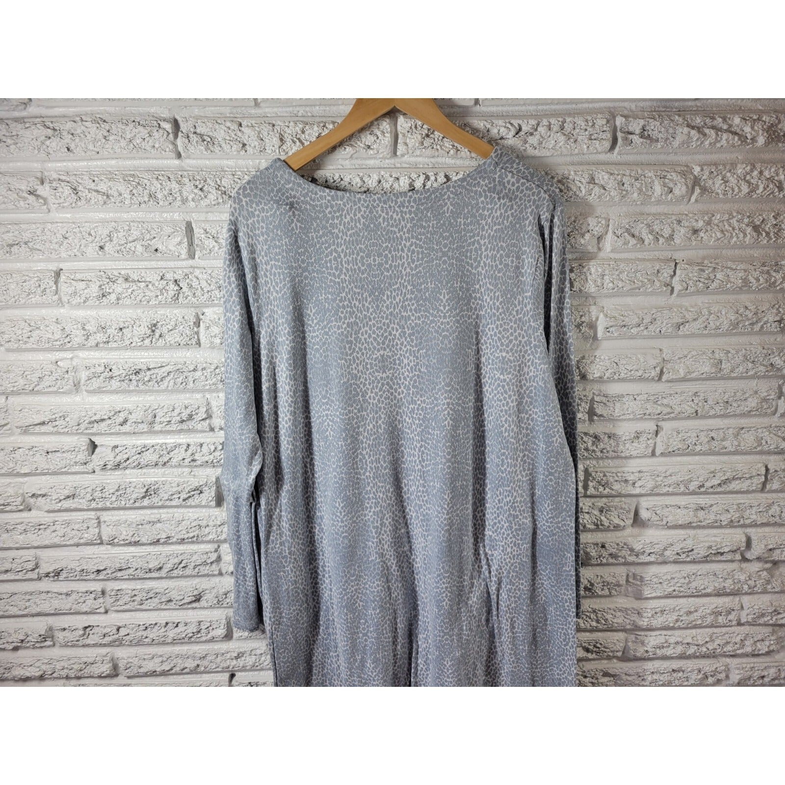 Croft Barrow Women Nightgown 1X Plus Long Sleeve Gray Animal Print Poly Blend