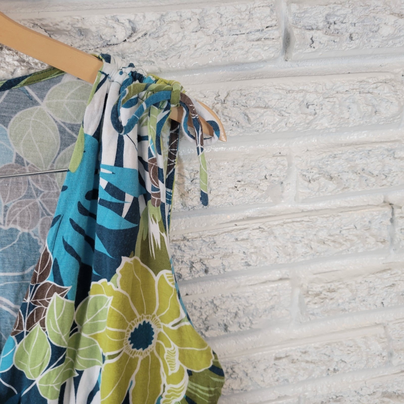 Croft Barrow Womens Dress PXL Mini Sheath Sleeveless Blue Green Floral Ties