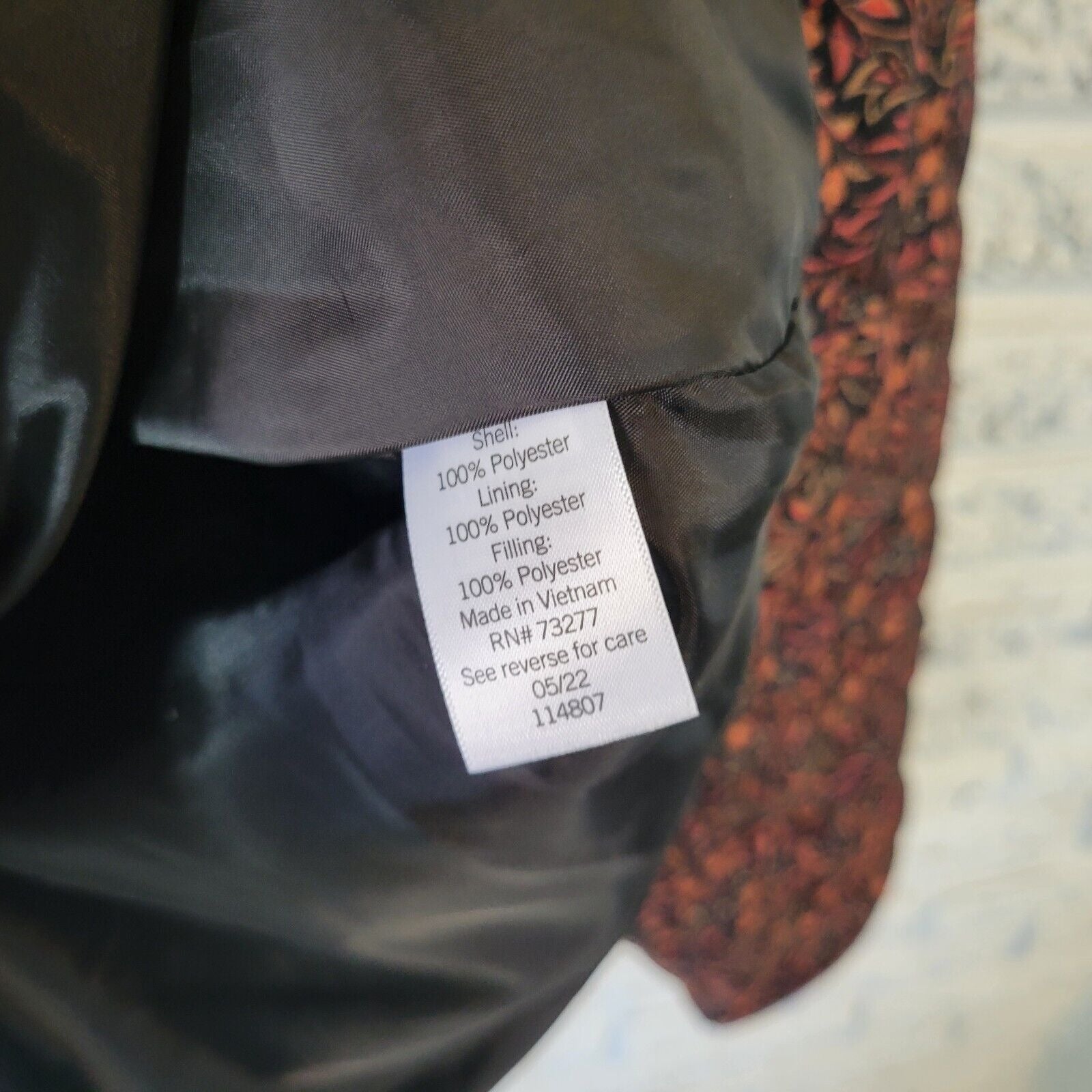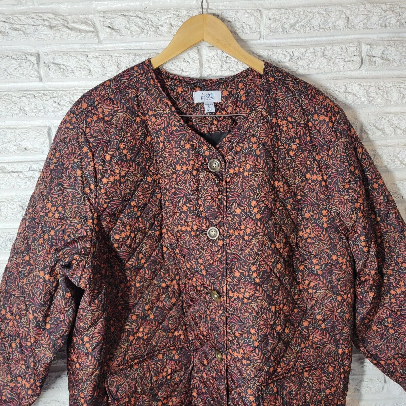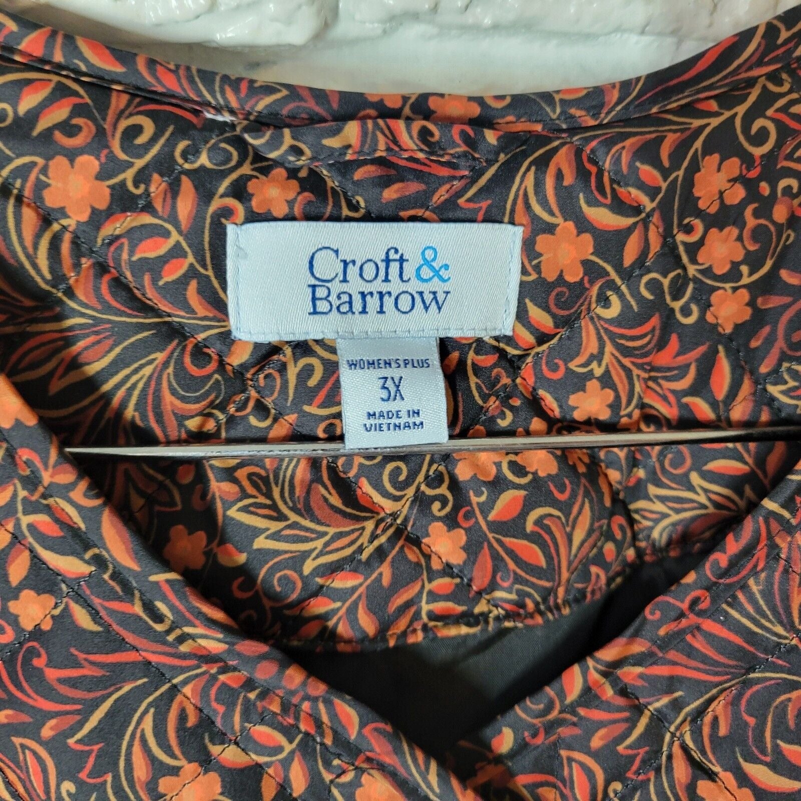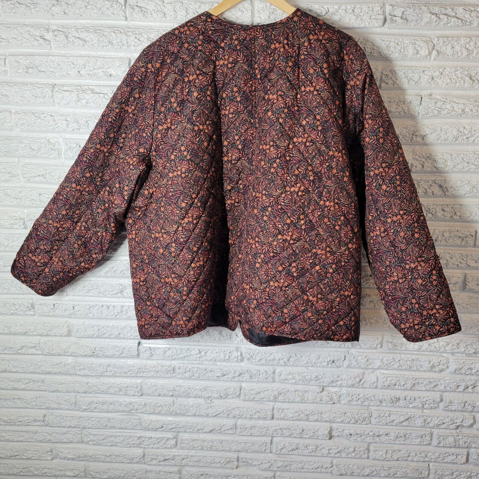 Croft Barrow Womens Jacket 3X Plus Quilted Orange Black Floral Pockets Lined