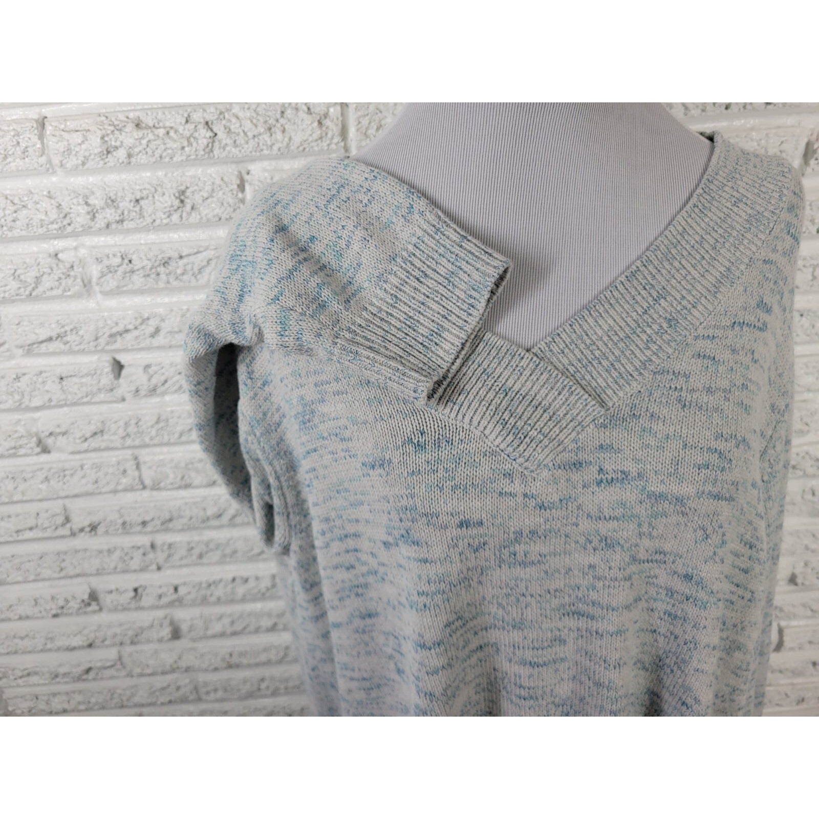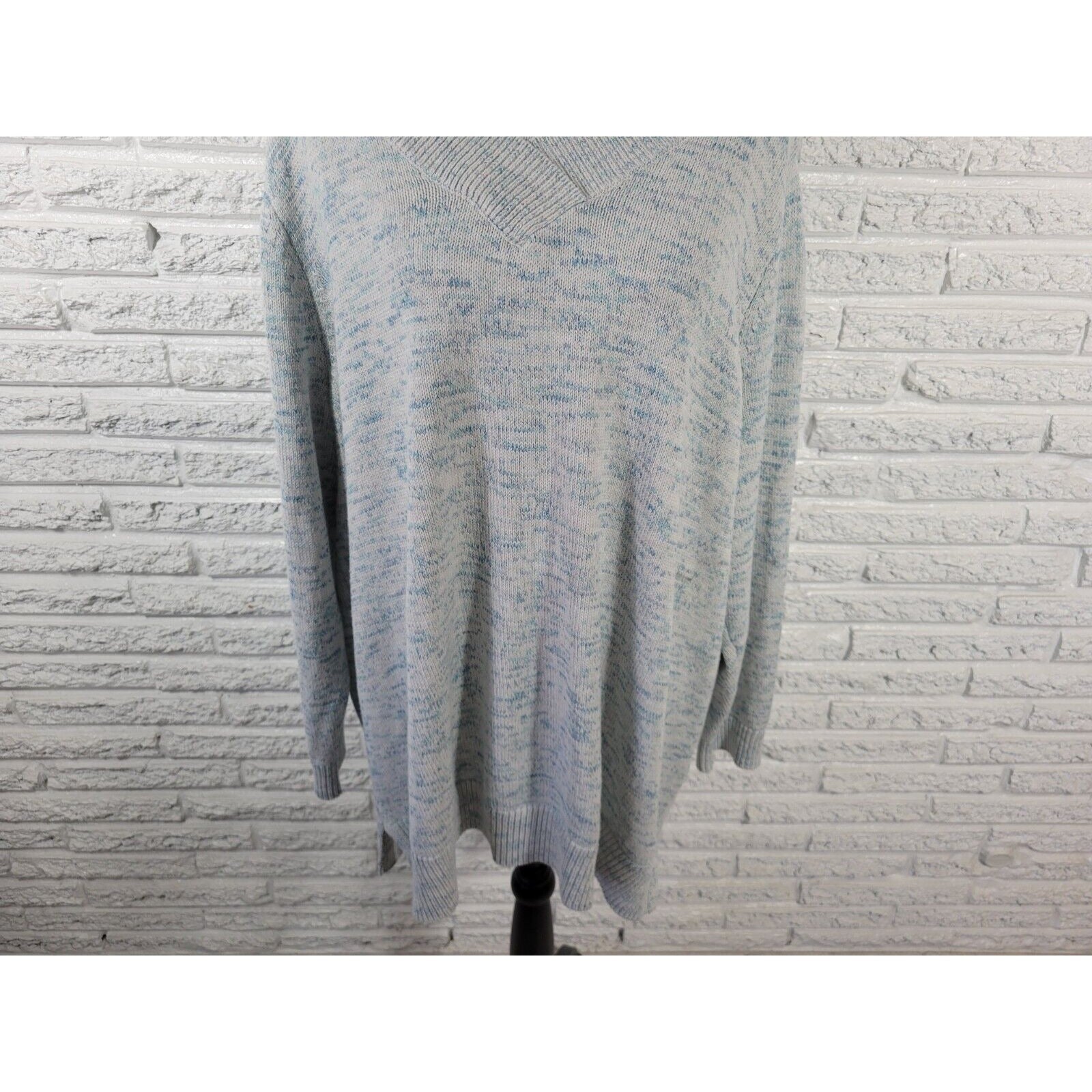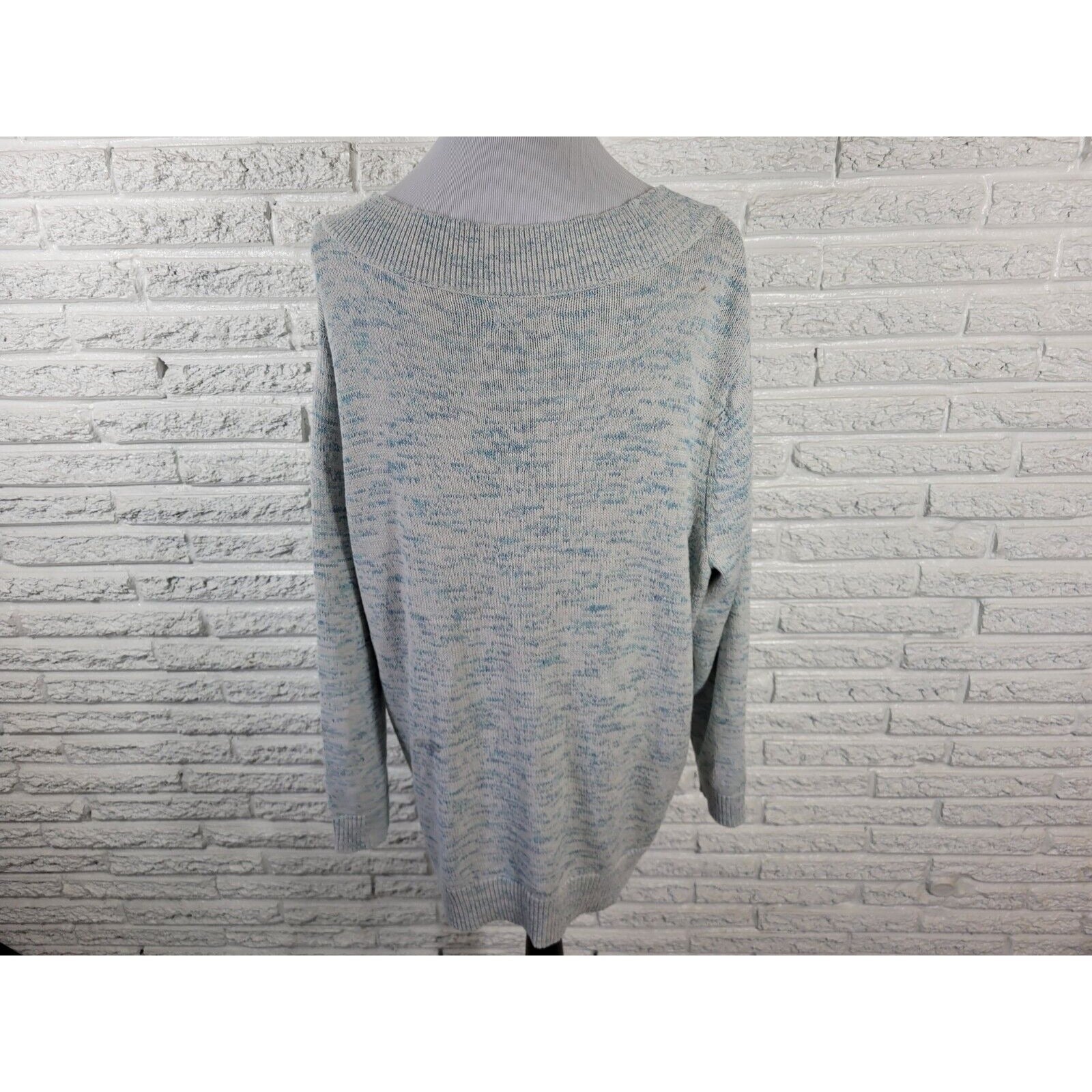Croft Barrow Womens Sweater 3X Plus Long Sleeve Blue Marled Speckle Cotton Blend