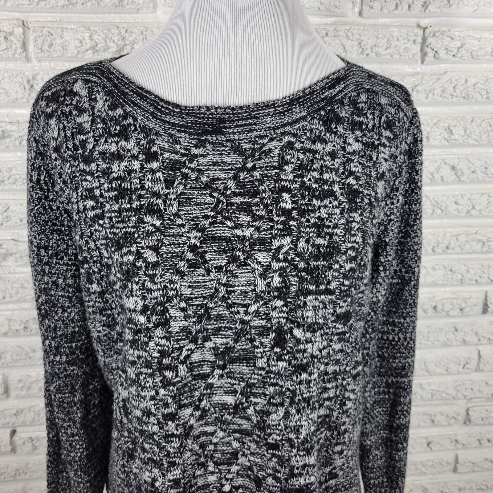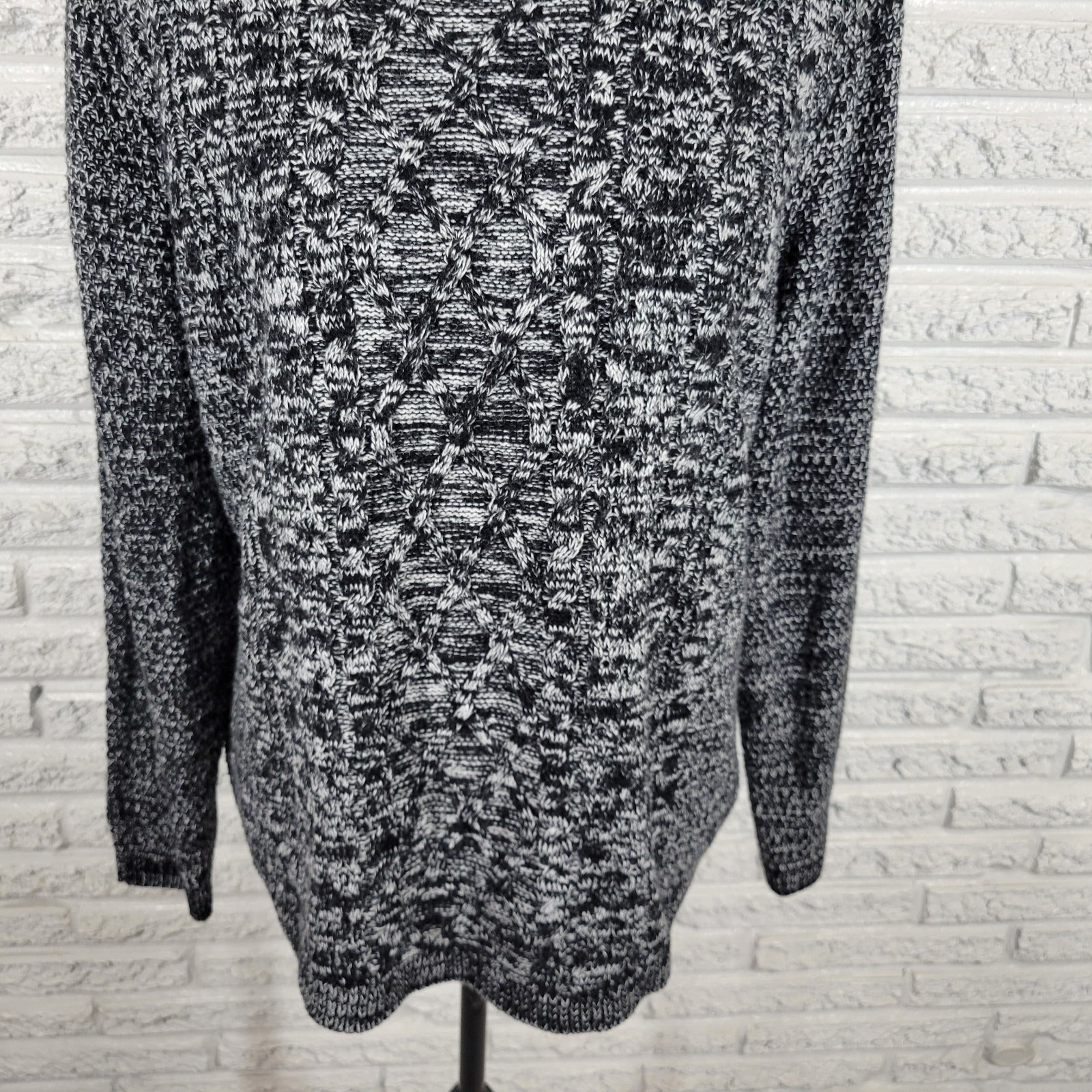 Croft Barrow Womens Sweater Extra Large Black Cable Knit Marled Speckle Acrylic