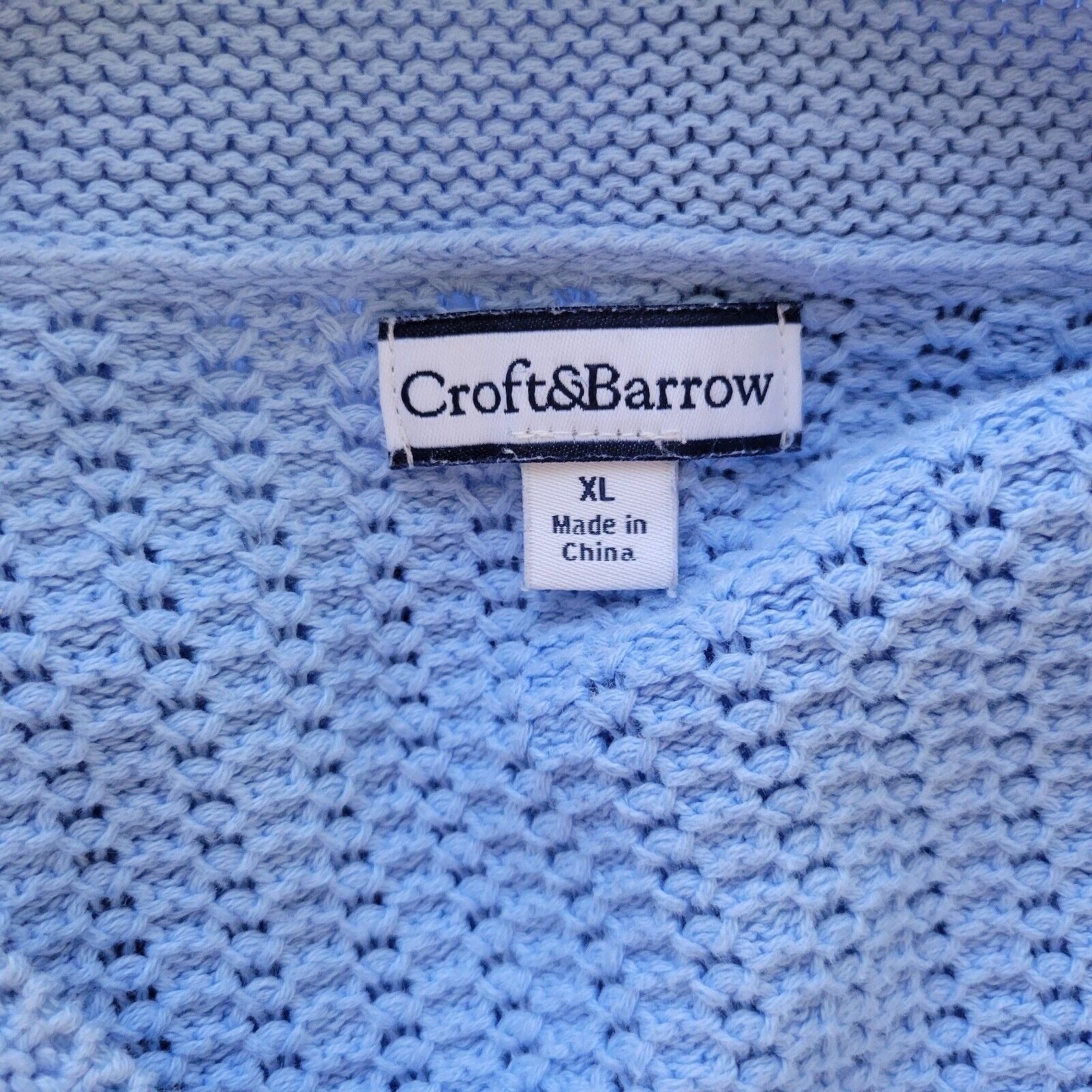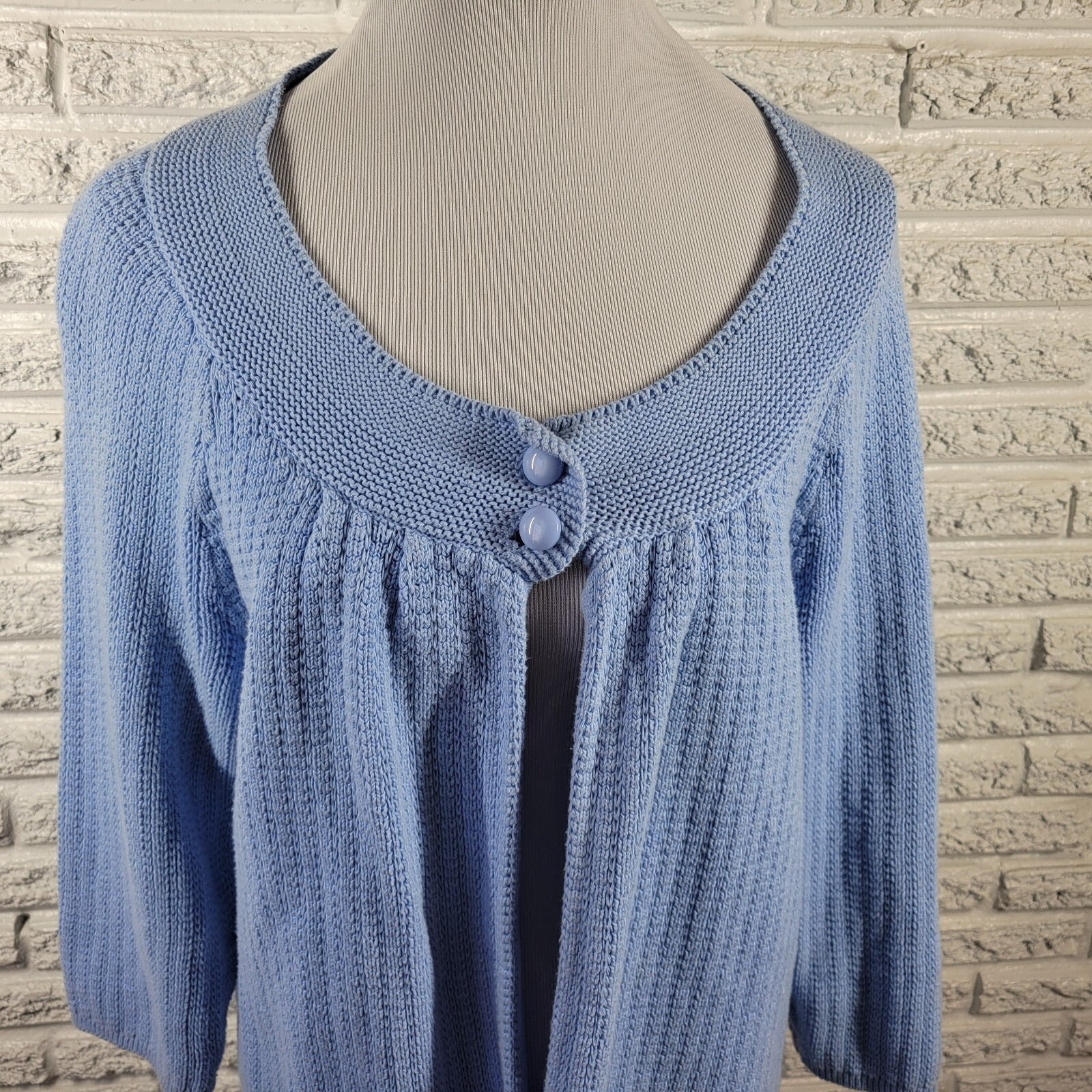 Wrap yourself in the comfort of this timeless Croft & Barrow women's sweater, a versatile addition to your wardrobe that's perfect for any casual, business, or travel occasion. The serene blue hue complements a variety of outfits, while the 100% cotton material ensures breathability and ease of care, being machine washable.  This cardigan features a classic round neck and 3/4 sleeves, ideal for transitioning through seasons from spring to winter. The tight-knit fabric offers a soft touch with just the right amount of stretch, ensuring a flattering fit for the regular size XL. Whether you're looking for a layer to keep you warm or a lighter touch for cooler evenings, this sweater's two-button design and faux pockets add both style and functionality to your ensemble.