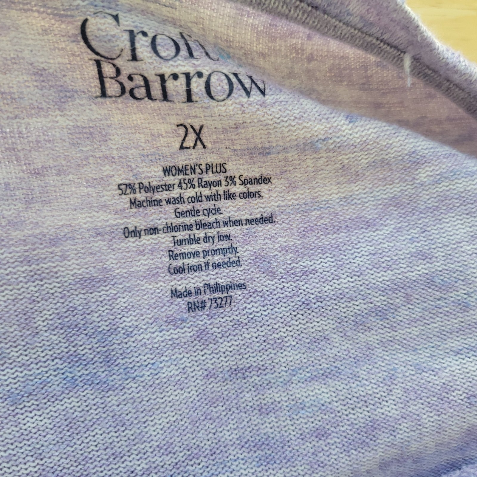 The Croft & Barrow Women's Sweatshirt in size 2X Plus is a purple heather front tie sweatshirt made from a comfortable and lightweight polyester blend material. It features long casual sleeves, a crew neckline, and a pullover closure for easy wear. This sweatshirt is suitable for various occasions such as travel, activewear, and casual outings. With a regular fit and stretchy fabric, it provides comfort and flexibility for all seasons including winter, summer, fall, and spring. This stylish and versatile sweatshirt by Croft & Barrow is a must-have for any woman's wardrobe.
