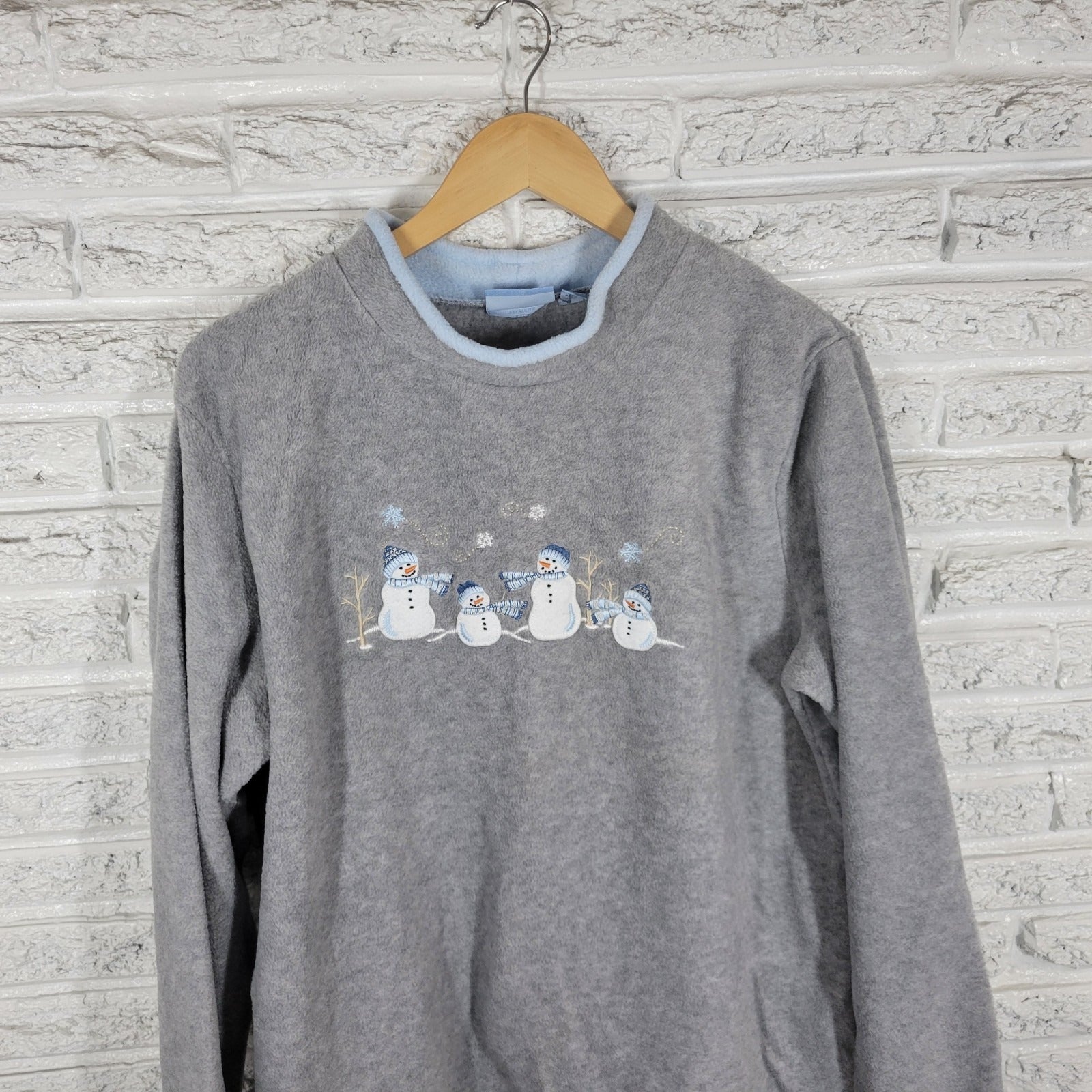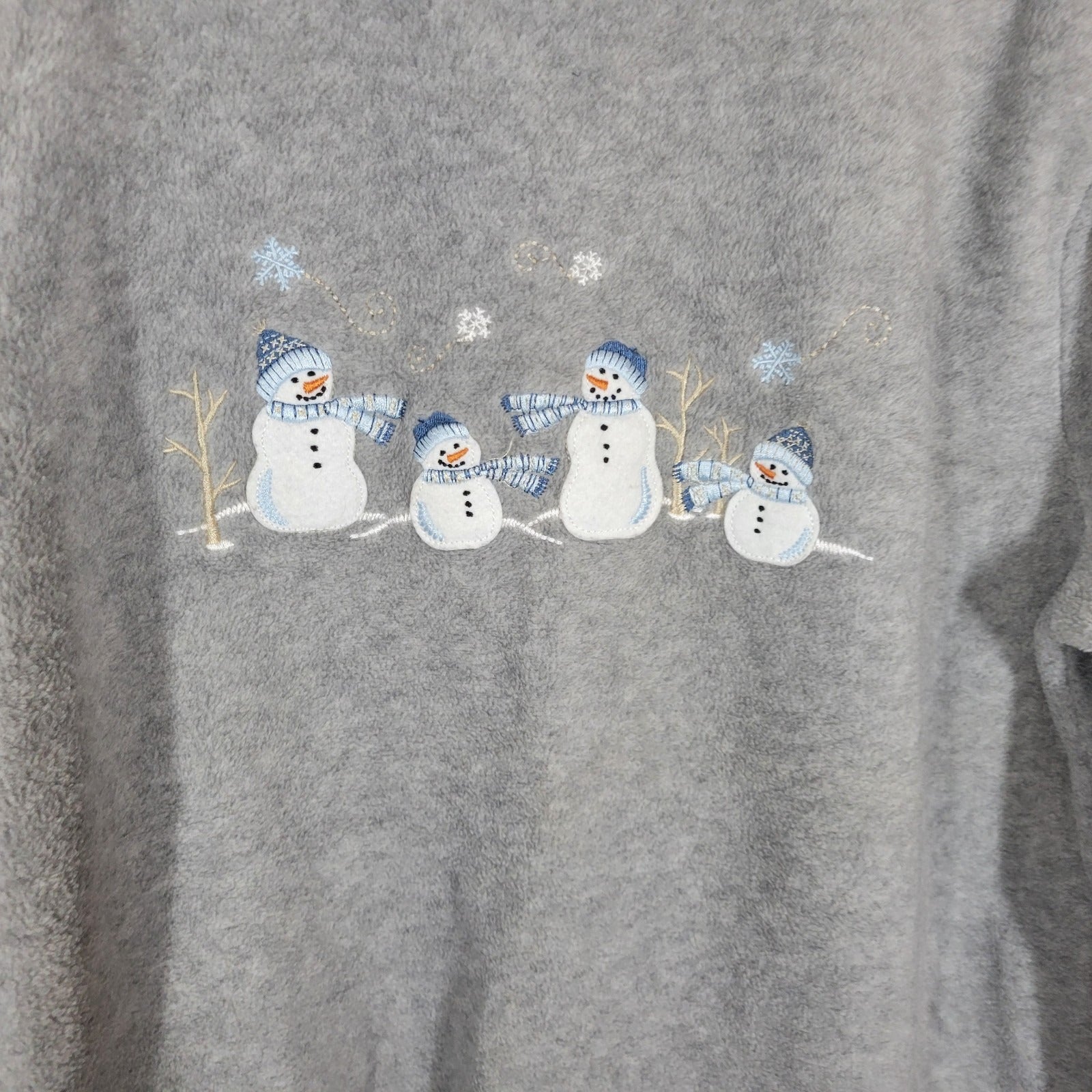 Croft Barrow Womens Sweatshirt XL Gray Fleece Snowman Soft Embroidered Winter