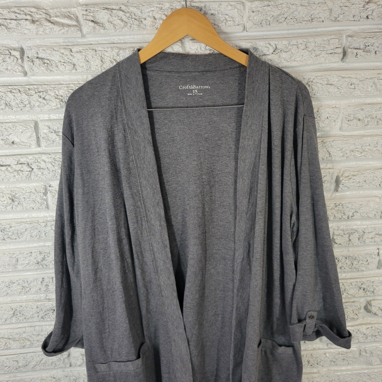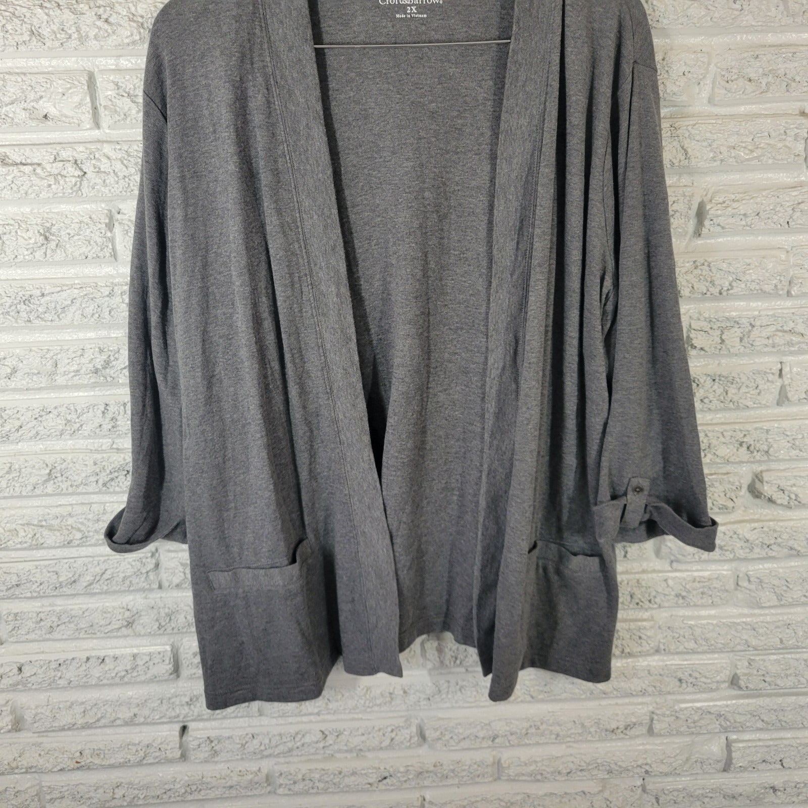 Croft Barrow Womens Top 2X Plus Cardigan Open Gray Cuffed 3/4 Sleeve Pockets