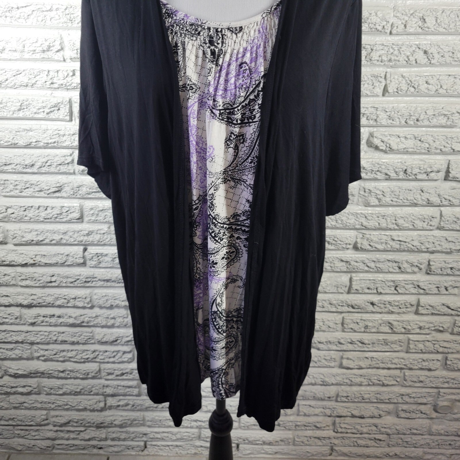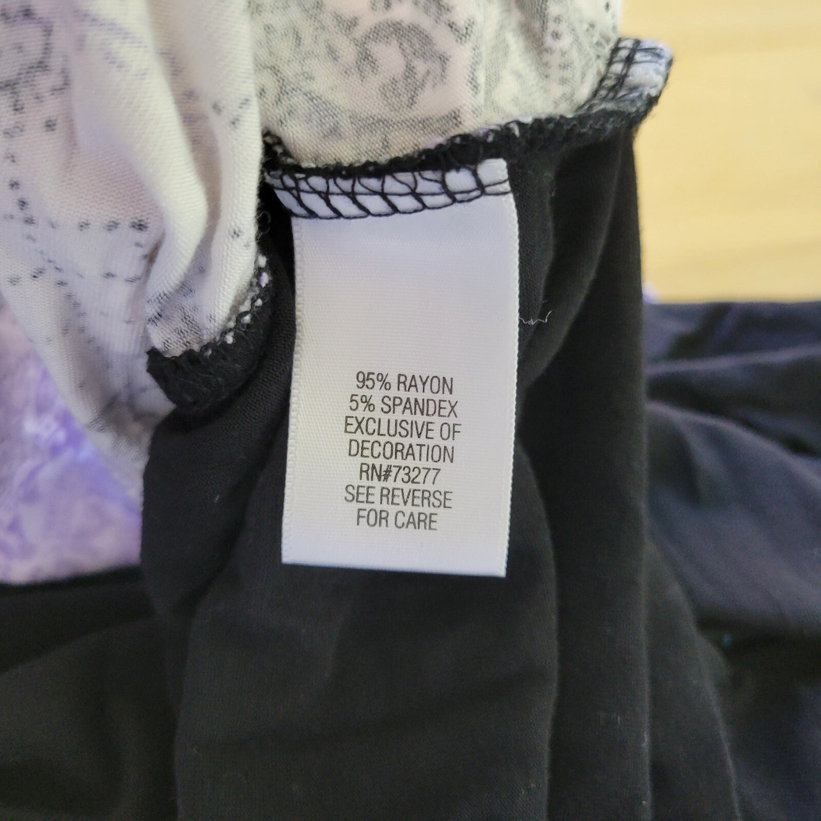 Croft Barrow Womens Top 2X Plus Short Sleeve Purple Black Paisley Casual Cinched