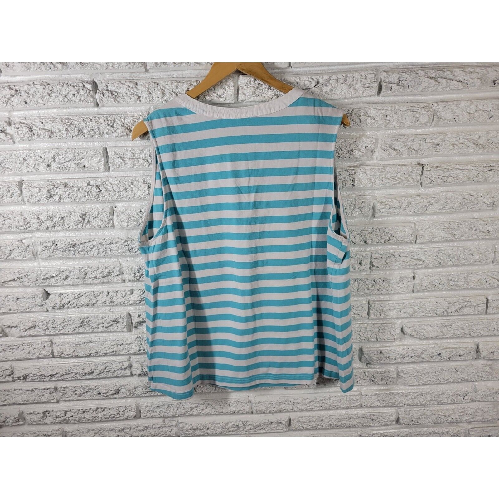 Croft Barrow Womens Top 2X Plus Sleeveless Blue Stripe Pockets Quarter Button