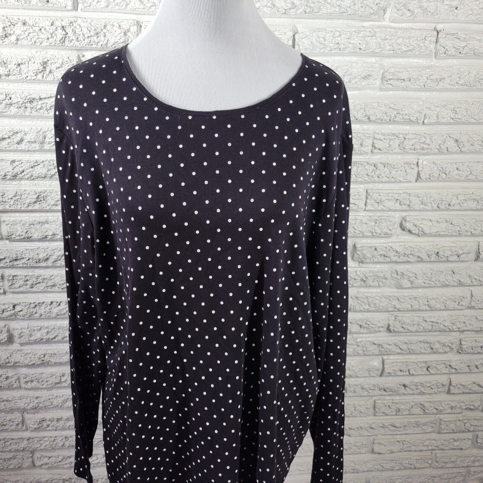 Croft Barrow Womens Top 2X Plus Tee Long Sleeve Black Polka Dot Cotton Comfy
