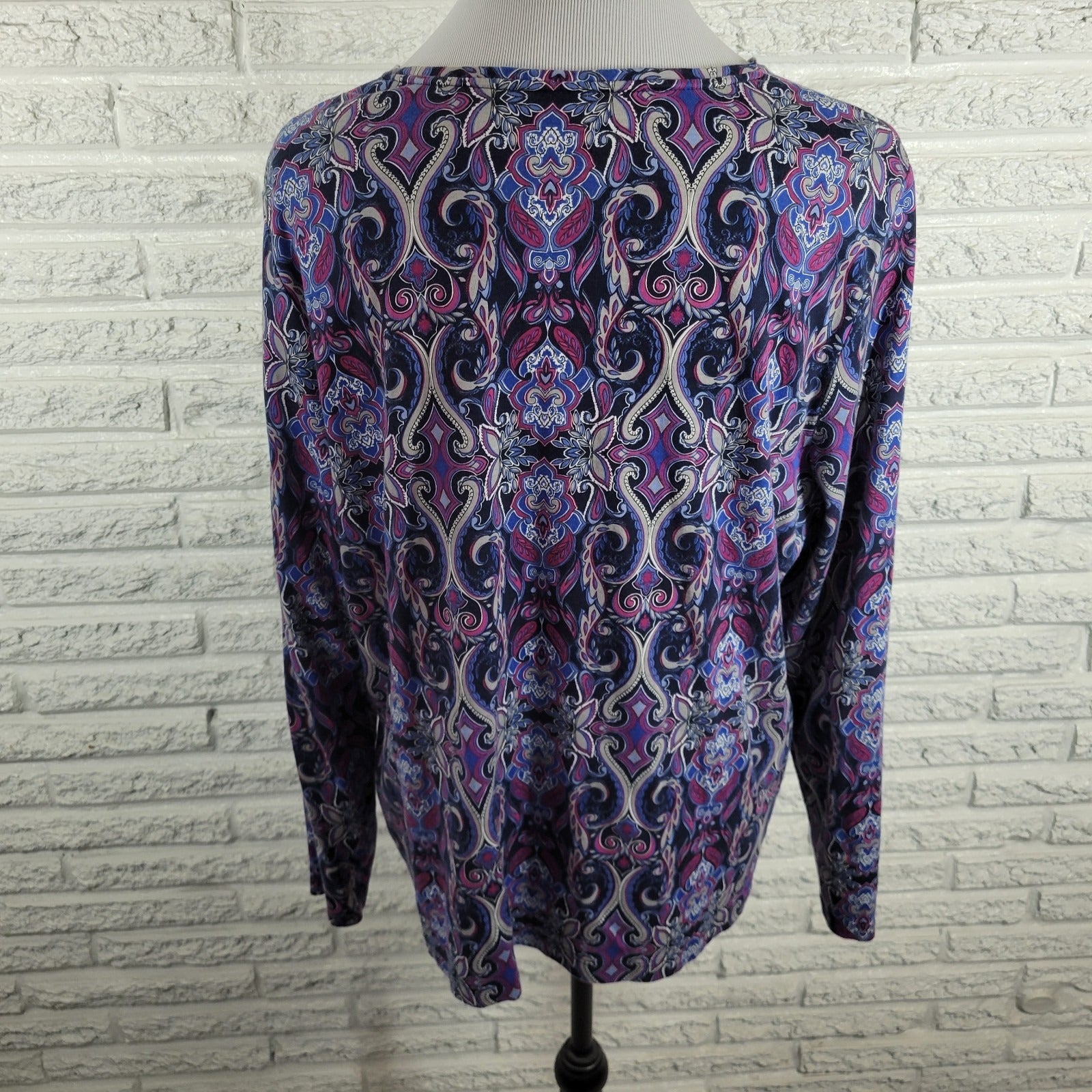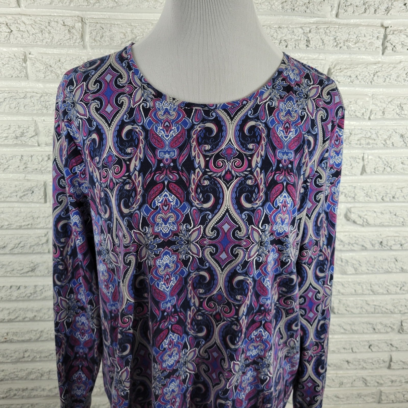 Croft Barrow Womens Top 2X Tee Long Sleeve Purple Geometric Cotton Comfy Casual