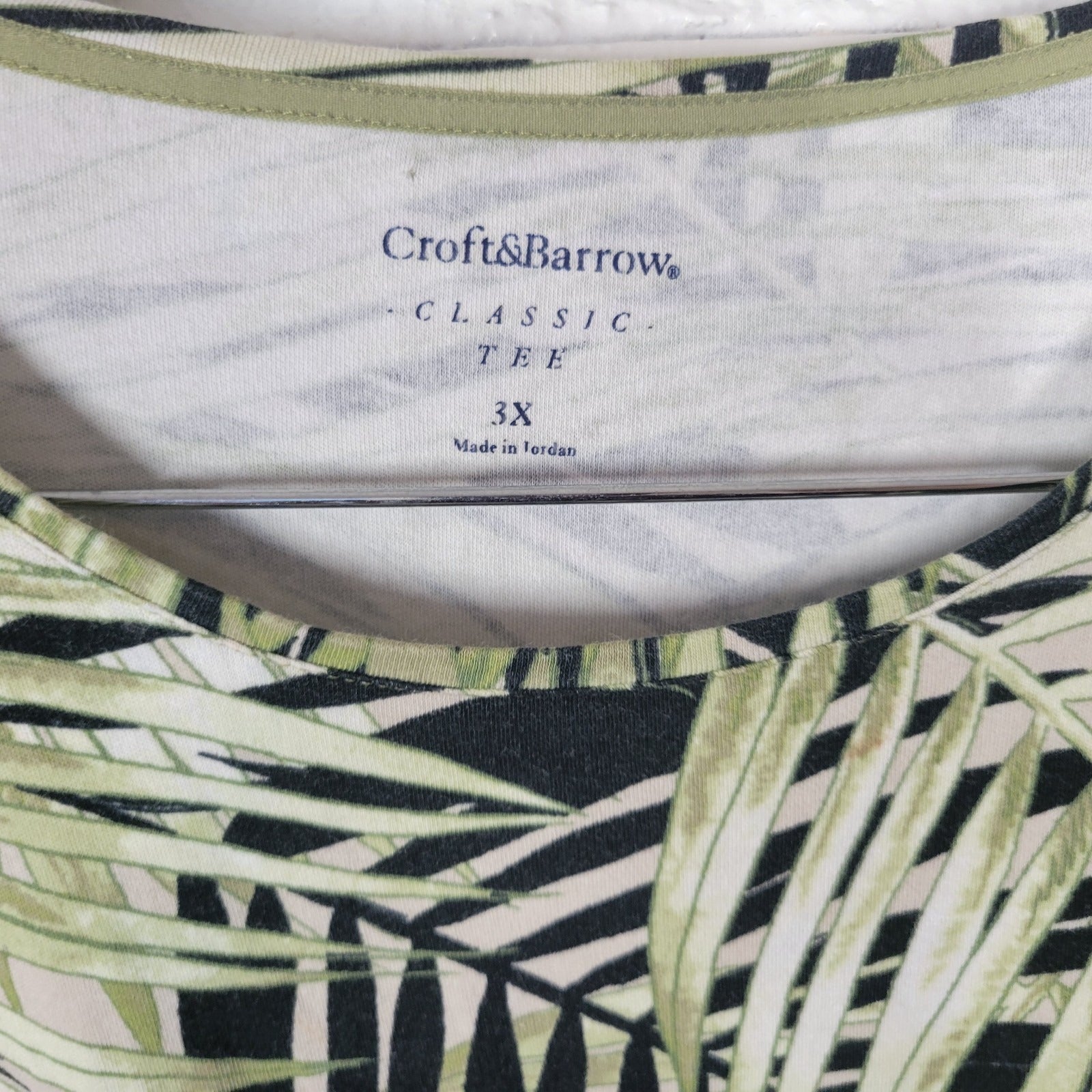 Croft Barrow WomenS Top 3X Plus Tee Short Sleeves Green Leaves Cotton Comfy