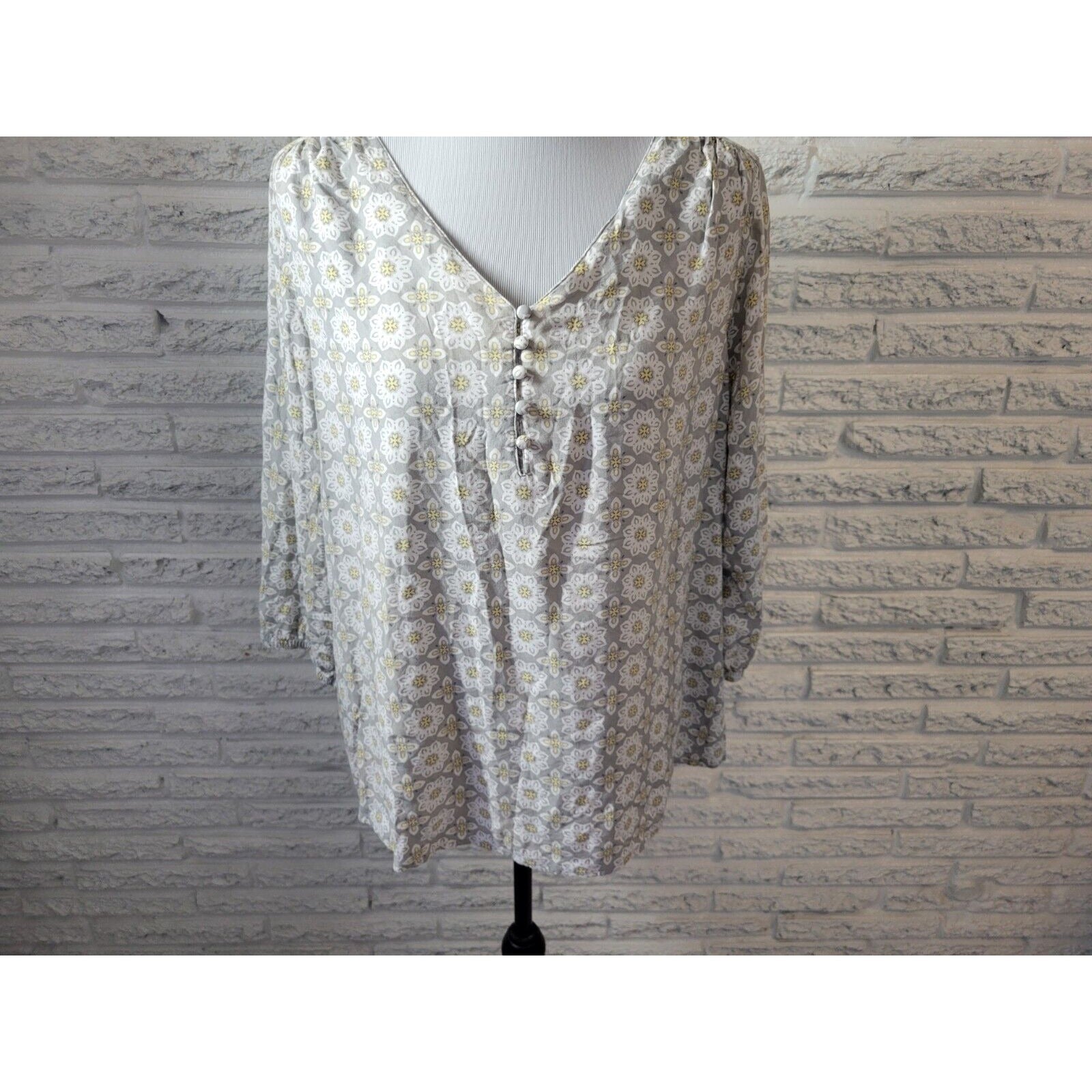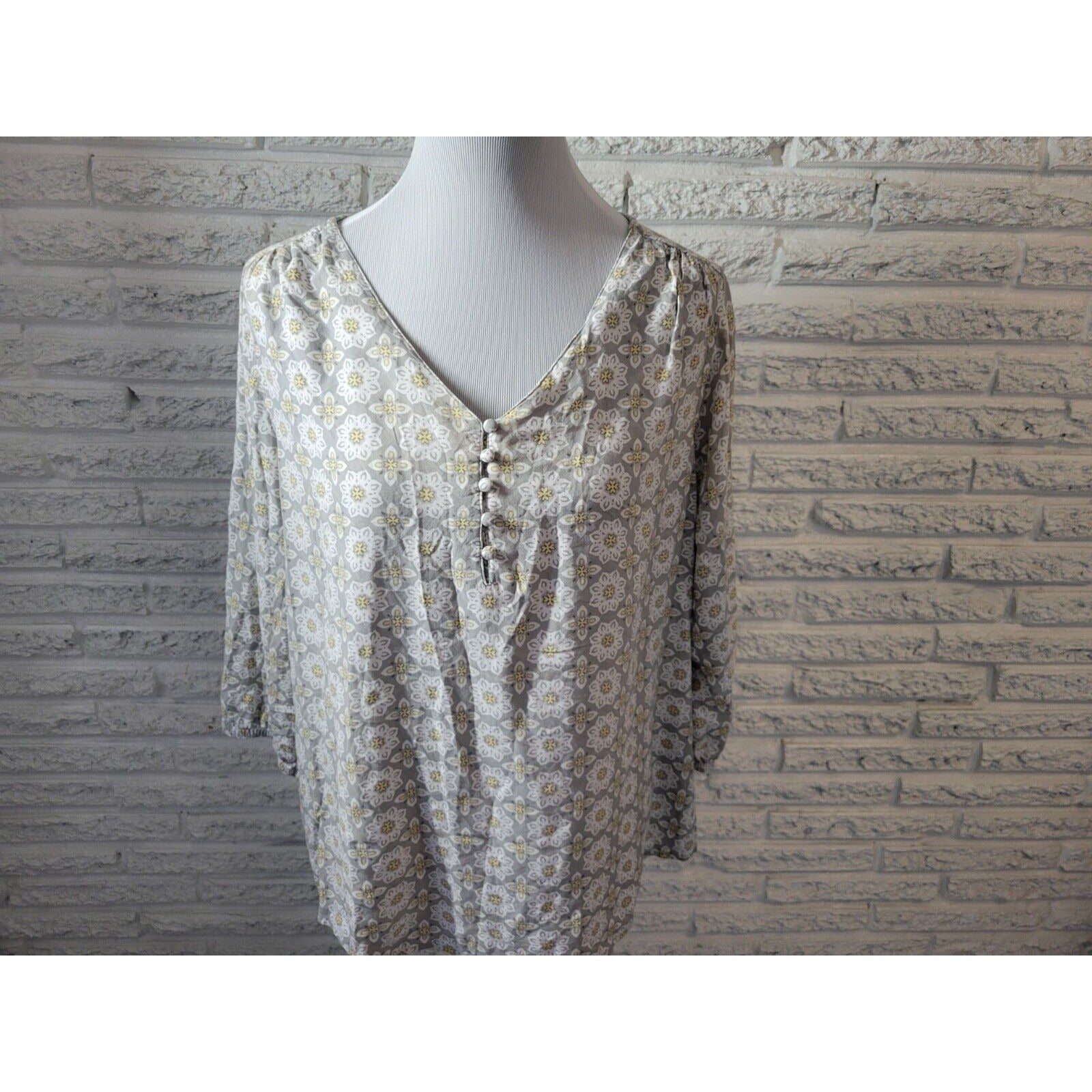 Croft Barrow Womens Top Extra Large 3/4 Sleeve Quarter Button Gray Floral