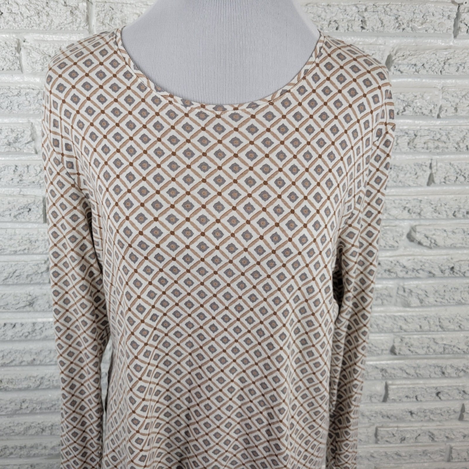 Croft Barrow Womens Top Extra Large XL Tee Long Sleeve Gray Tan Geometric Cotton