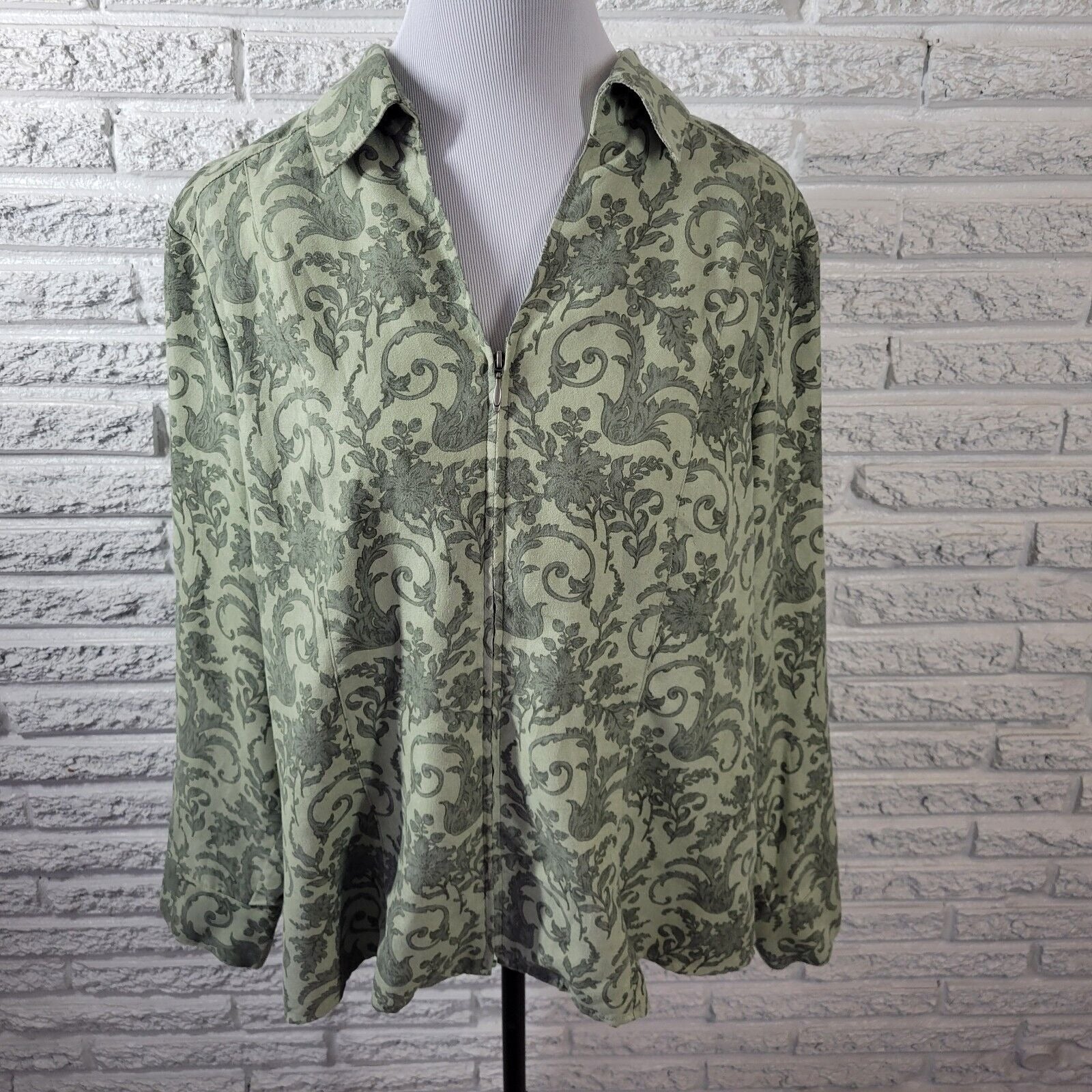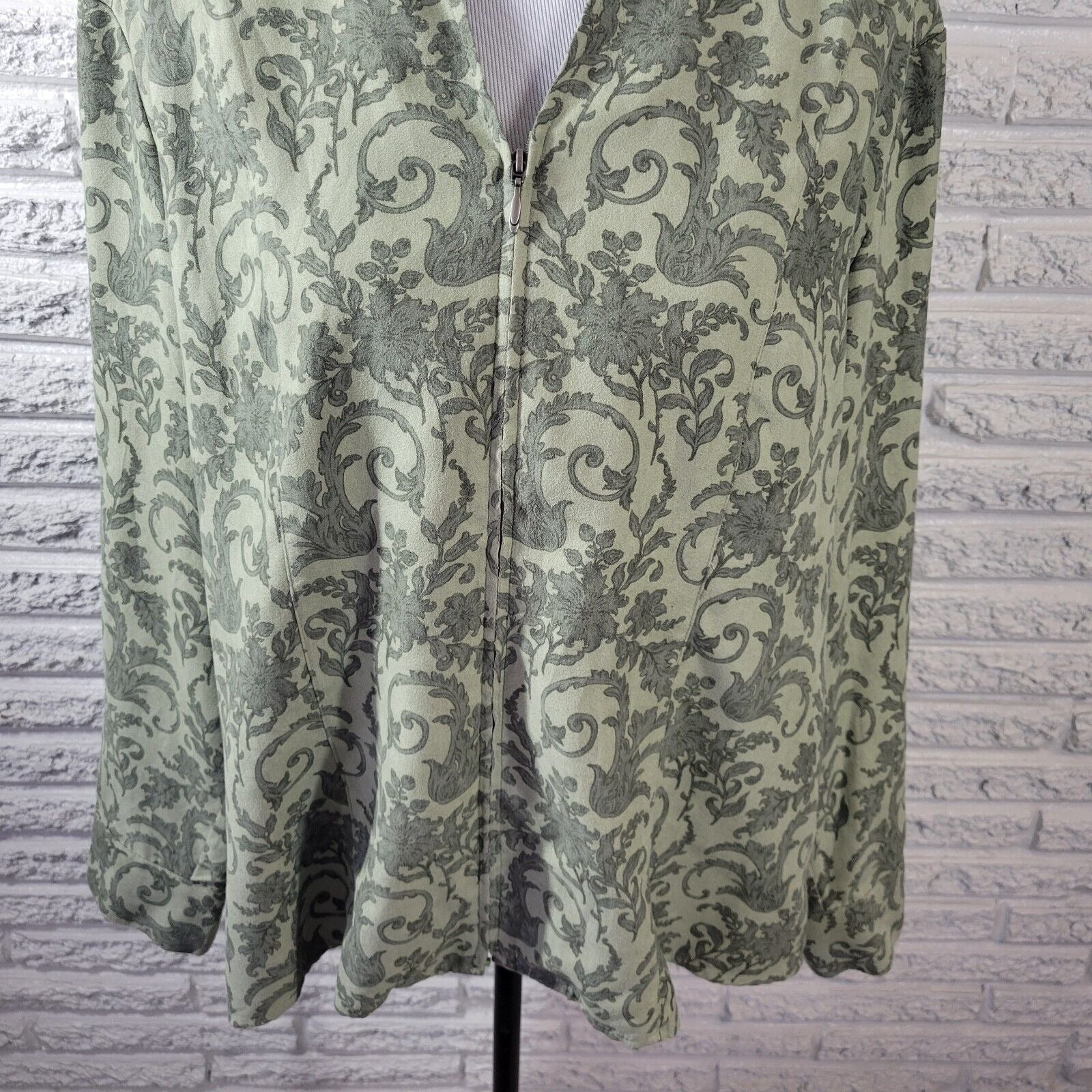 Croft Barrow Womens Top XXL Full Zip Jacket Lightweight Soft Velour Green Floral