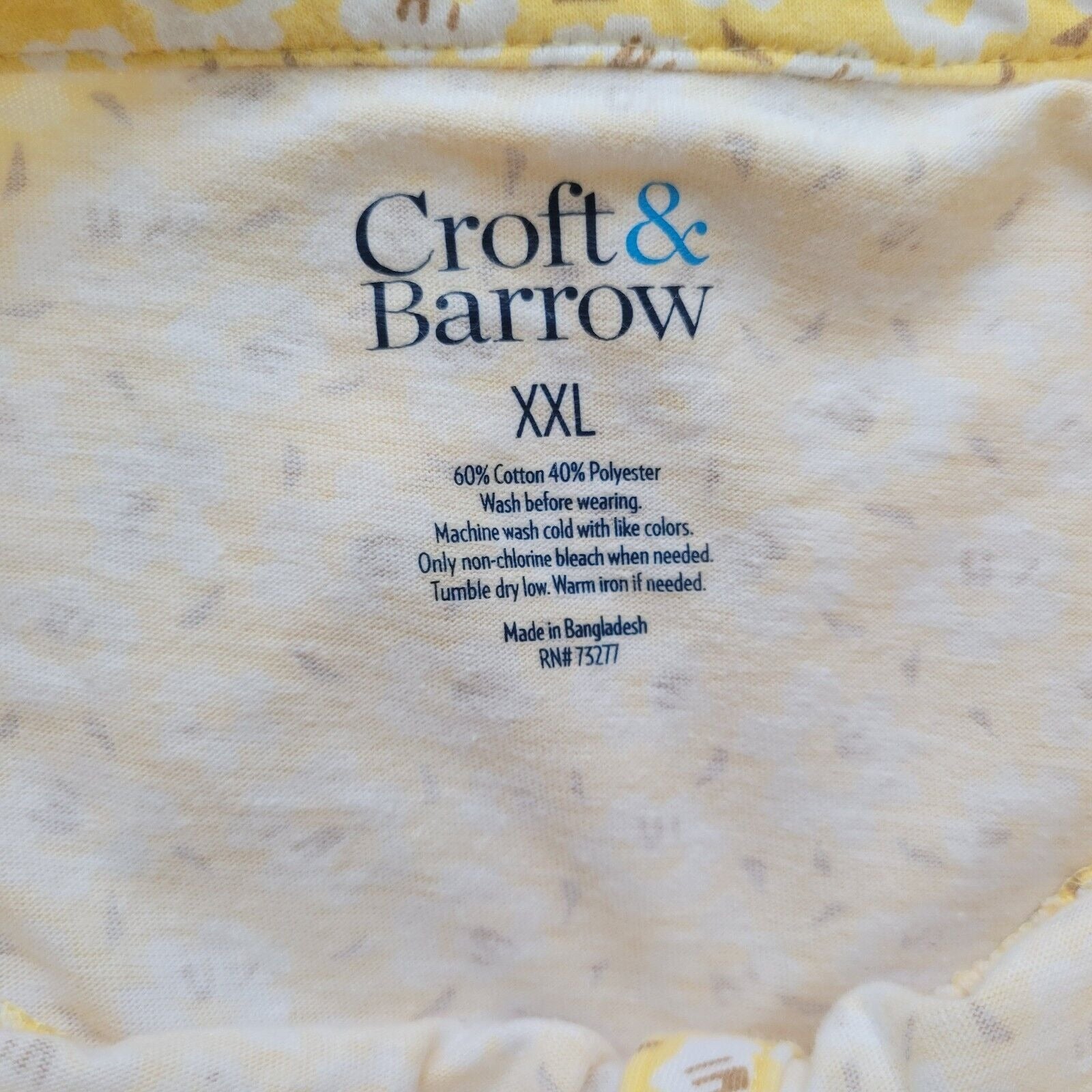Croft Barrow Womens Top XXL Long Sleeve Yellow Floral Lightweight Quarter Button