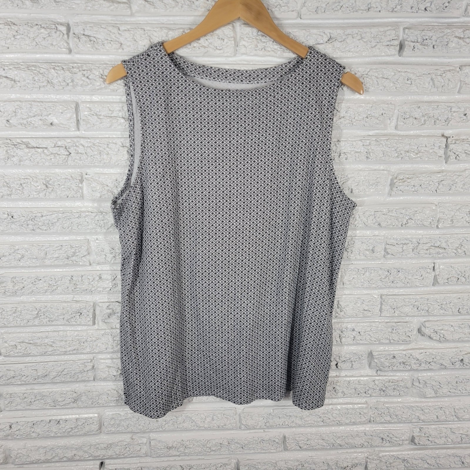 Croft Barrow Womens Top XXL Plus Tank Classic Black Geometric Cotton Lightweight